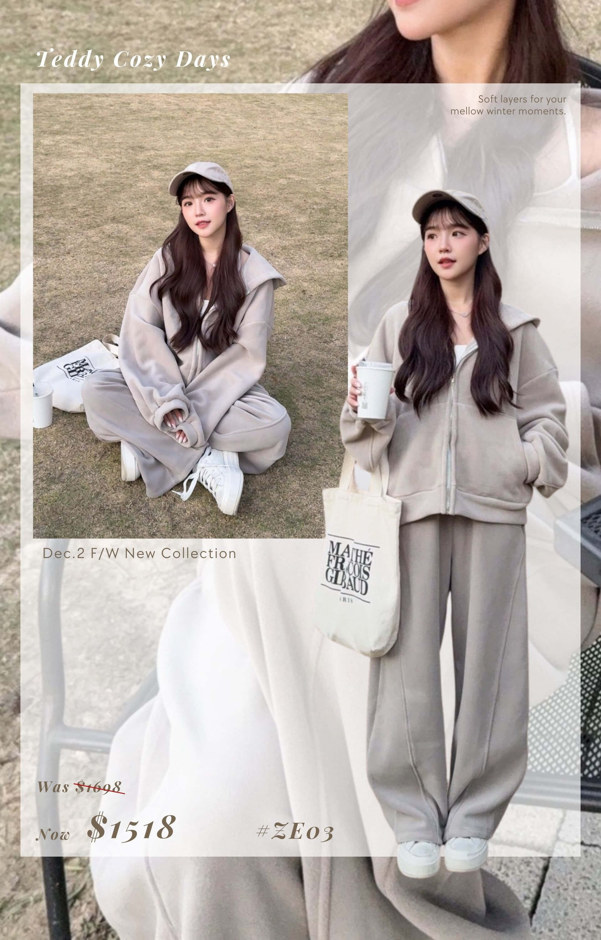 泰迪茸茸 舒服到不想脫下來的溫暖休閒套裝 (2colors) #ZE03