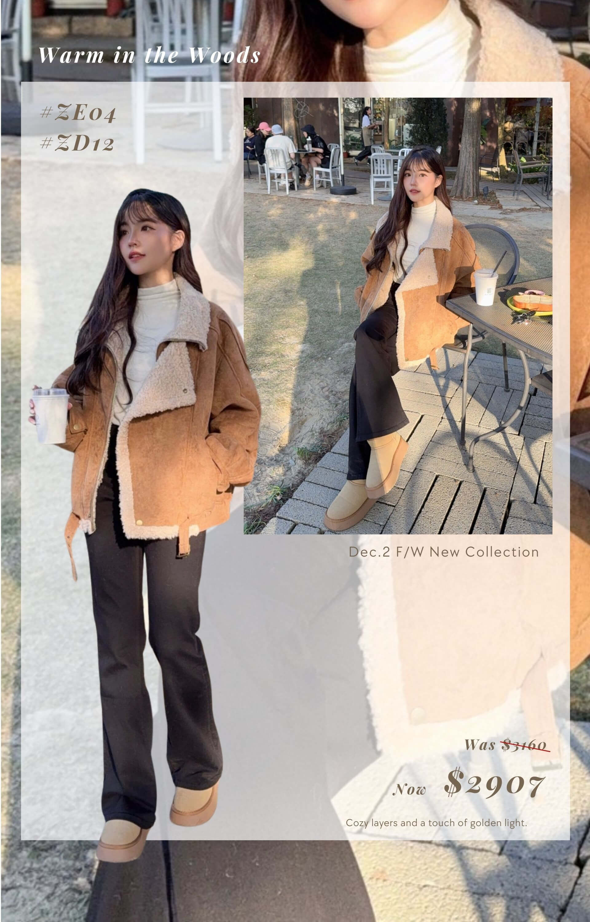 暖栗山丘 重工羊羔絨麂皮翻領外套 (1colors) #ZE04