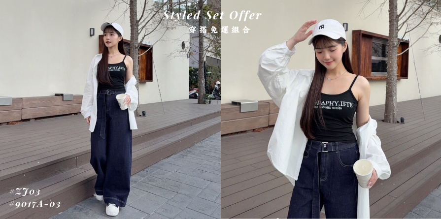【穿搭免運組合】ZJ03字母印花背心+9017A-03深藍色褲,SHI'ER