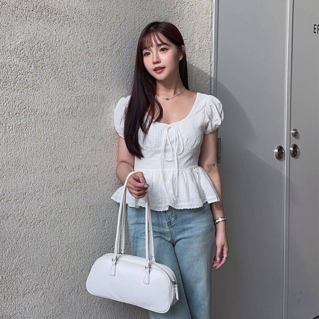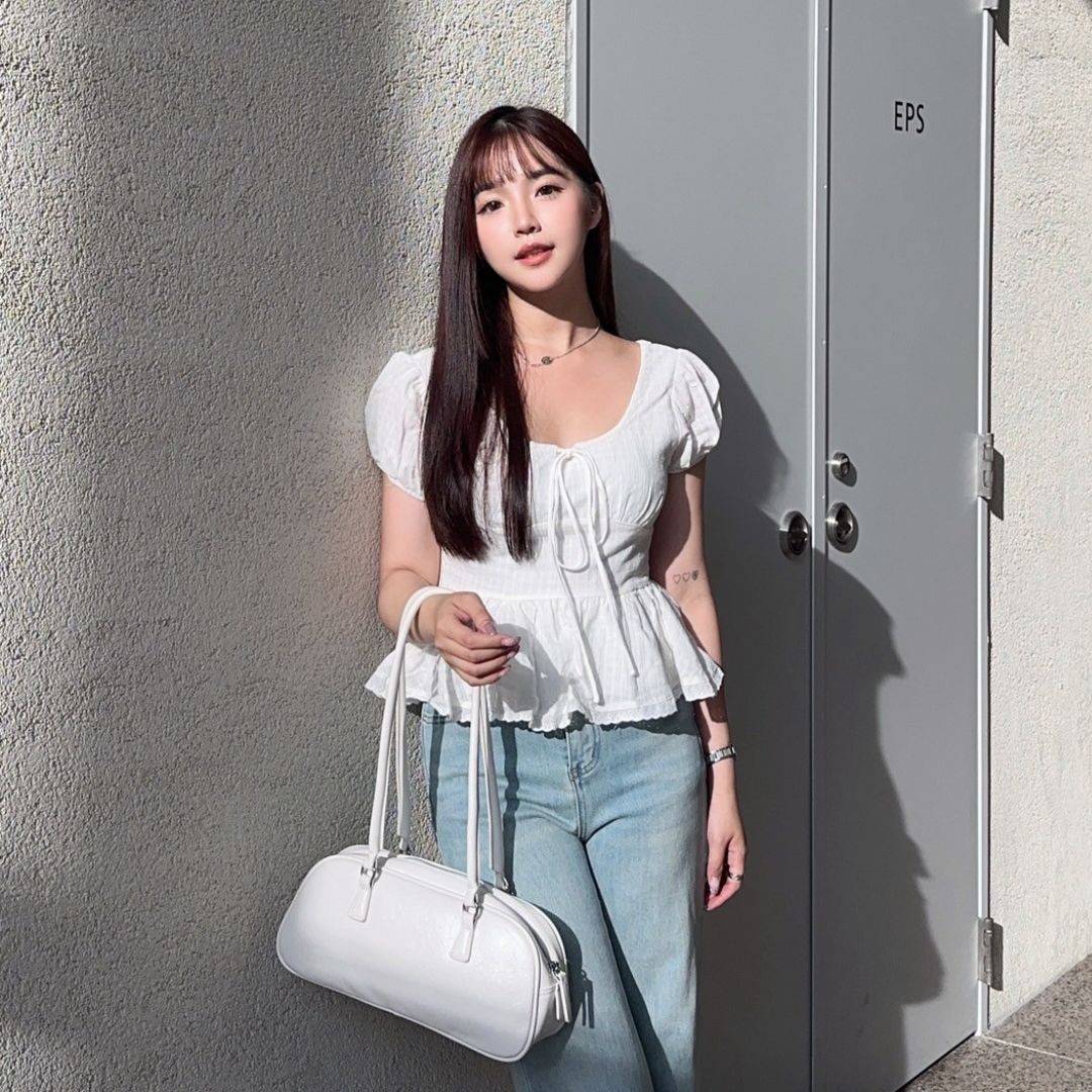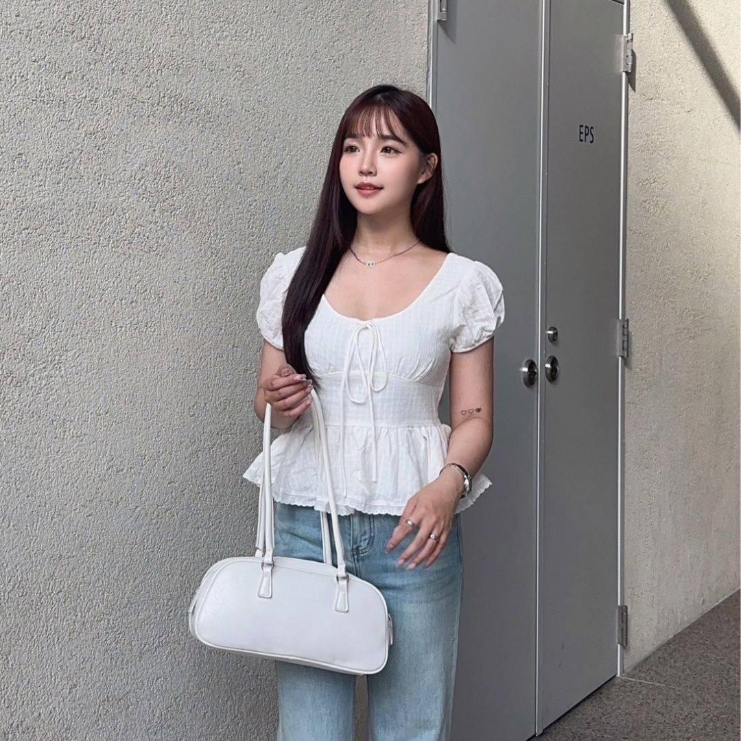【現貨】白茶梔子 甜美蝴蝶結收腰短袖上衣(1colors) #W04