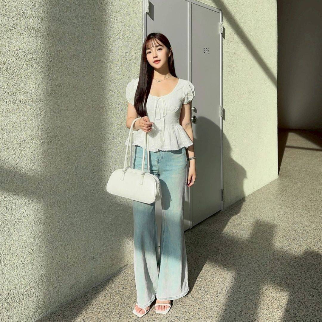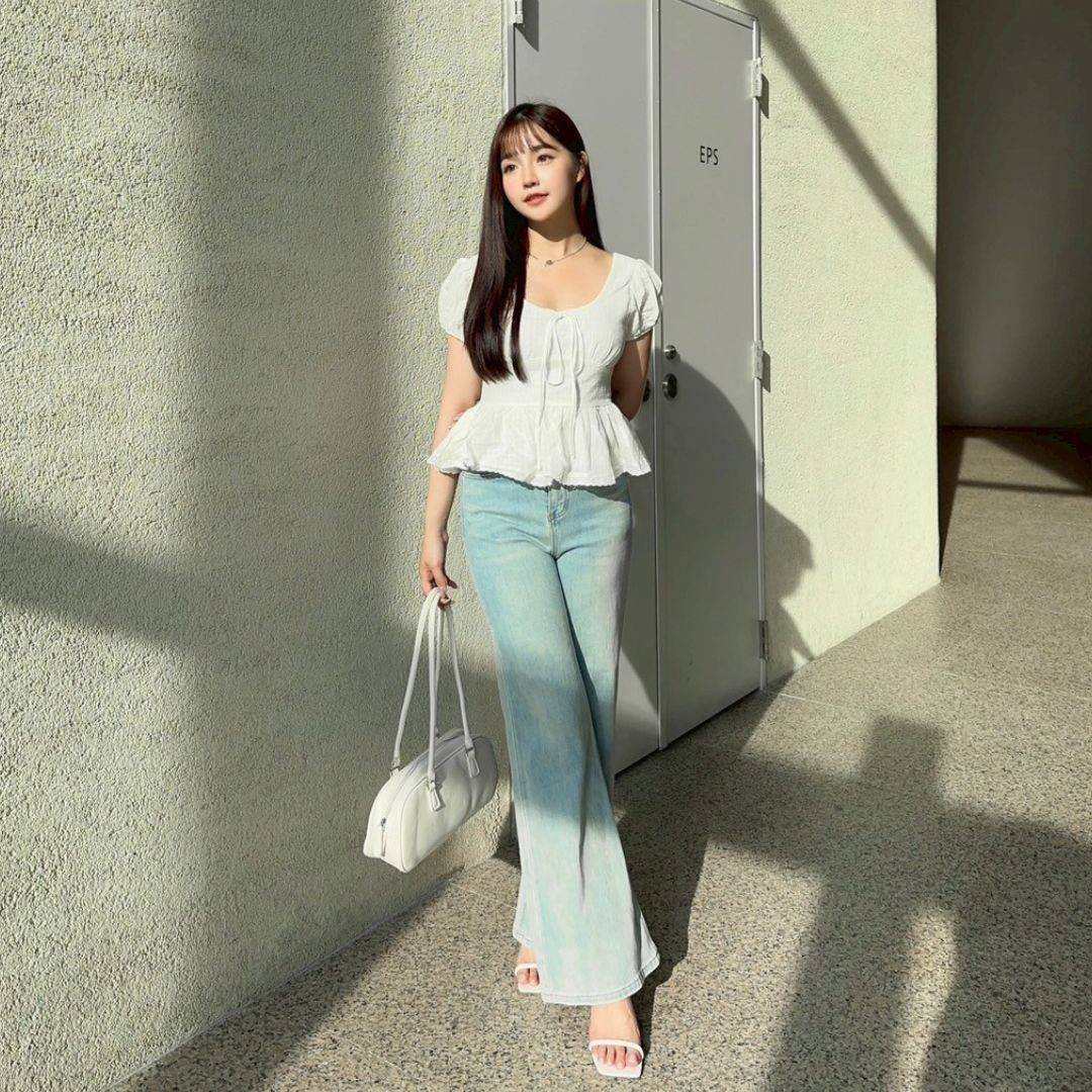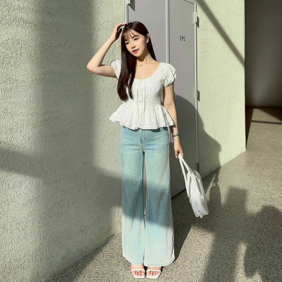【現貨】白茶梔子 甜美蝴蝶結收腰短袖上衣(1colors) #W04
