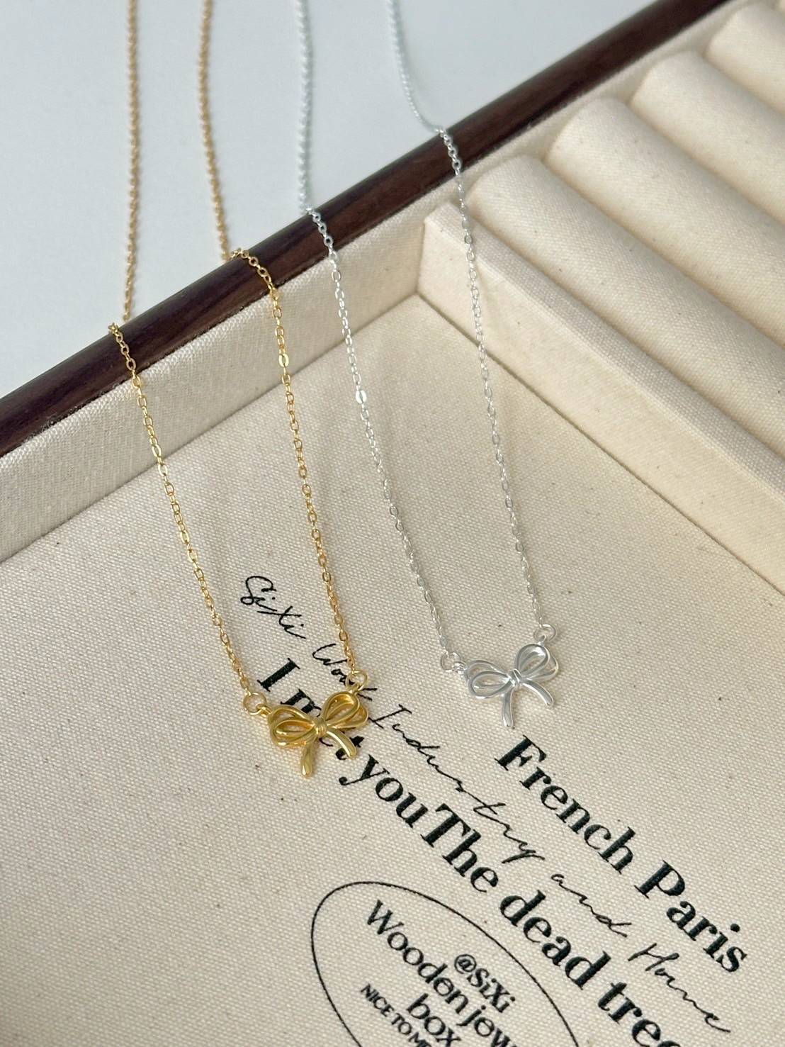 商品詳情 【出貨說明】現貨商品:於3天內(不含假日)寄出預購商品:追加天數為7-21左右(不含假日)寄出 【現貨】少女心事 S925純銀蝴蝶結項鍊 (2colors) #A01 TWD $490 TWD$ 490