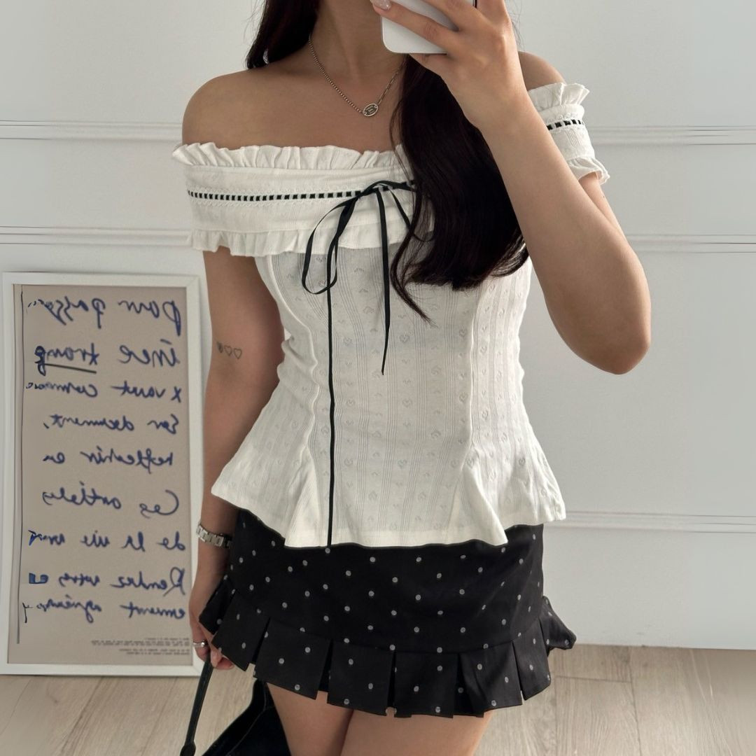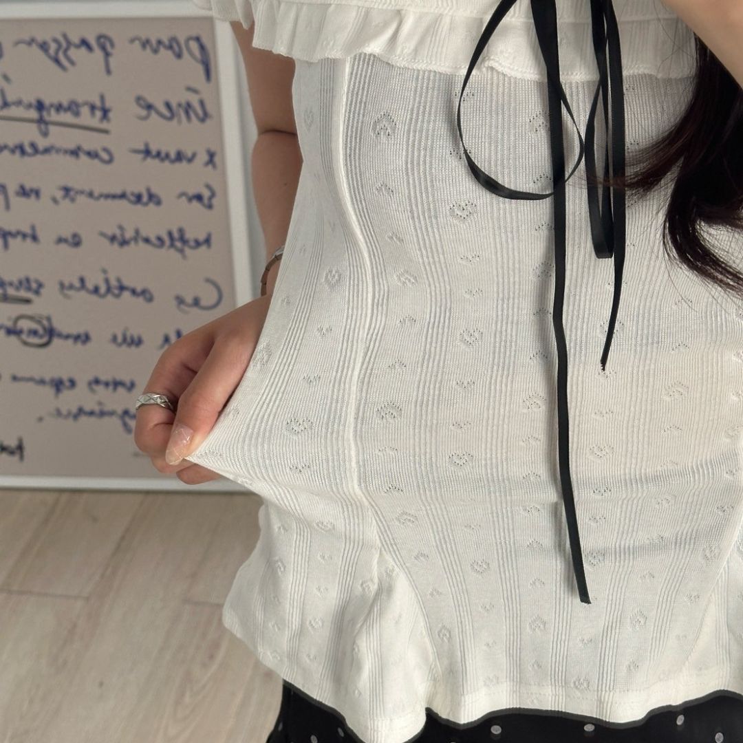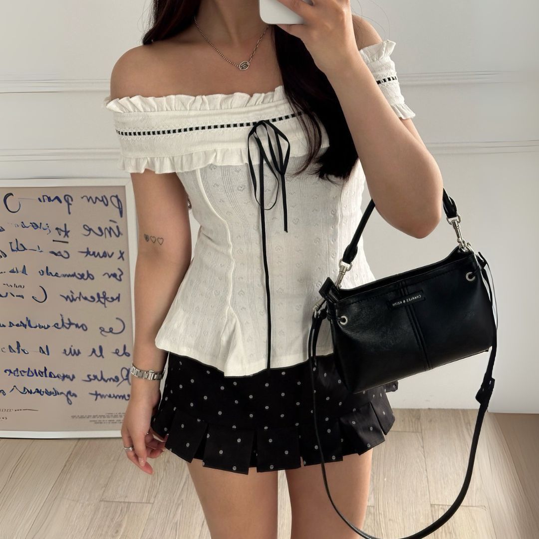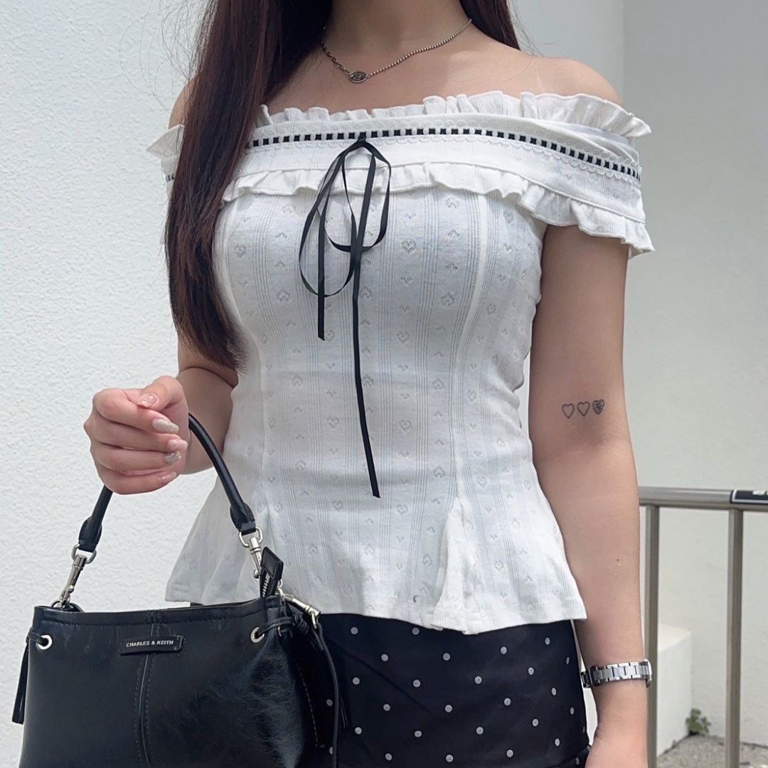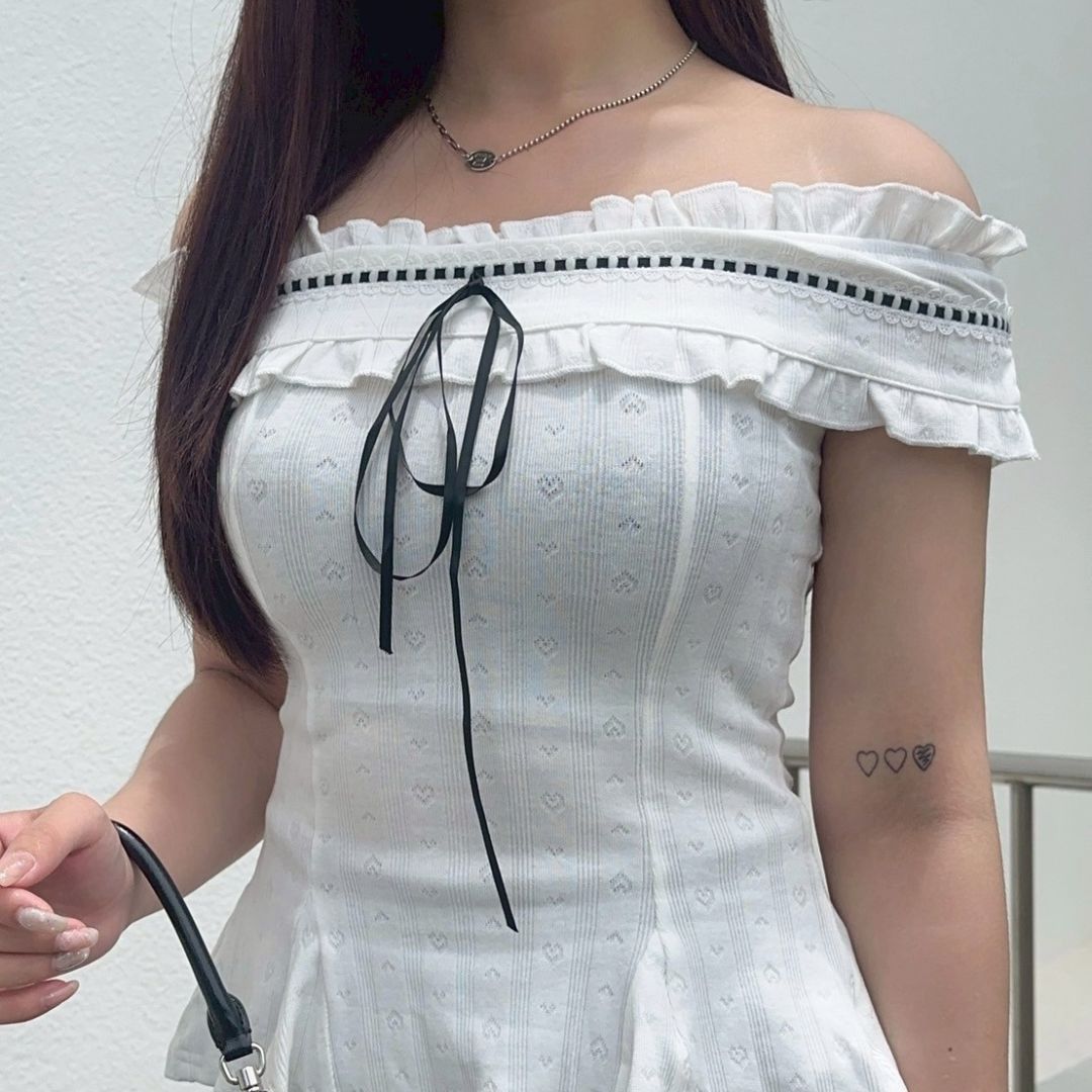 商品詳情 尺寸 : F 有彈性 可穿至S-L 平量尺寸表(cm) : 衣長40/肩寬40/胸圍34/腰圍30 ※商品皆為手工測量 誤差1-3cm皆屬正常範圍 【出貨說明】現貨商品:於3天內(不含假日)寄出預購商品:追加天數為7-21左右(不含假日)寄出 甜心序曲 心動蝴蝶結一字領上衣 (1colors) #X13 TWD $550 TWD$ 550