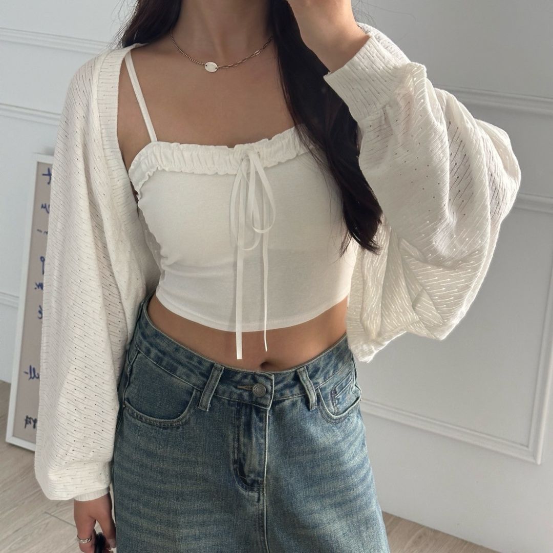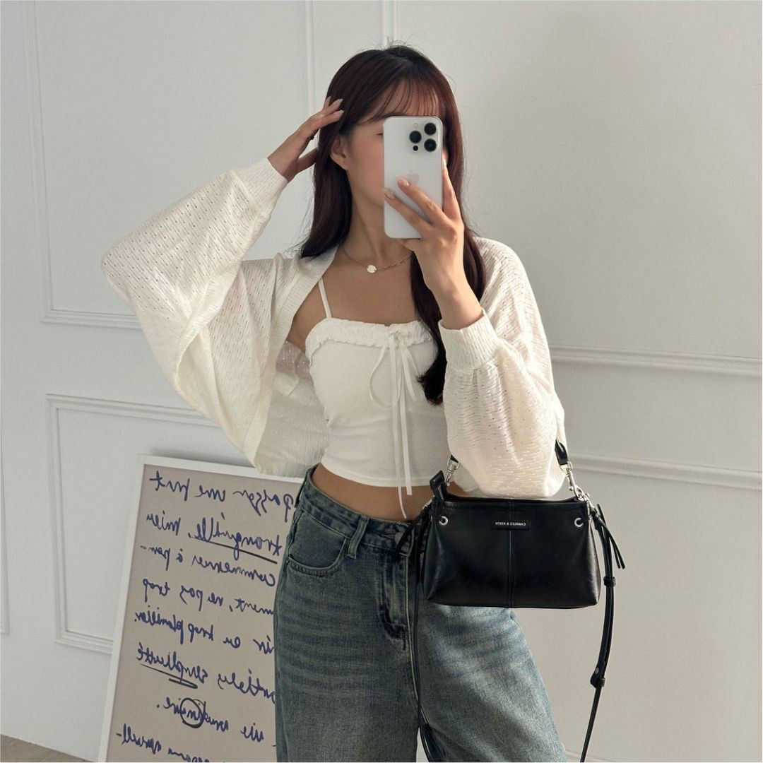 【現貨】盛夏微光 顯瘦防曬簍空披肩式罩衫 (3colors) #X06