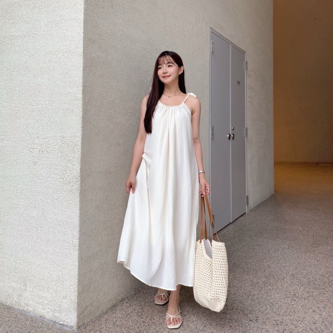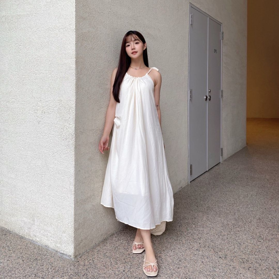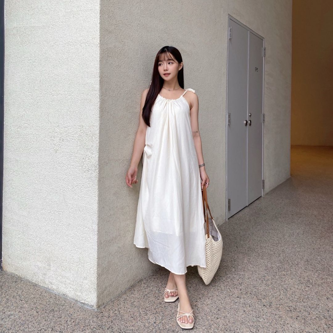 平量尺寸表(cm) : 衣長101(不含肩帶,肩帶可自由調節長度)/胸圍62.5/下擺寬99