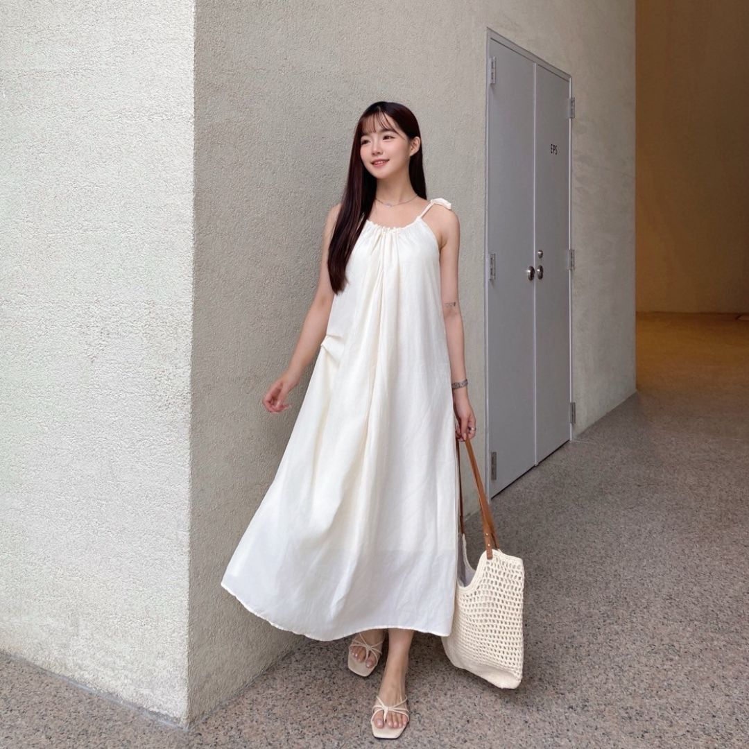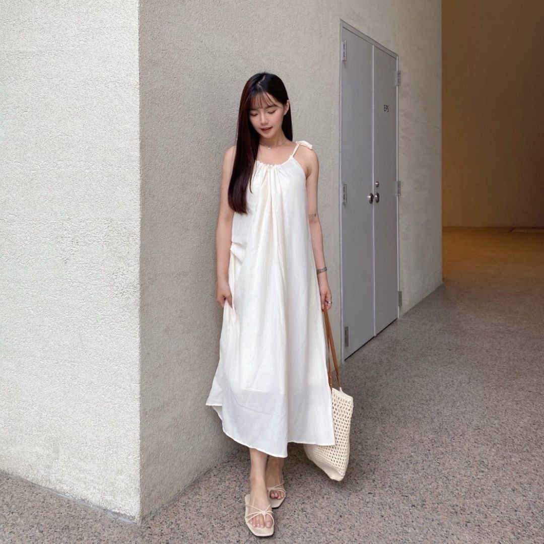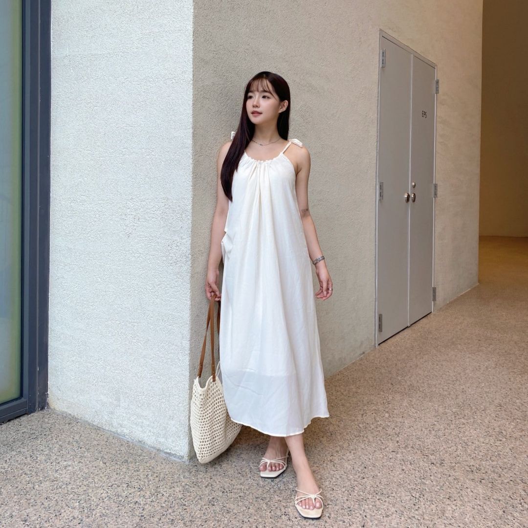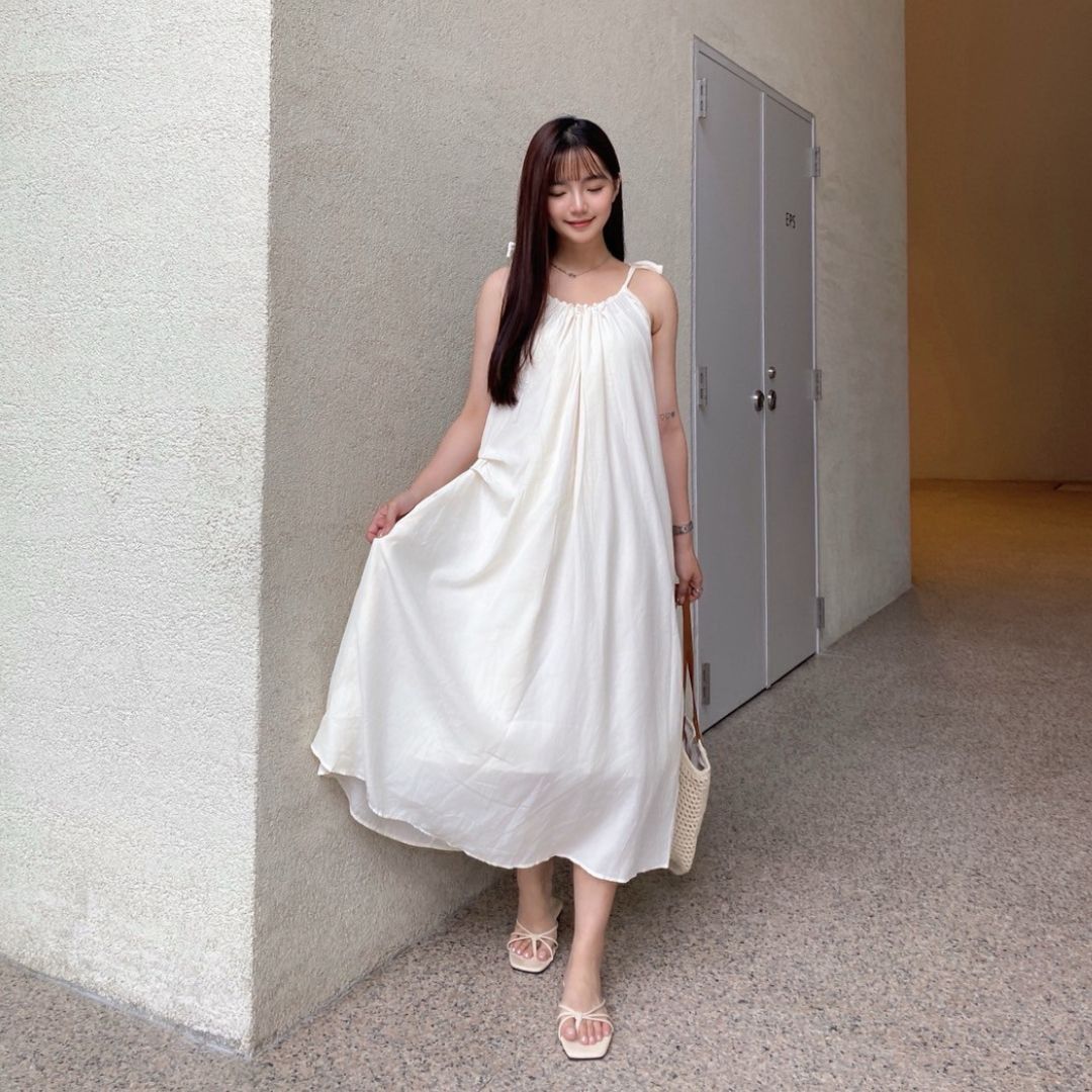 平量尺寸表(cm) : 衣長101(不含肩帶,肩帶可自由調節長度)/胸圍62.5/下擺寬99