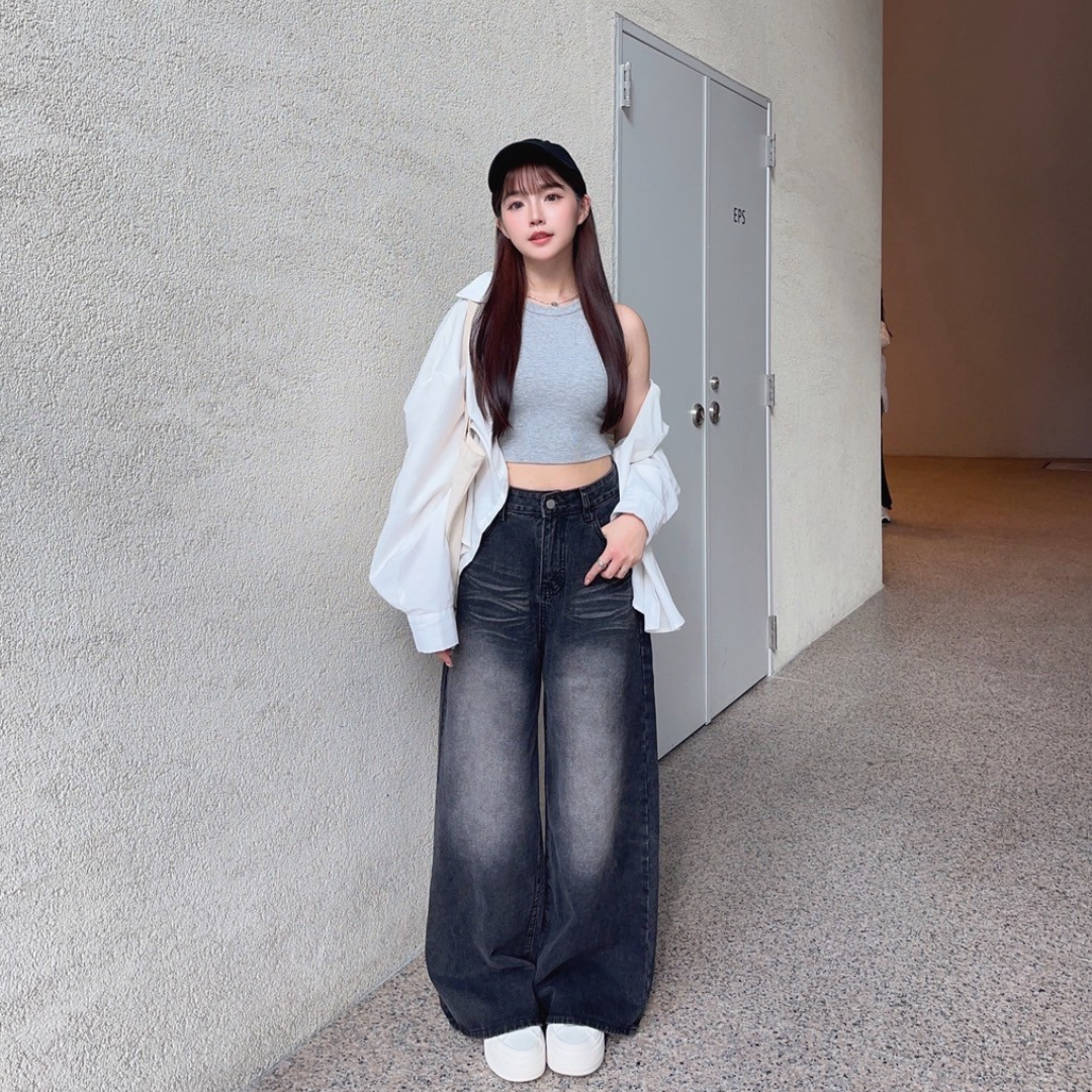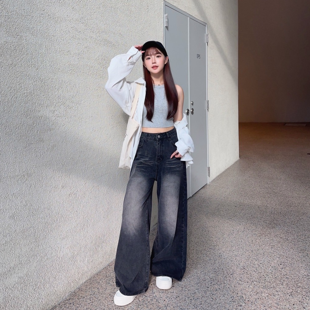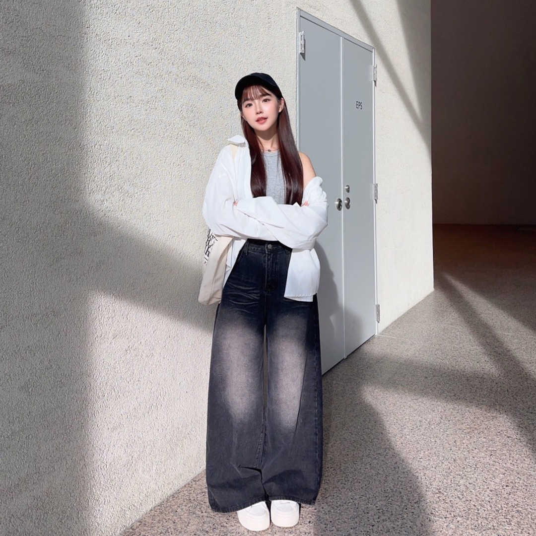 【現貨】私藏愛褲 難得一見超好看炭黑刷色牛仔寬褲 (1colors) #Y11