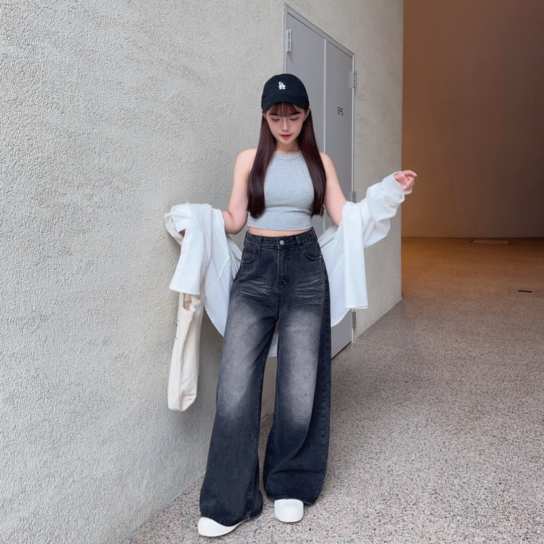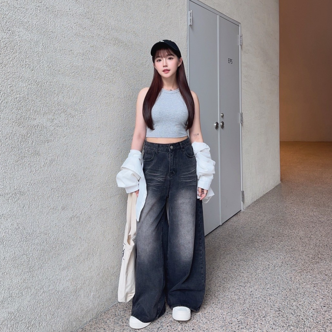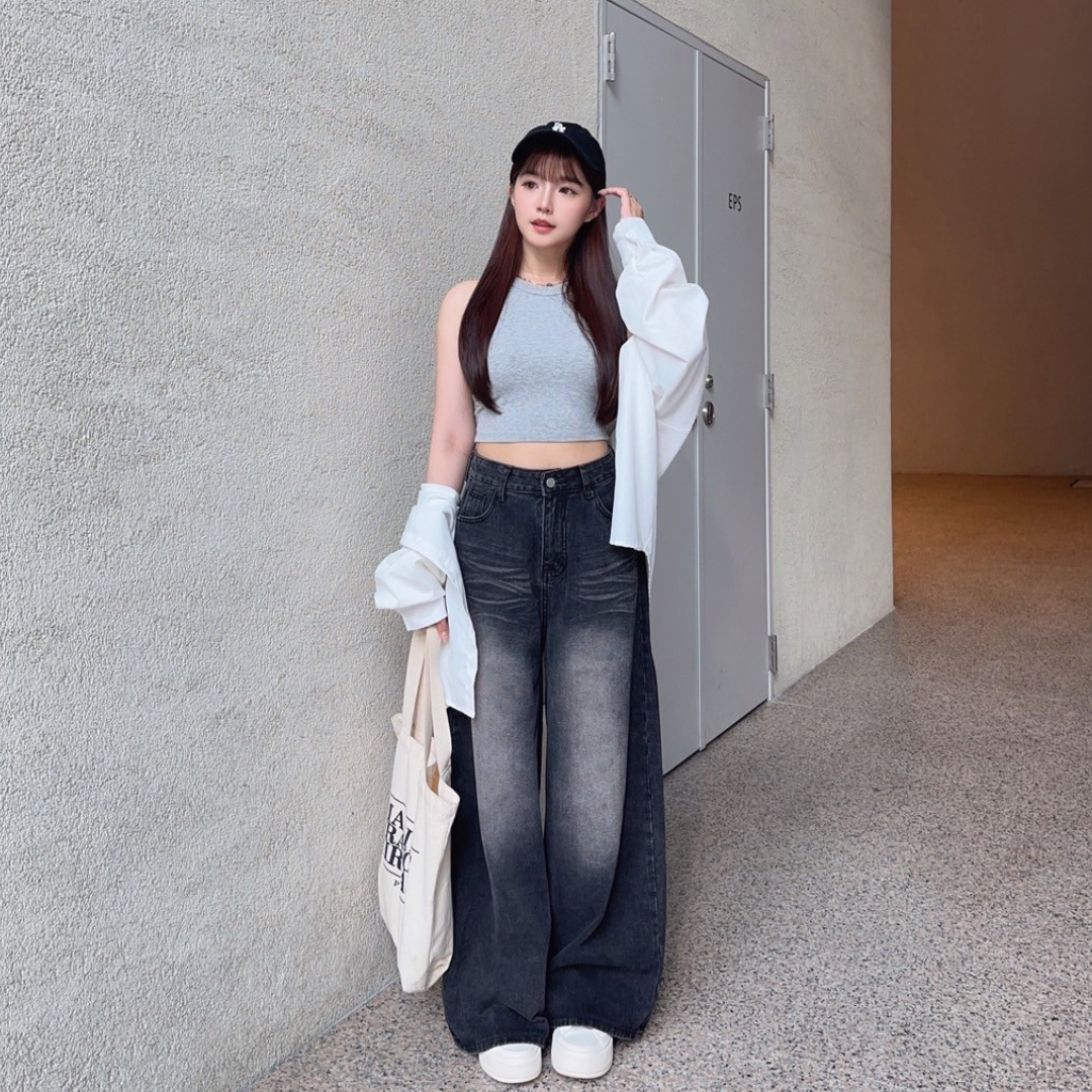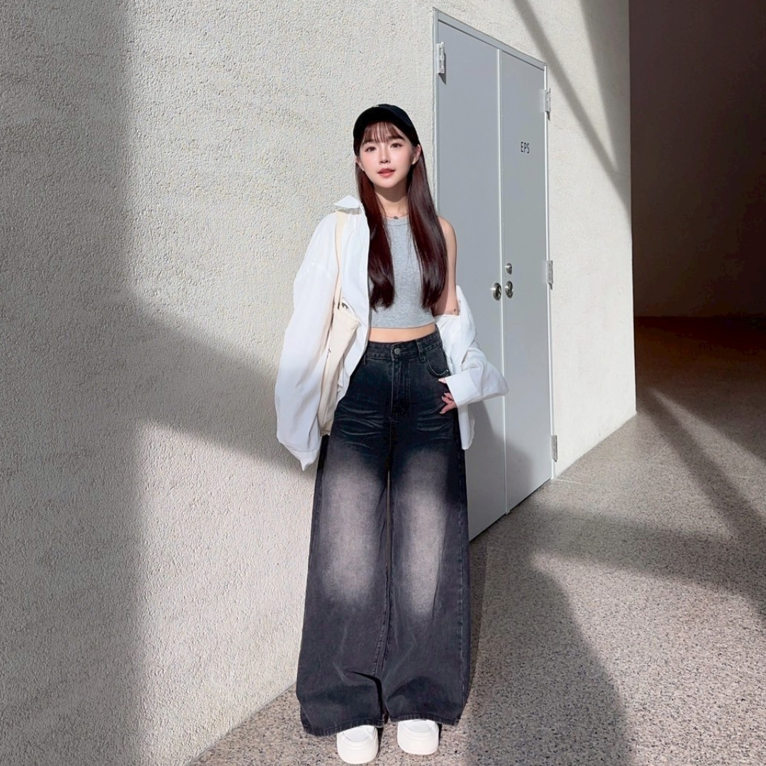 【現貨】私藏愛褲 難得一見超好看炭黑刷色牛仔寬褲 (1colors) #Y11