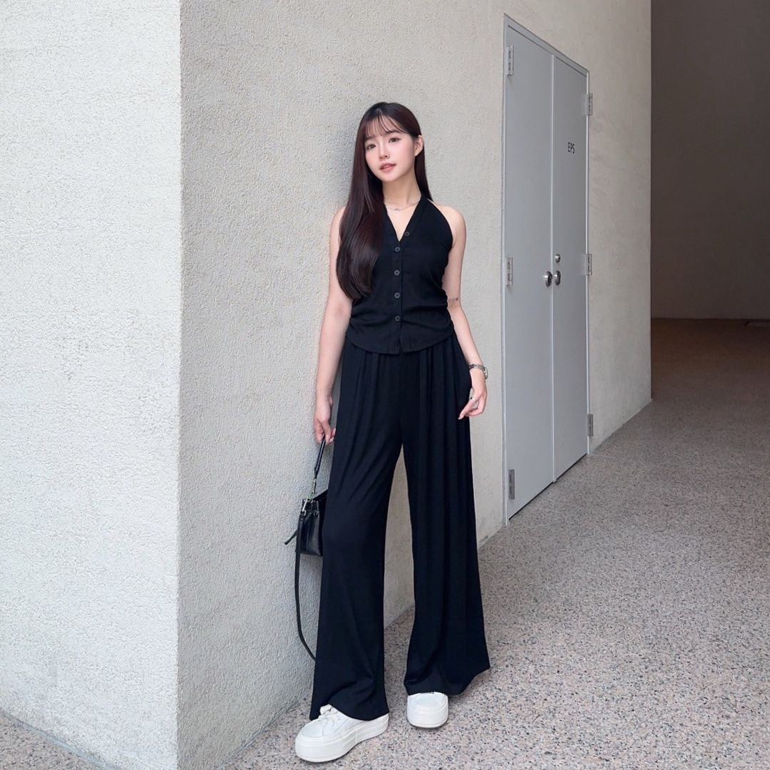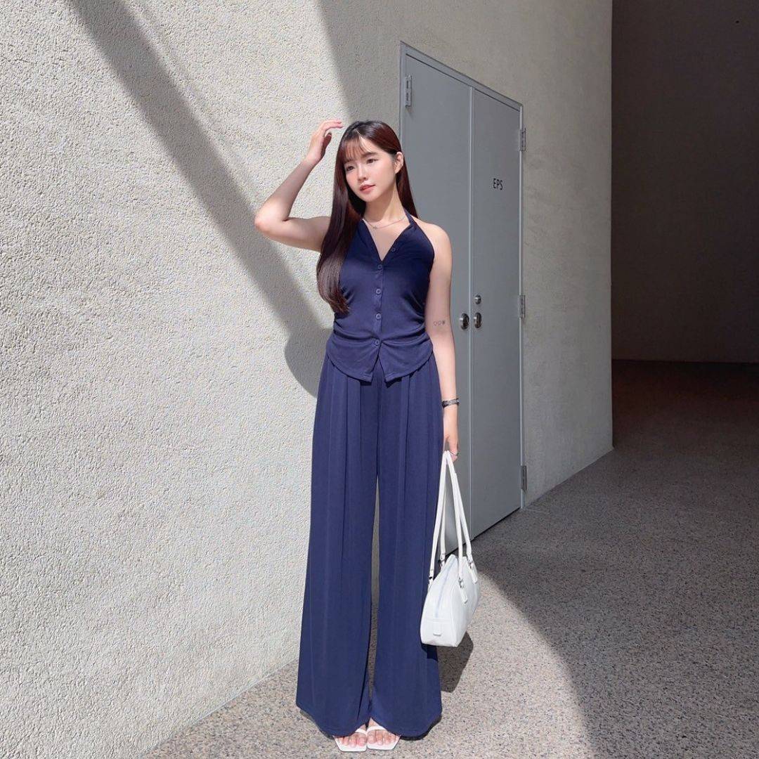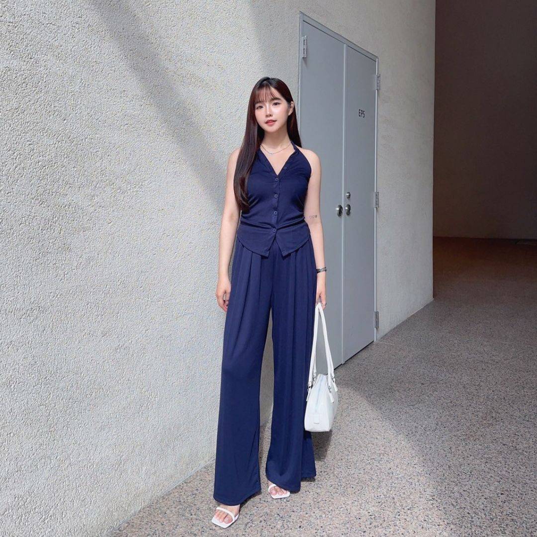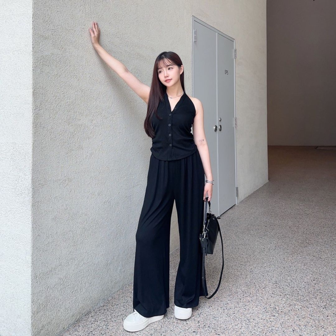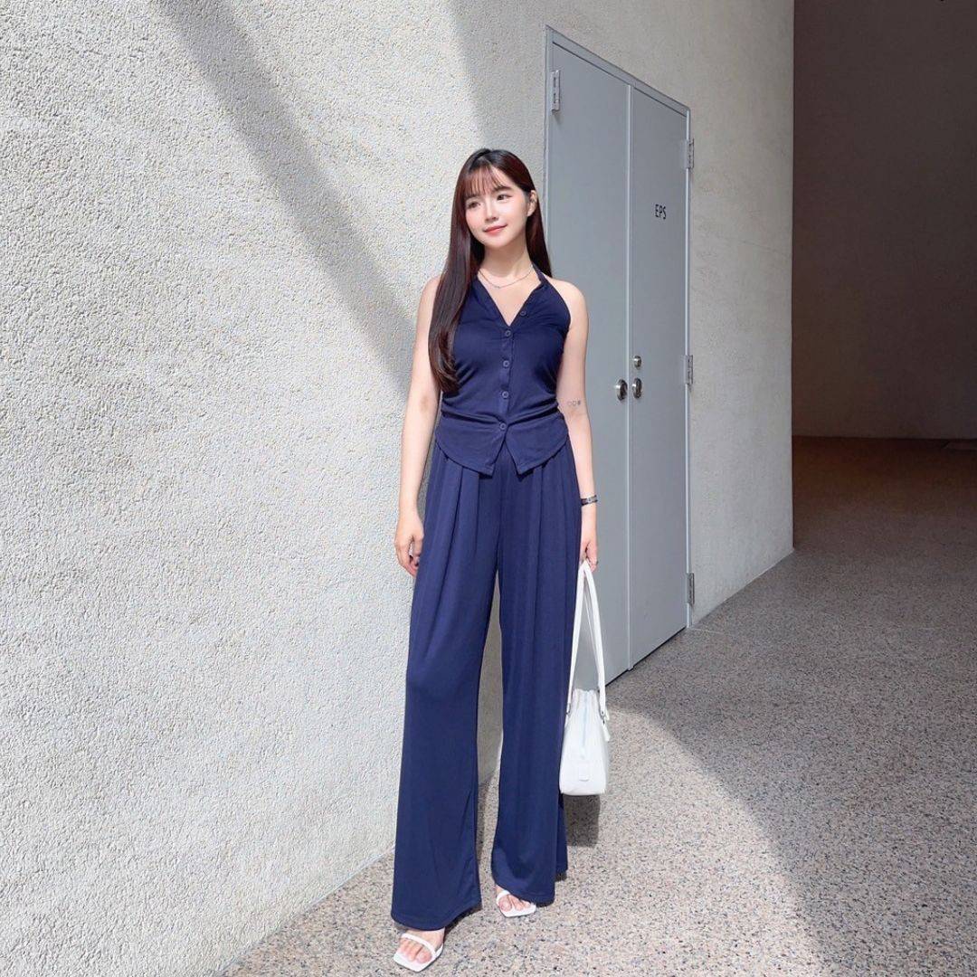 漫調格律 削肩掛脖舒適顯瘦莫戴爾套裝Set (2colors) #Y15