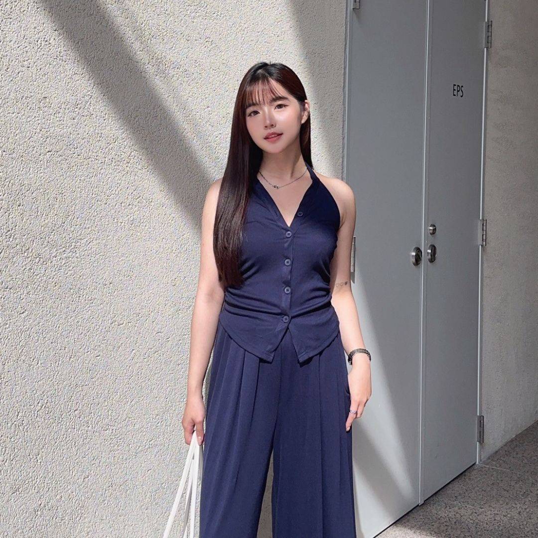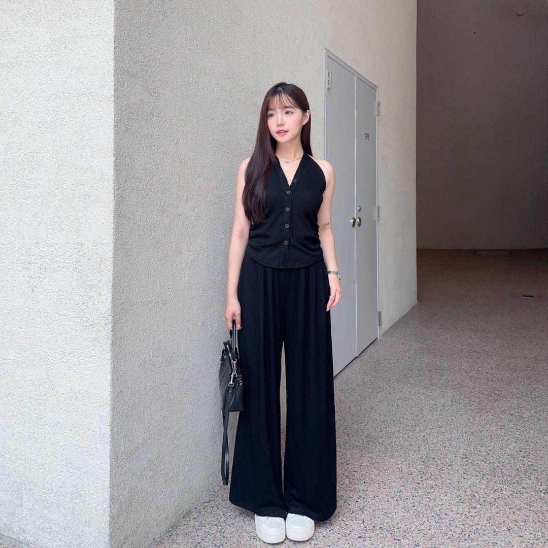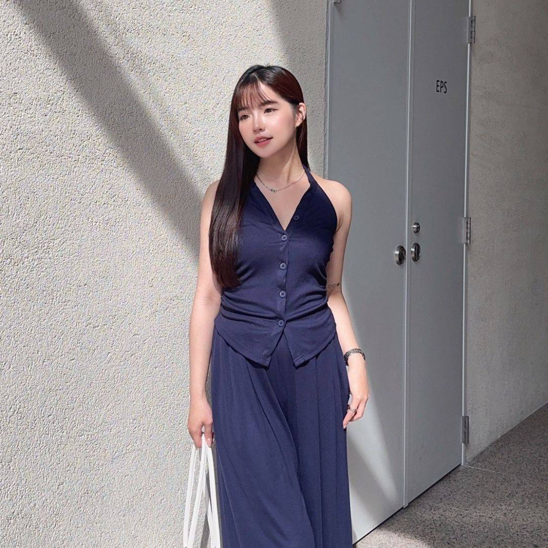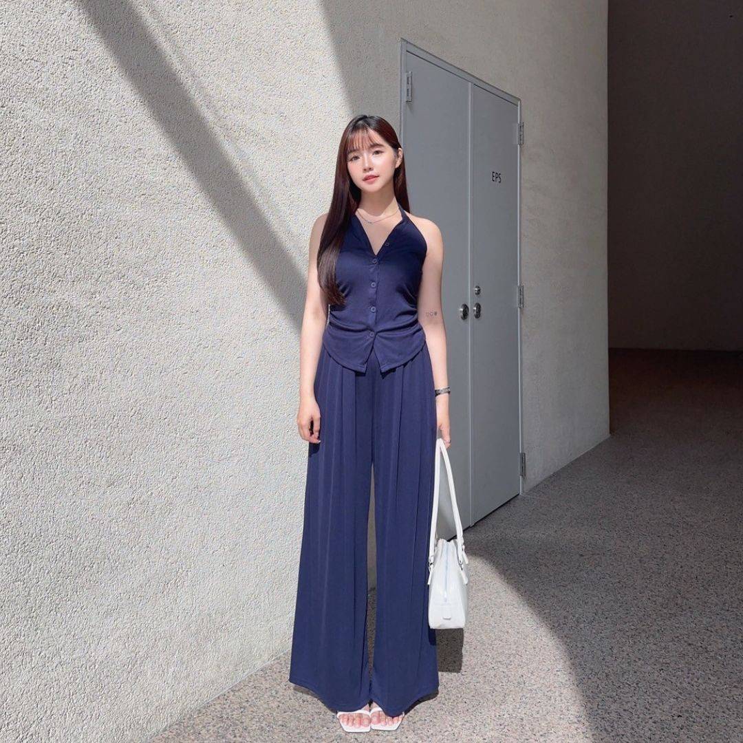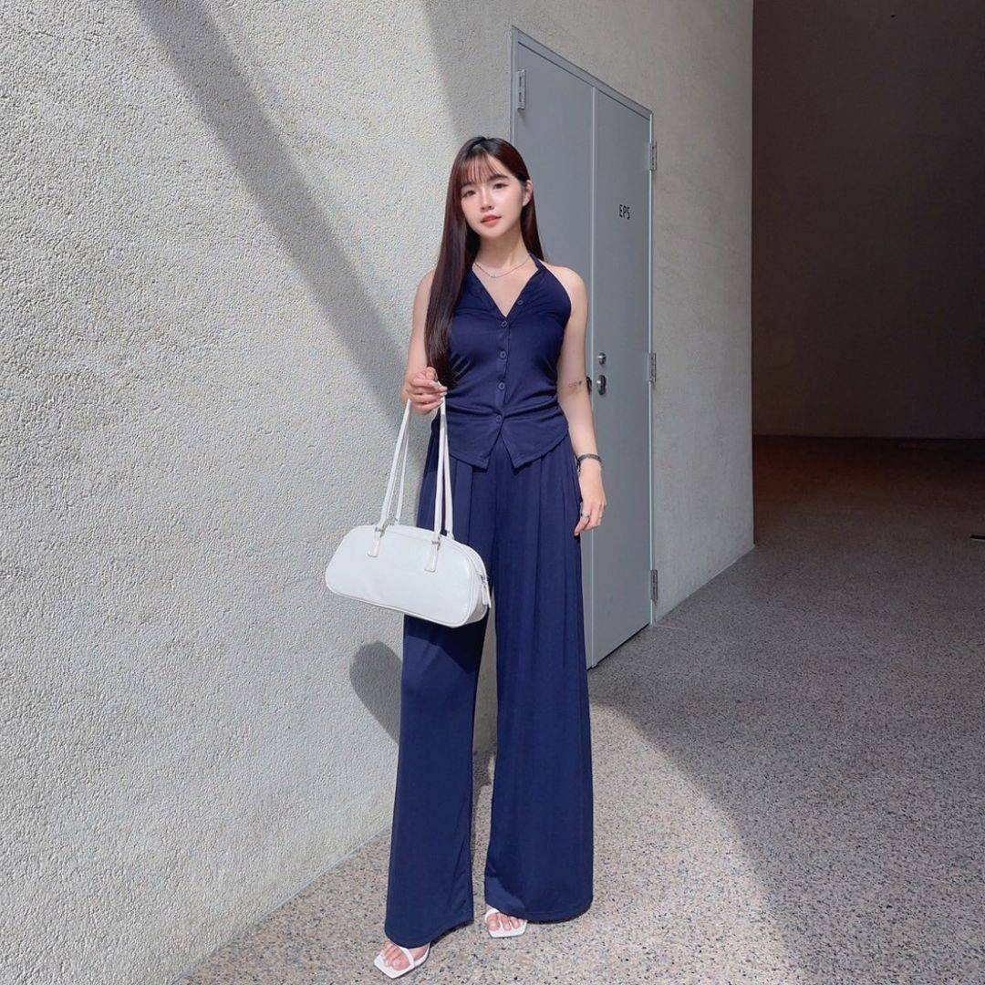 漫調格律 削肩掛脖舒適顯瘦莫戴爾套裝Set (2colors) #Y15