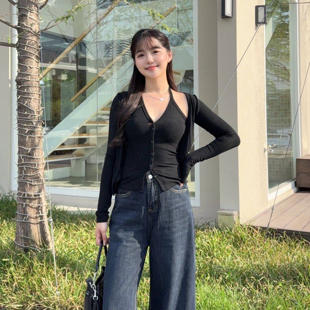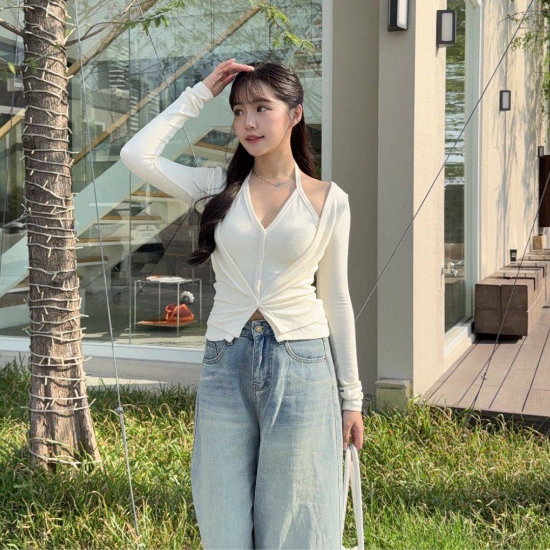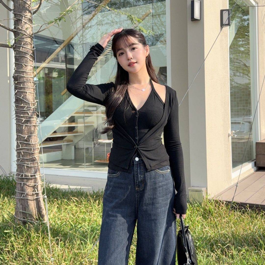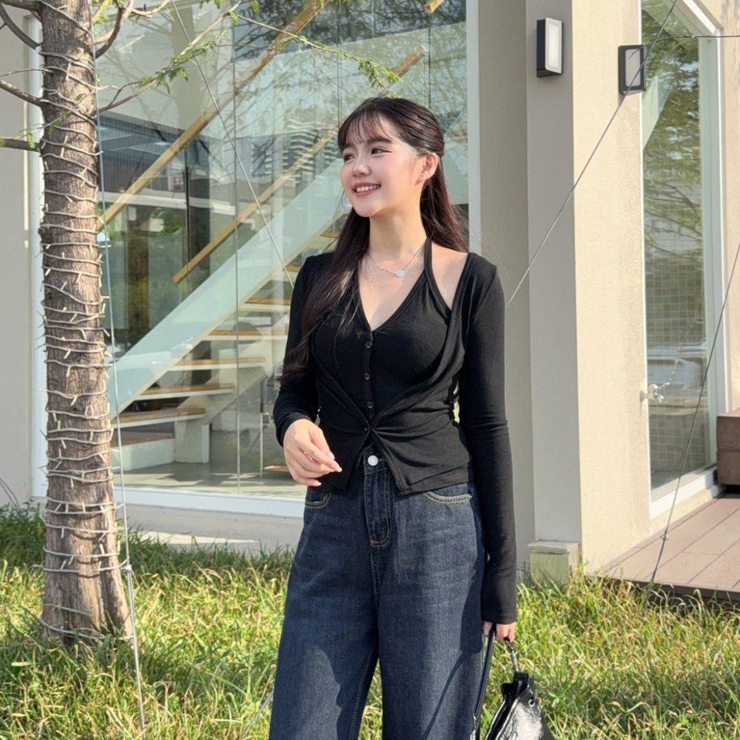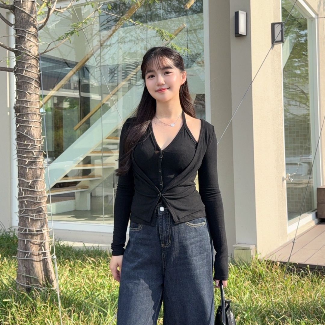 【現貨】藏不住的愛 純慾掛脖假兩件顯瘦上衣 (2colors) #Z06