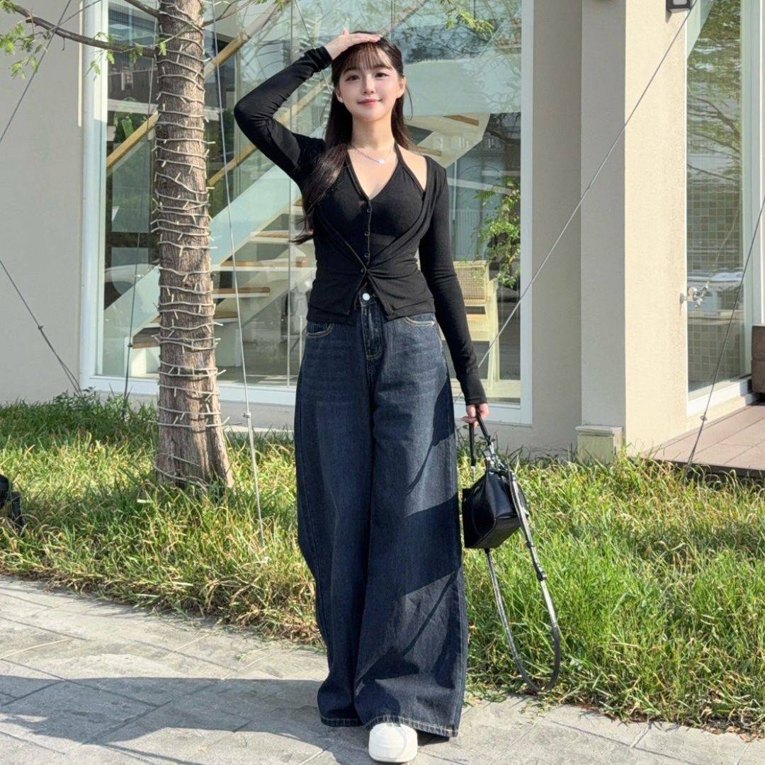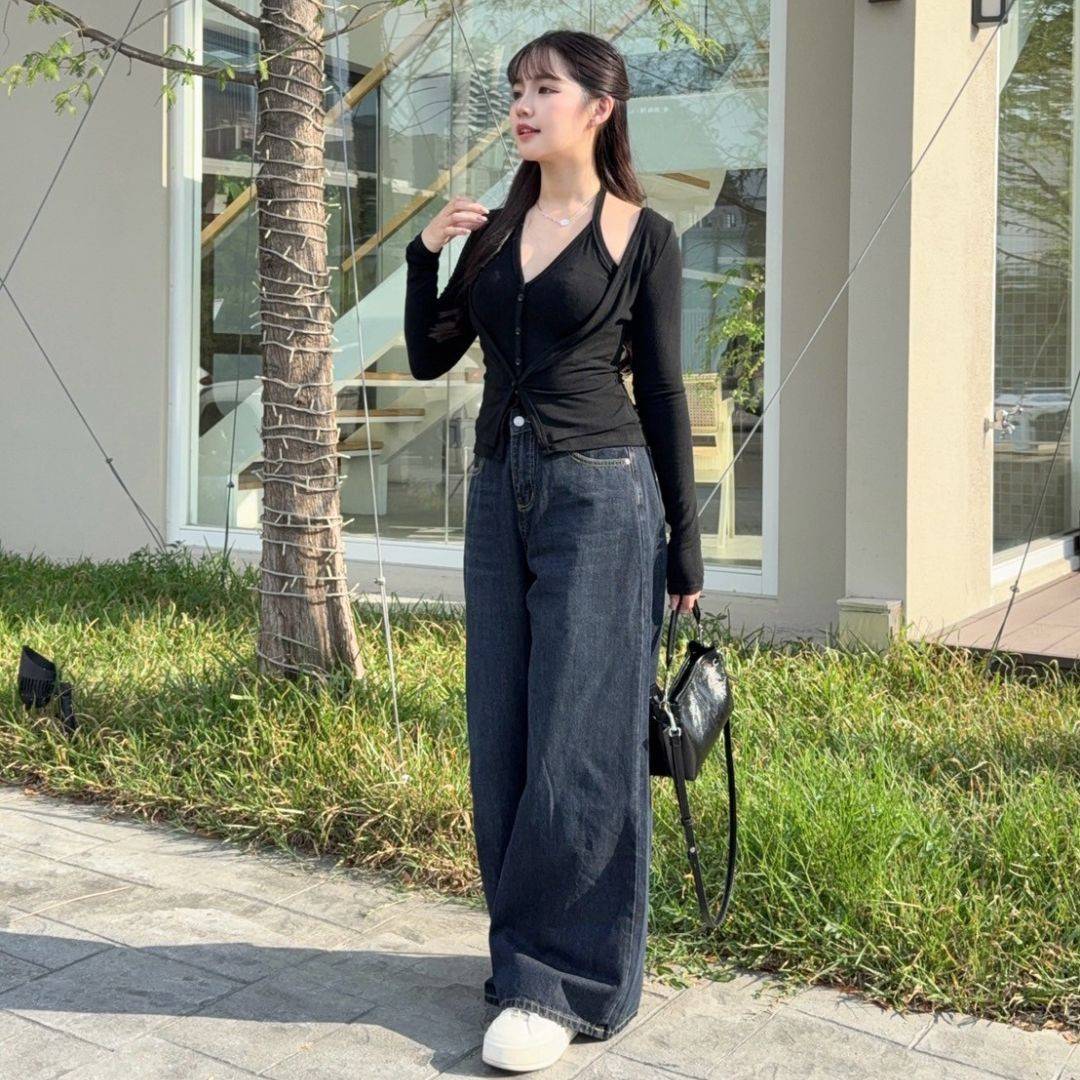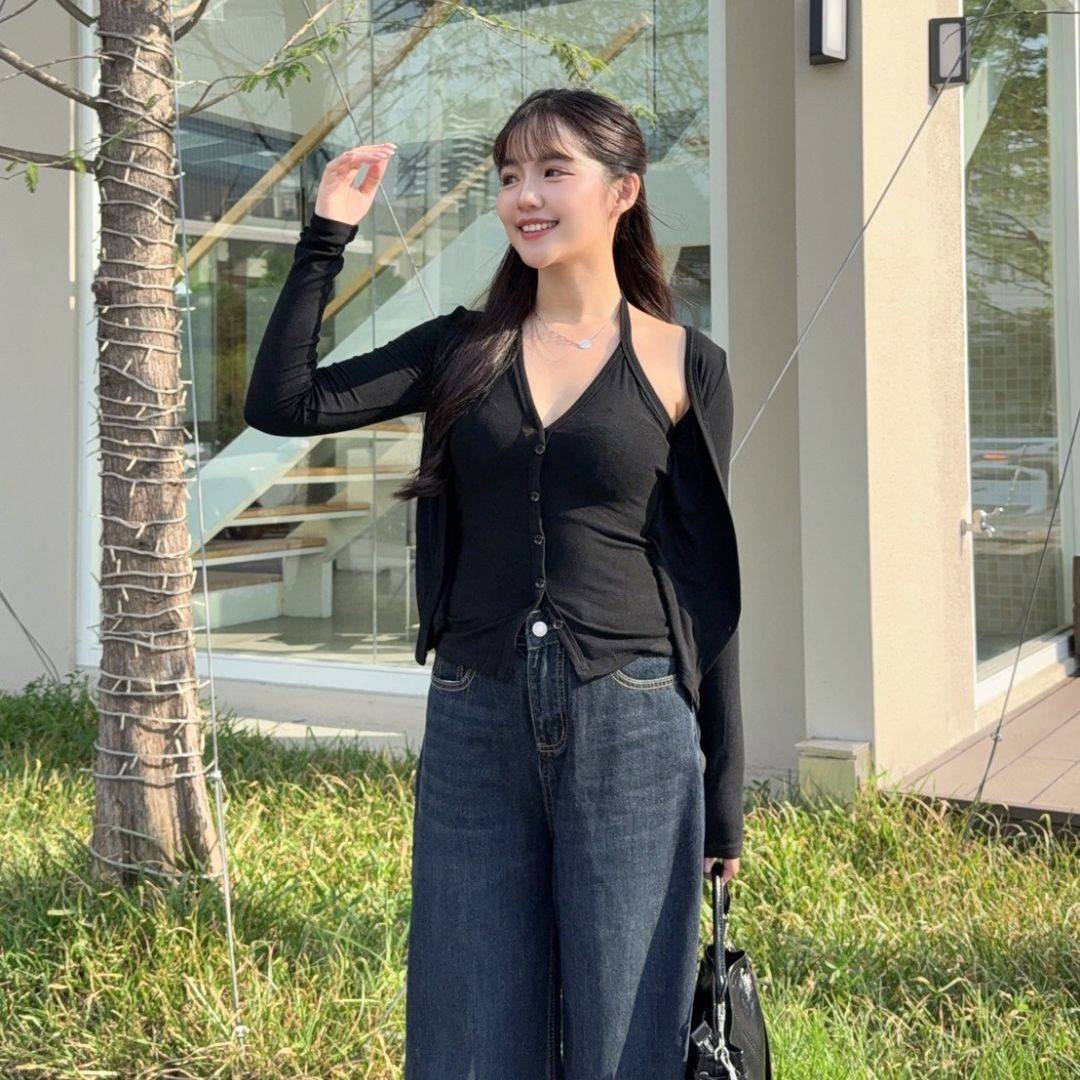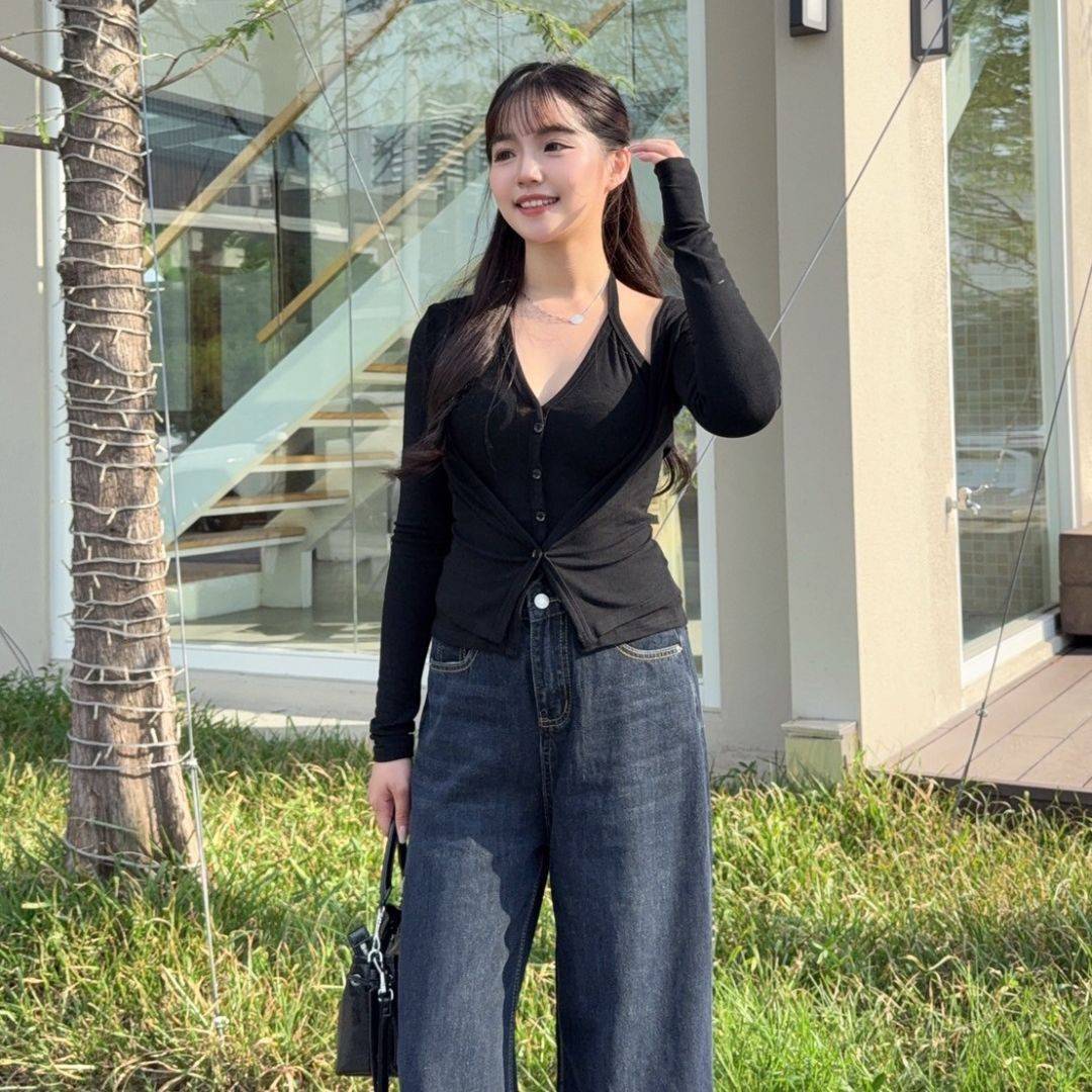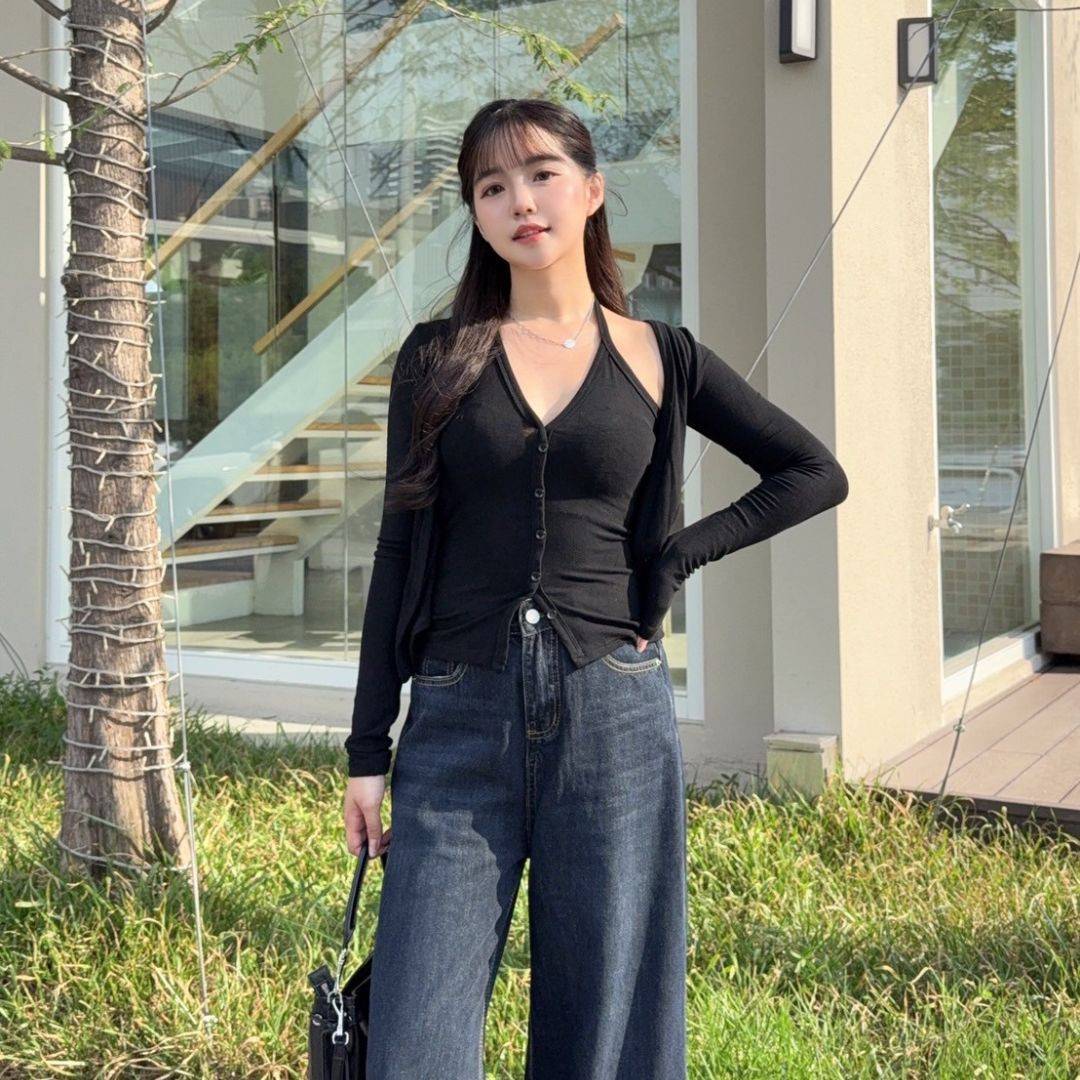 【現貨】藏不住的愛 純慾掛脖假兩件顯瘦上衣 (2colors) #Z06
