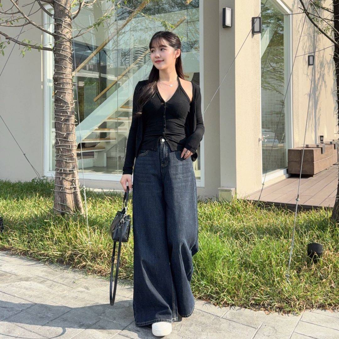 杏色跟黑色穿起來完全不同風格