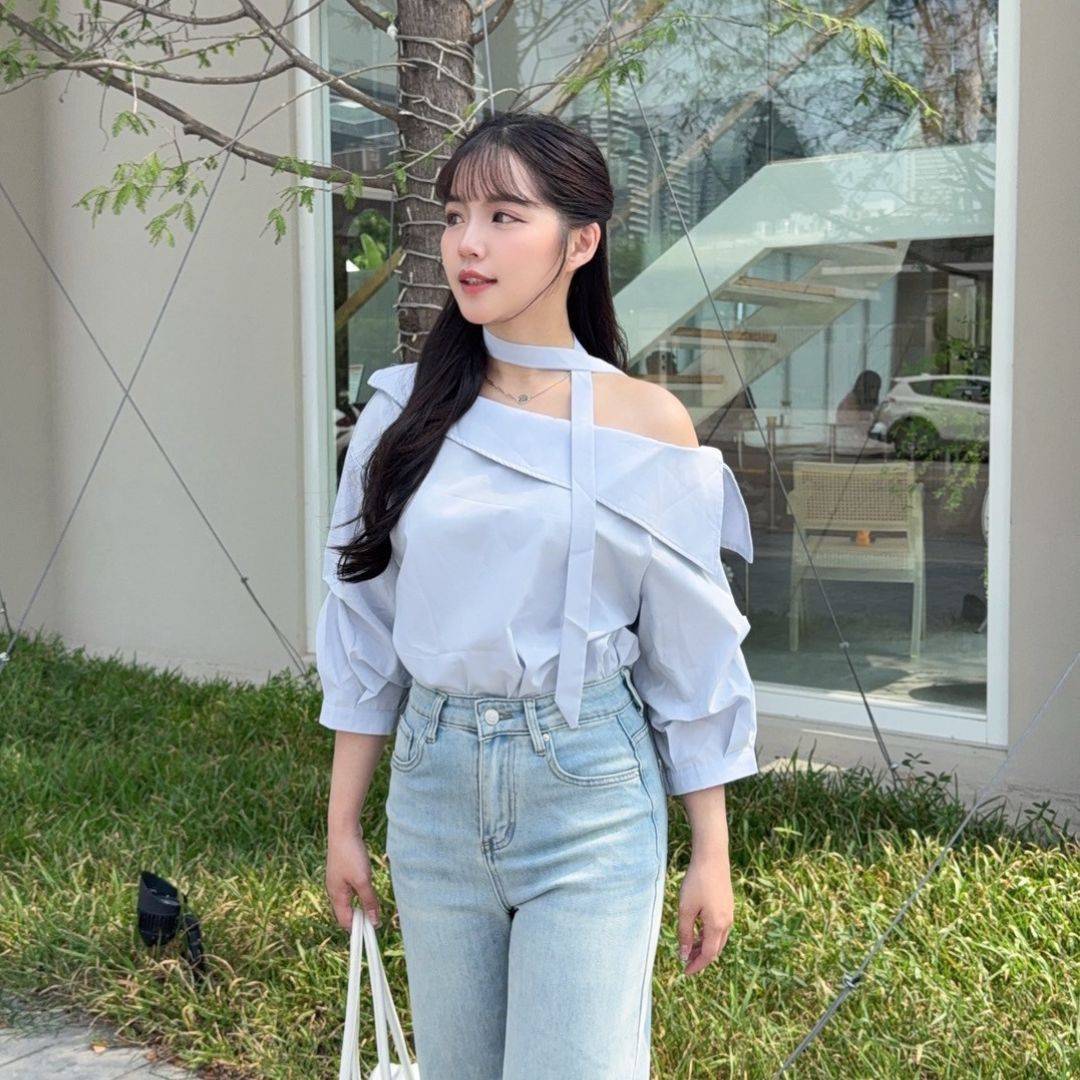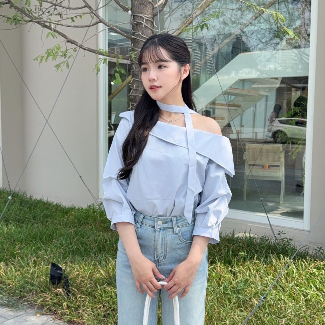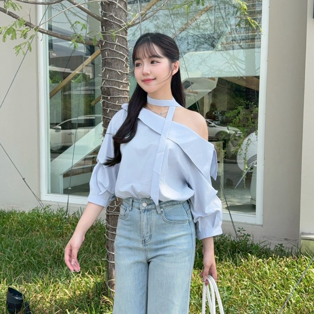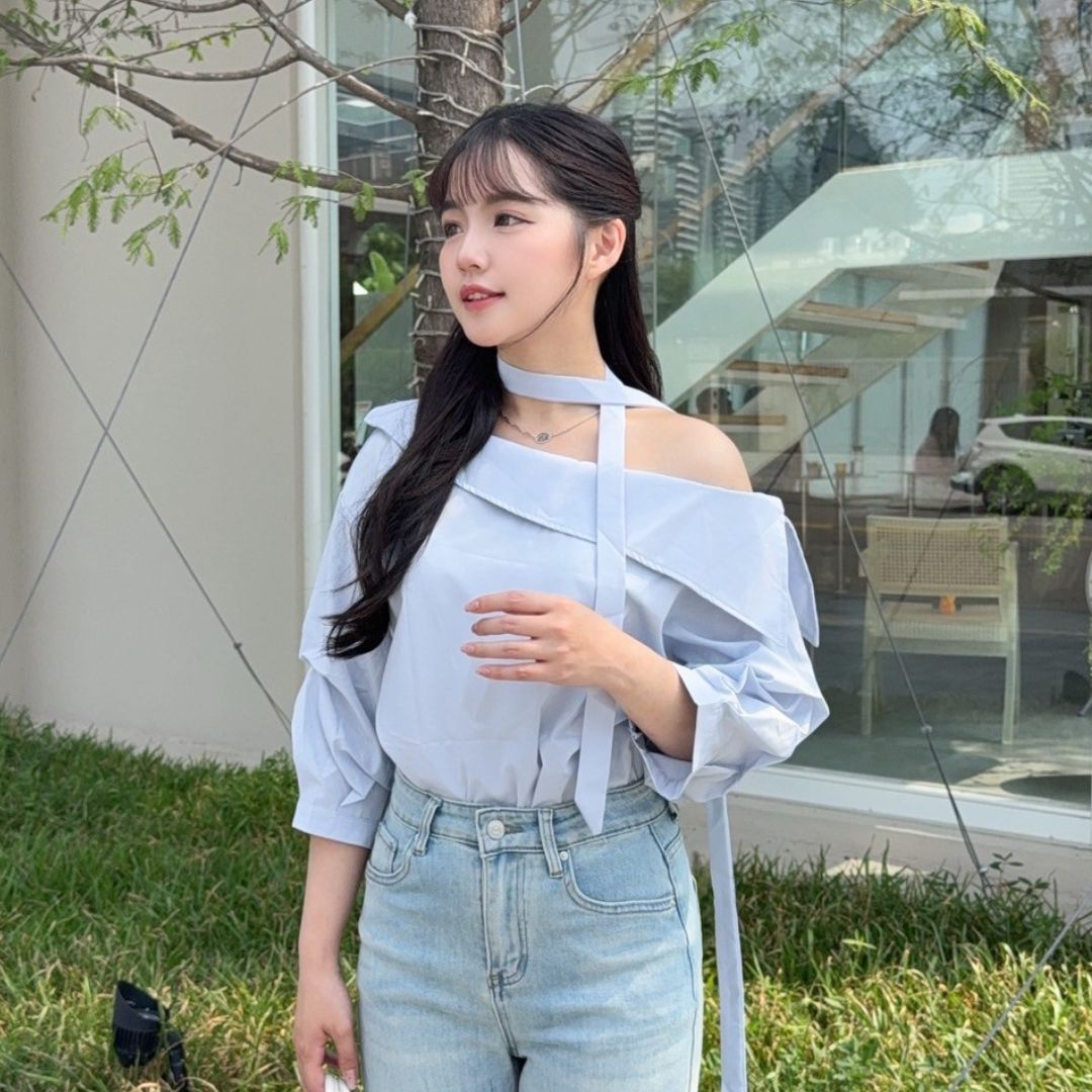 高智感韓女 通勤日常斜肩造型繞脖上衣 (1colors) #Z16