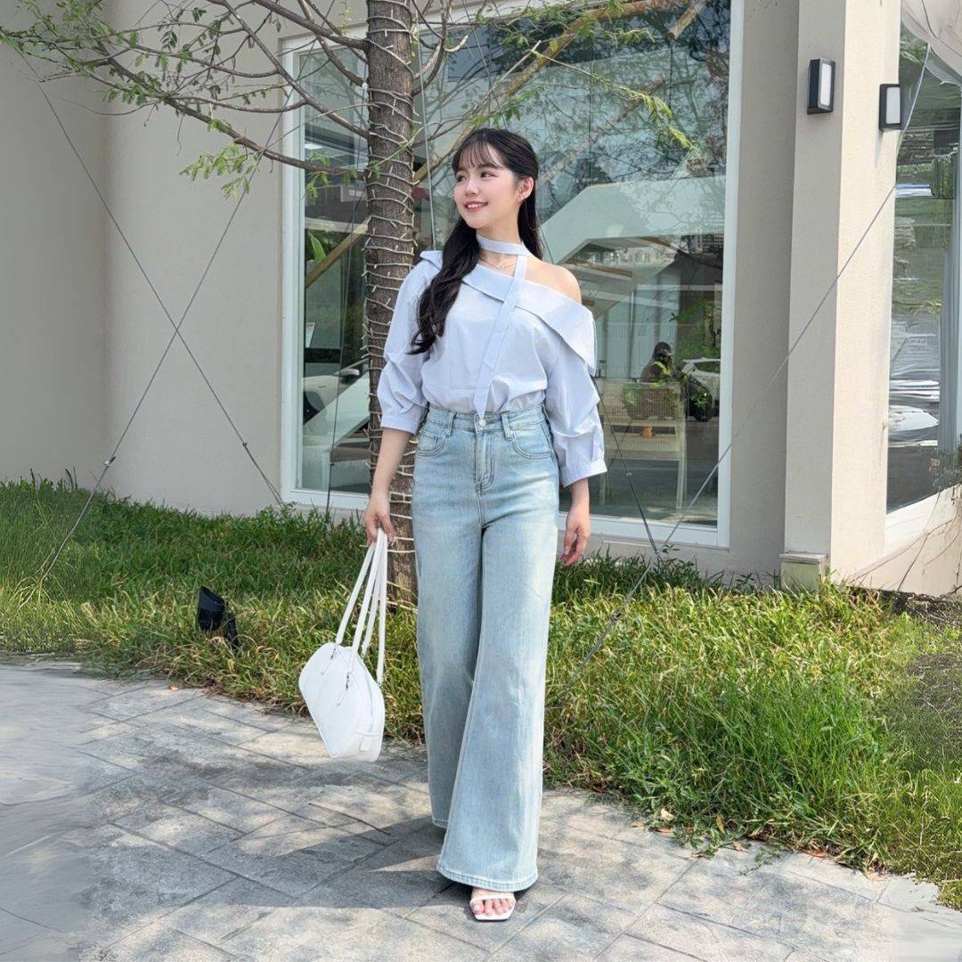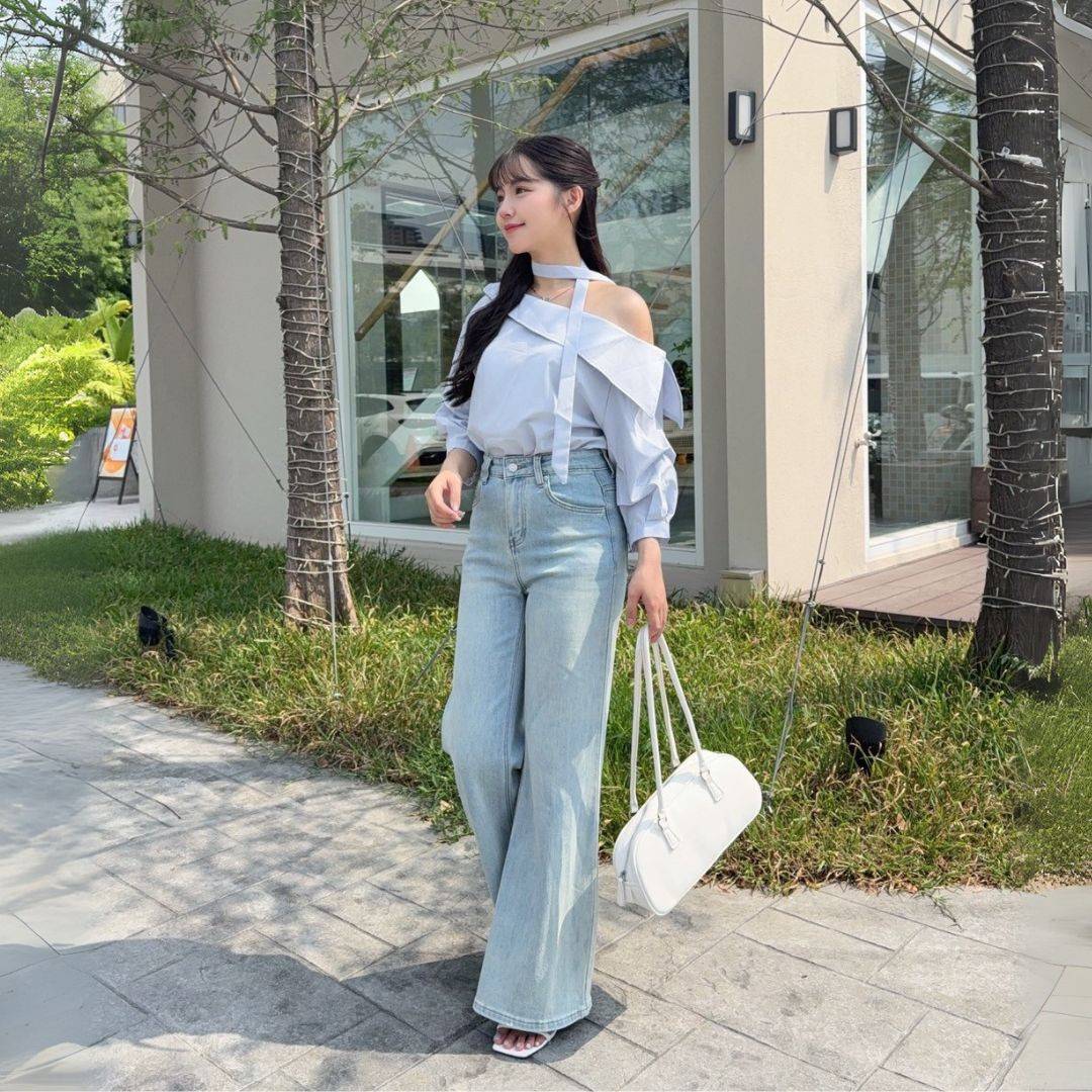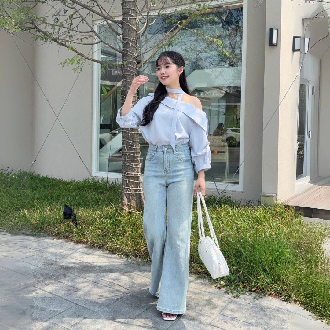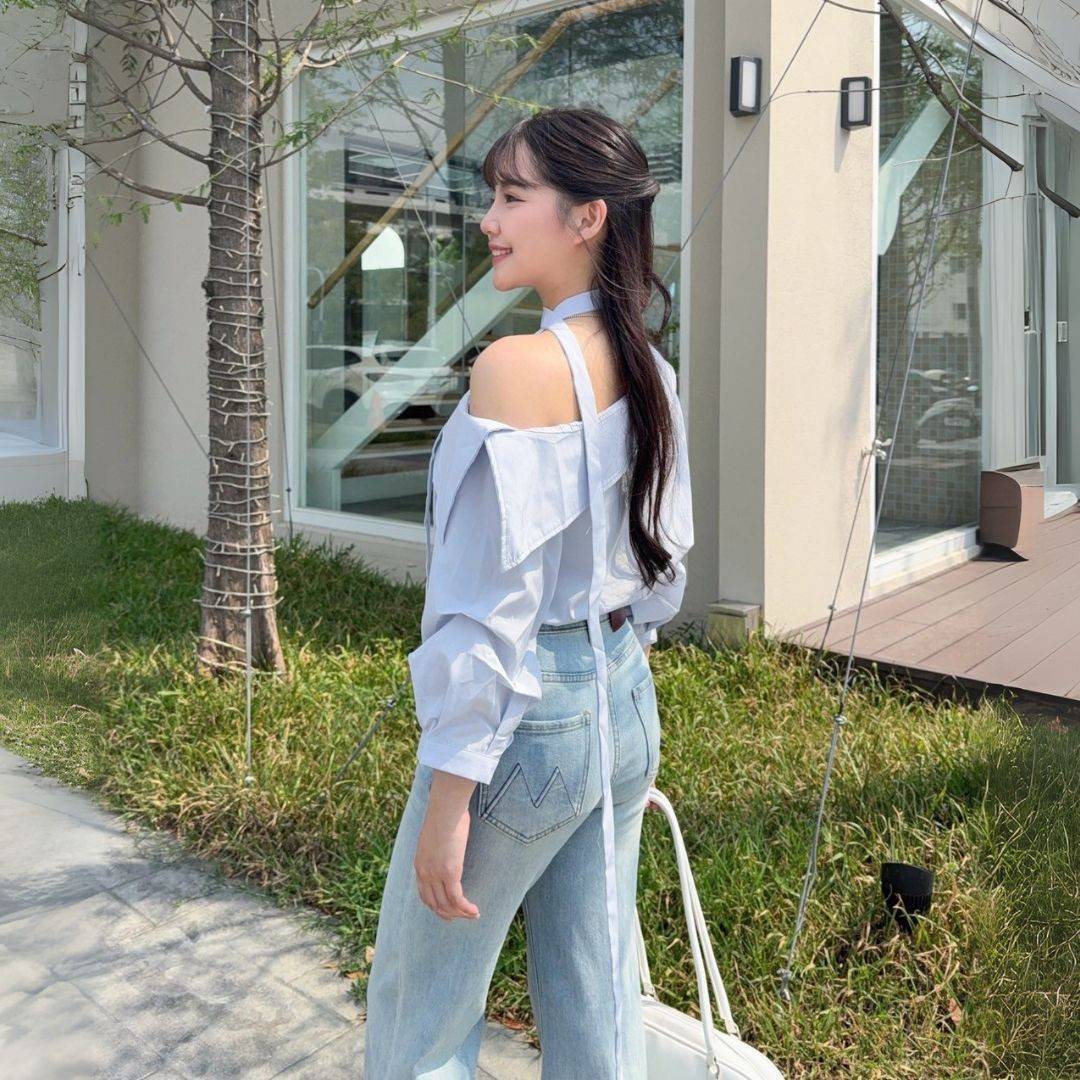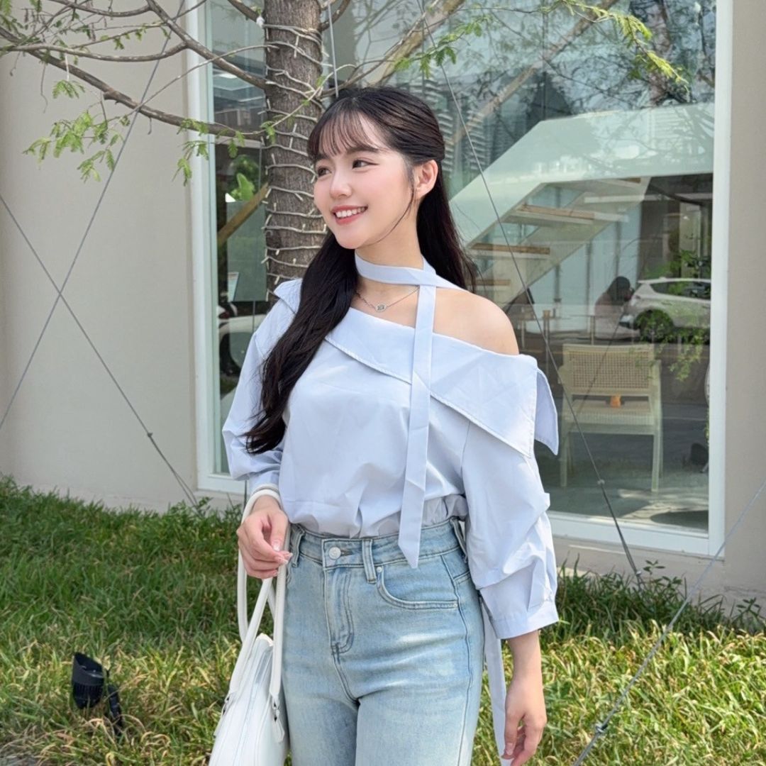 高智感韓女 通勤日常斜肩造型繞脖上衣 (1colors) #Z16