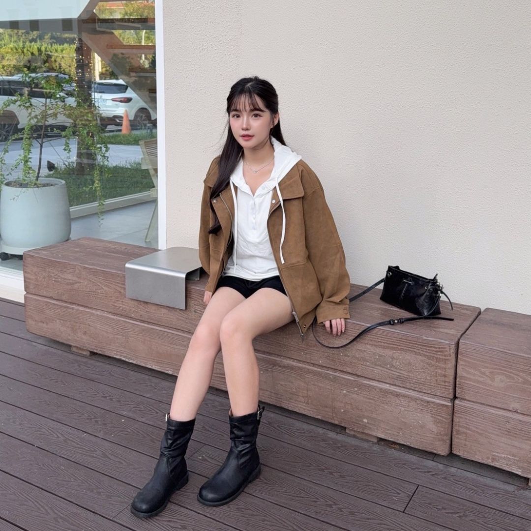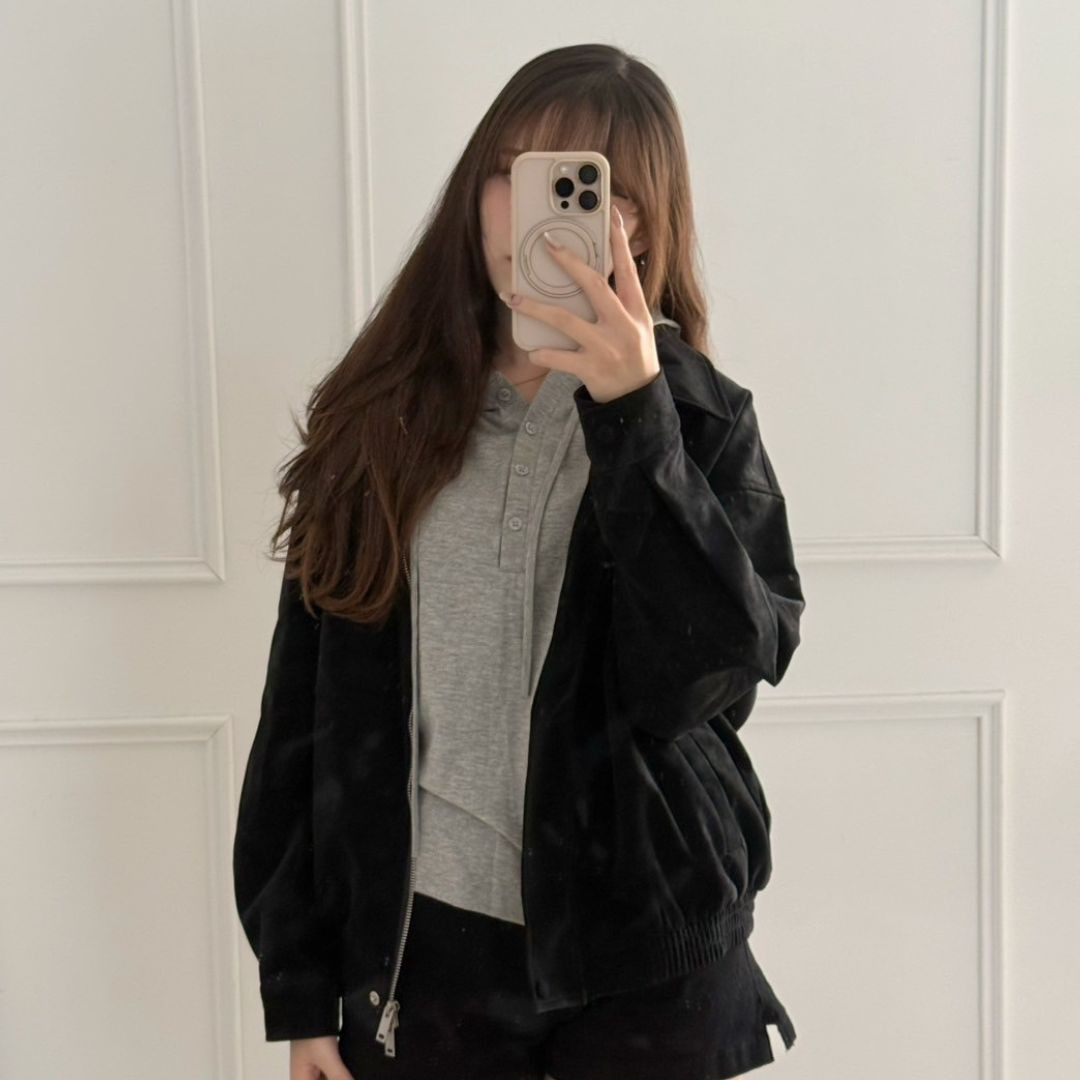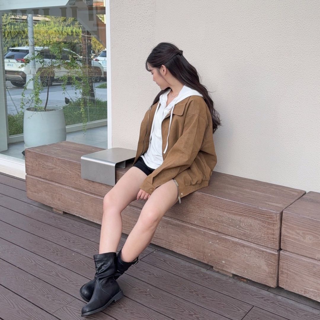洛杉磯日報 高質感麂皮拉鍊翻領外套 (2colors) #Z21