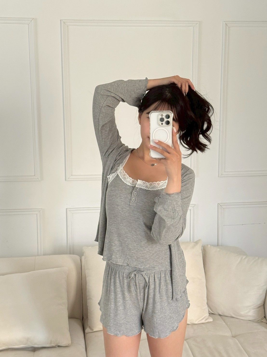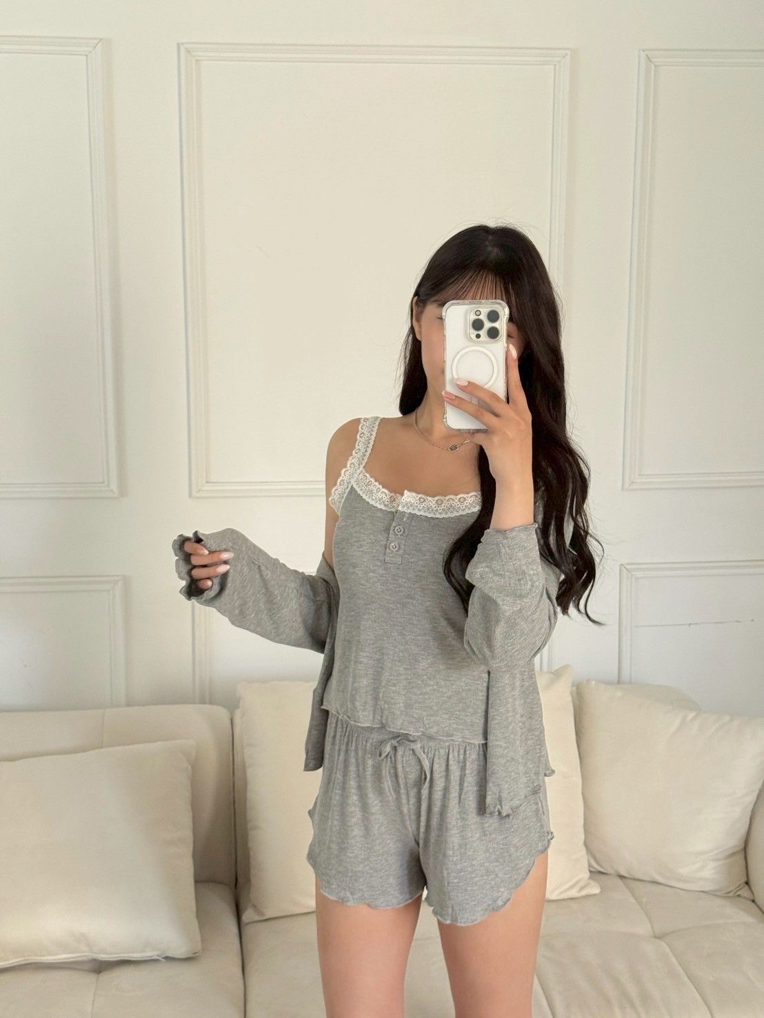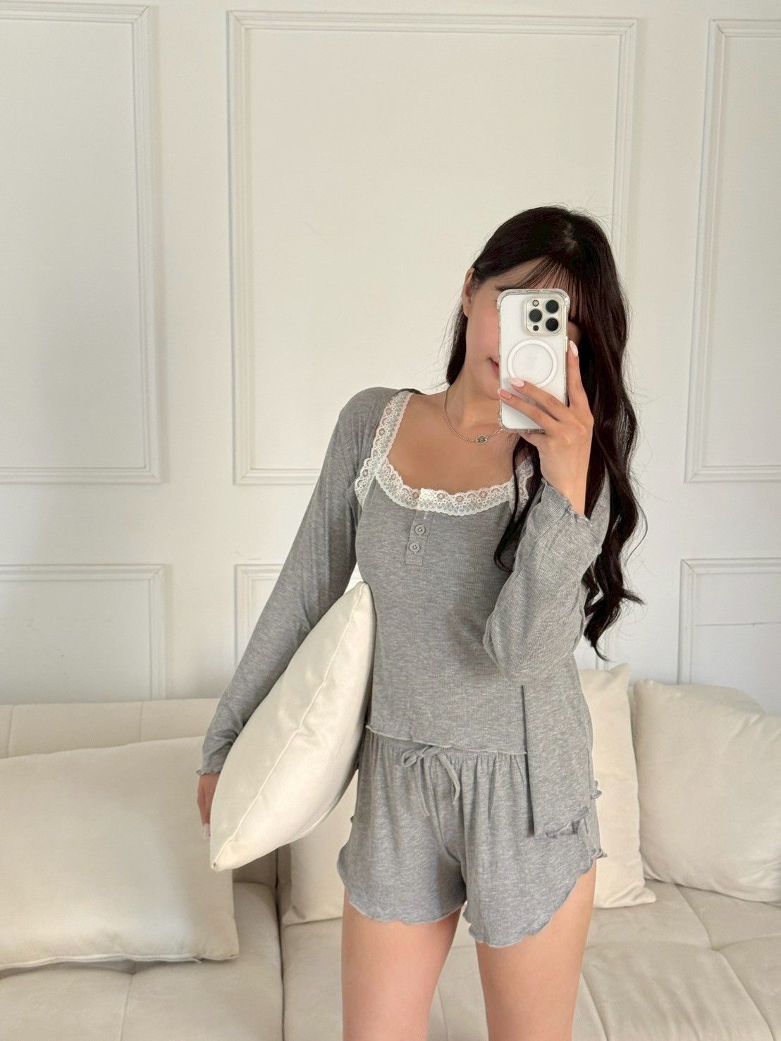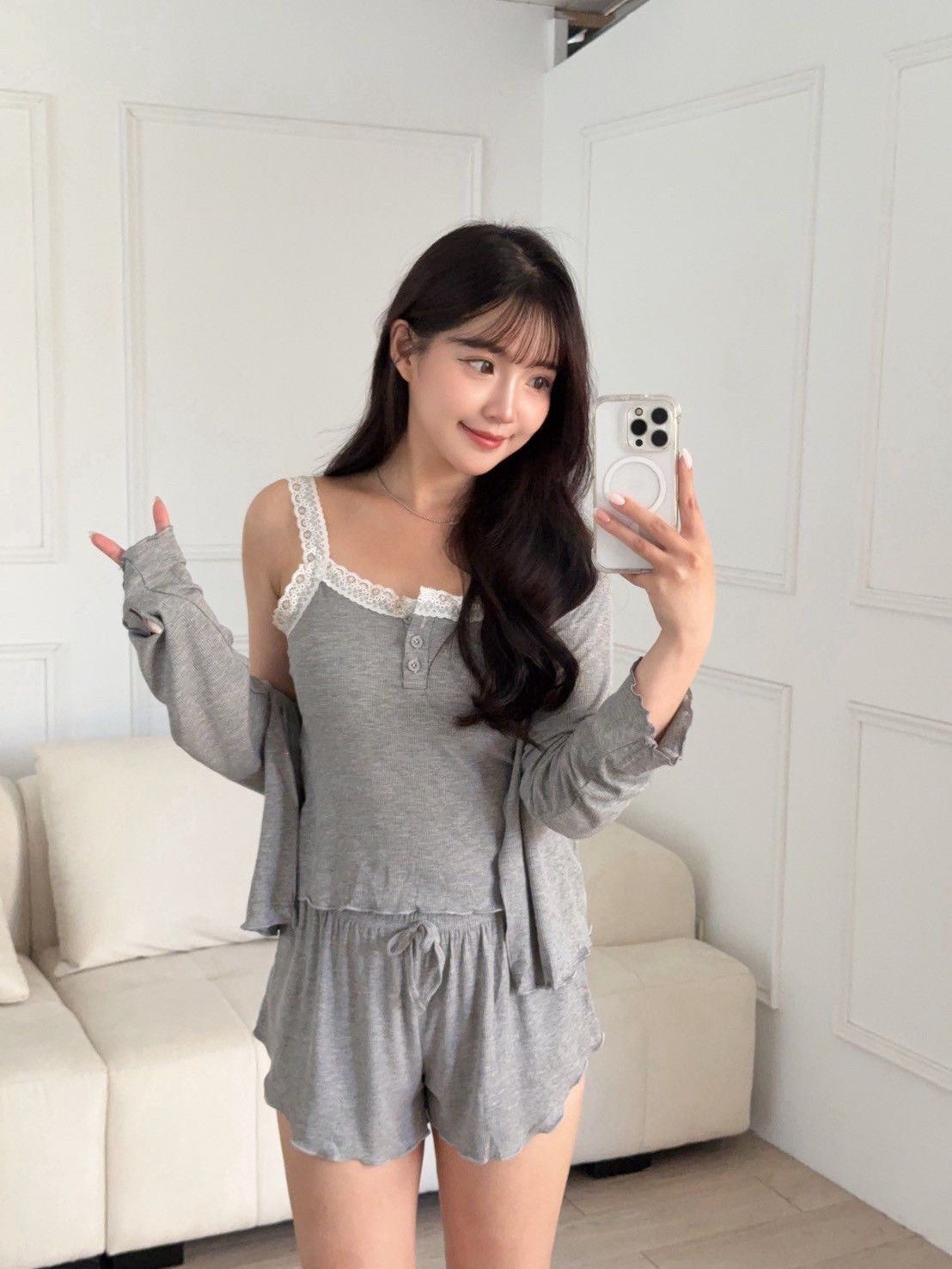 睡衣派對 可鹽可甜蕾絲滾邊帶Bra舒適睡衣Set (2colors) #Z22