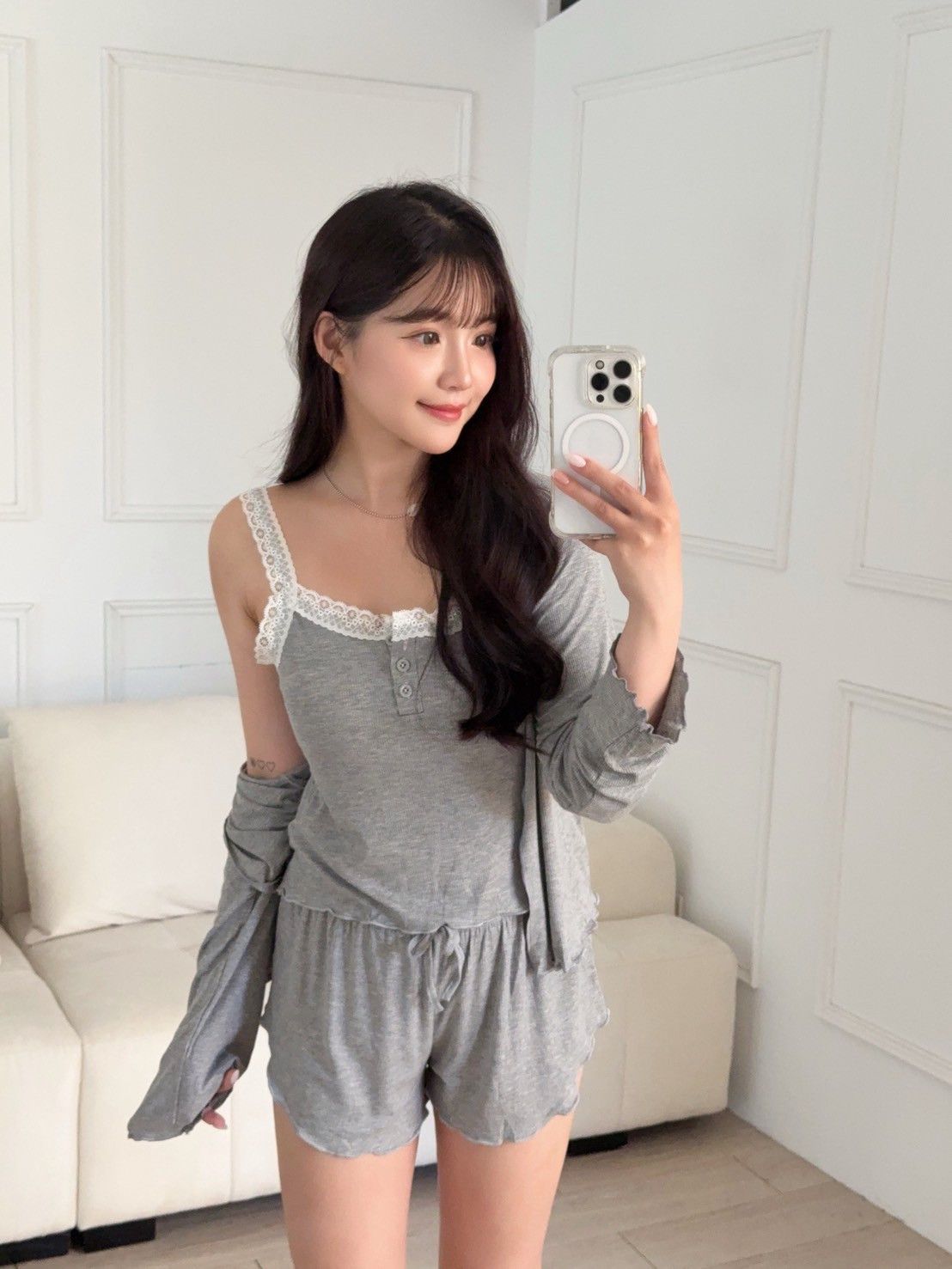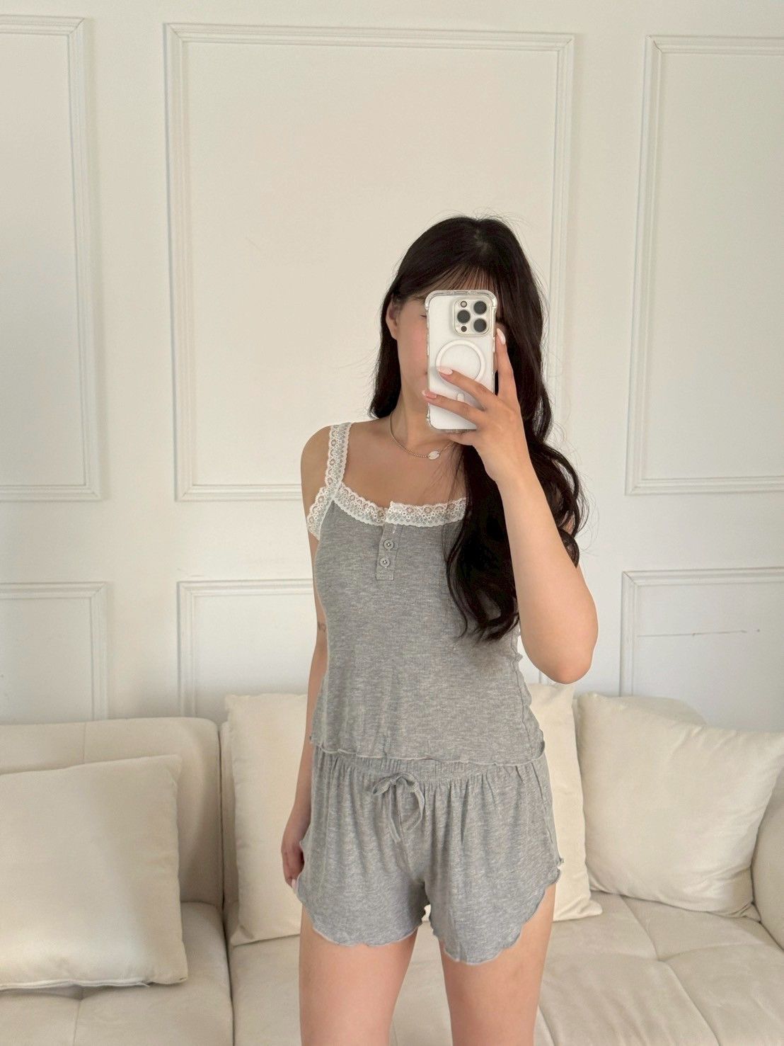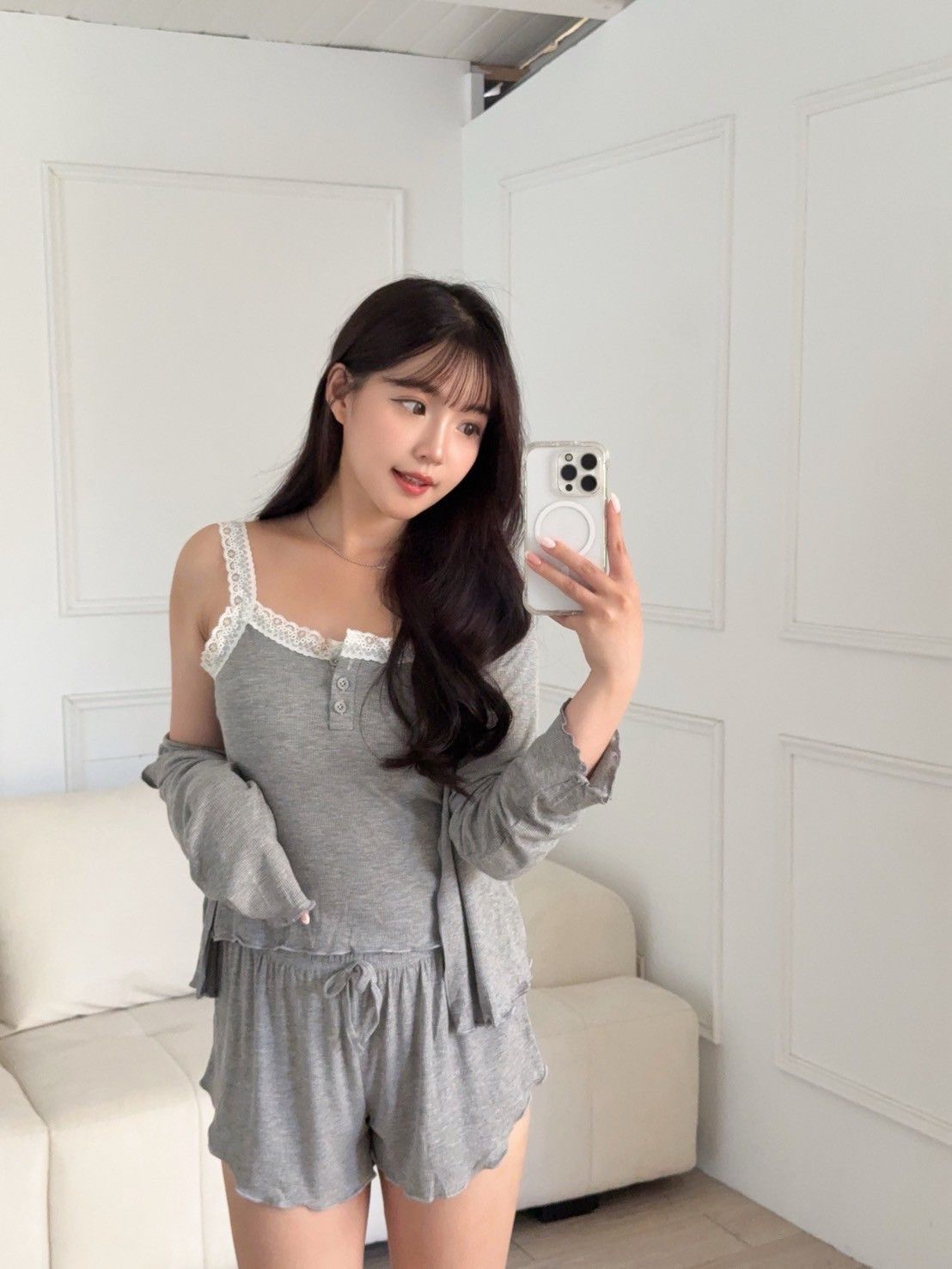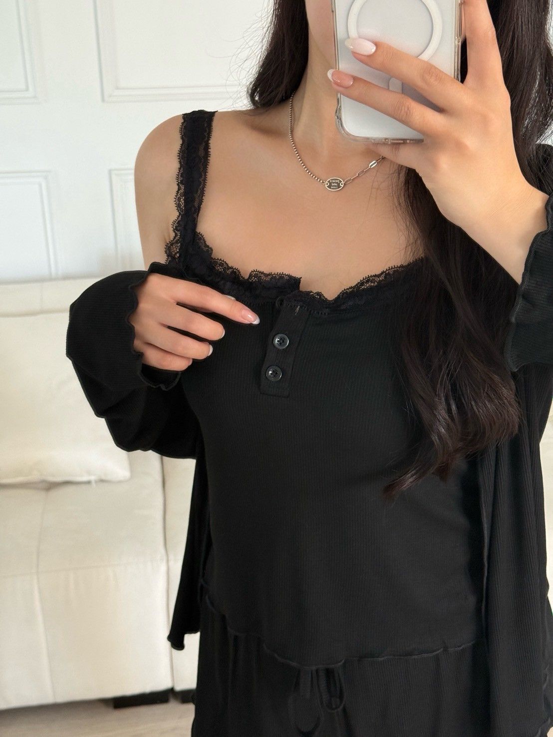 睡衣派對 可鹽可甜蕾絲滾邊帶Bra舒適睡衣Set (2colors) #Z22