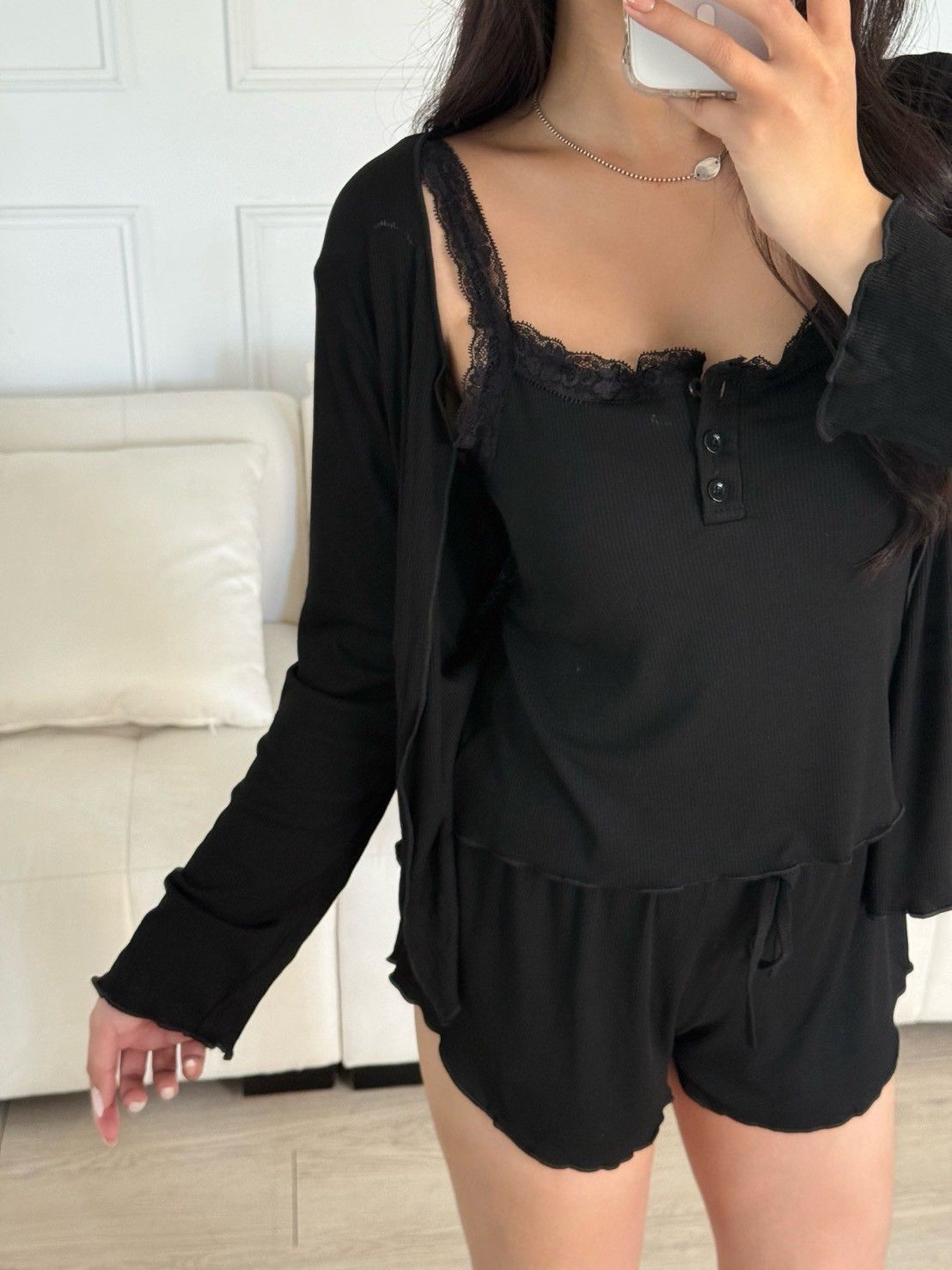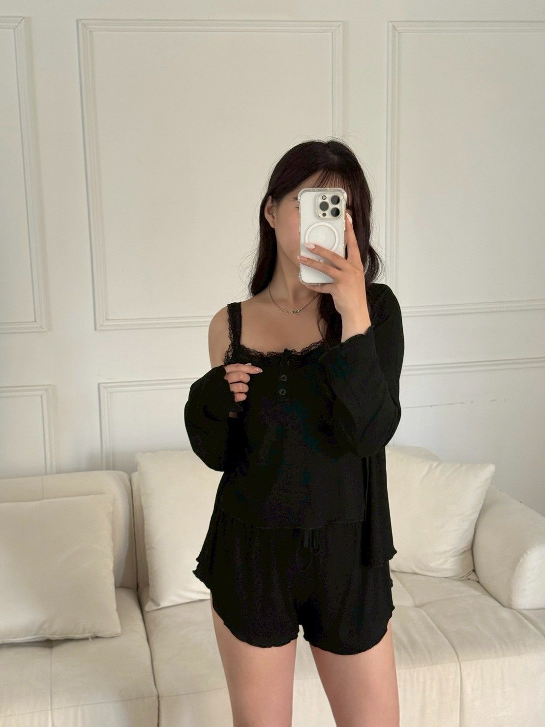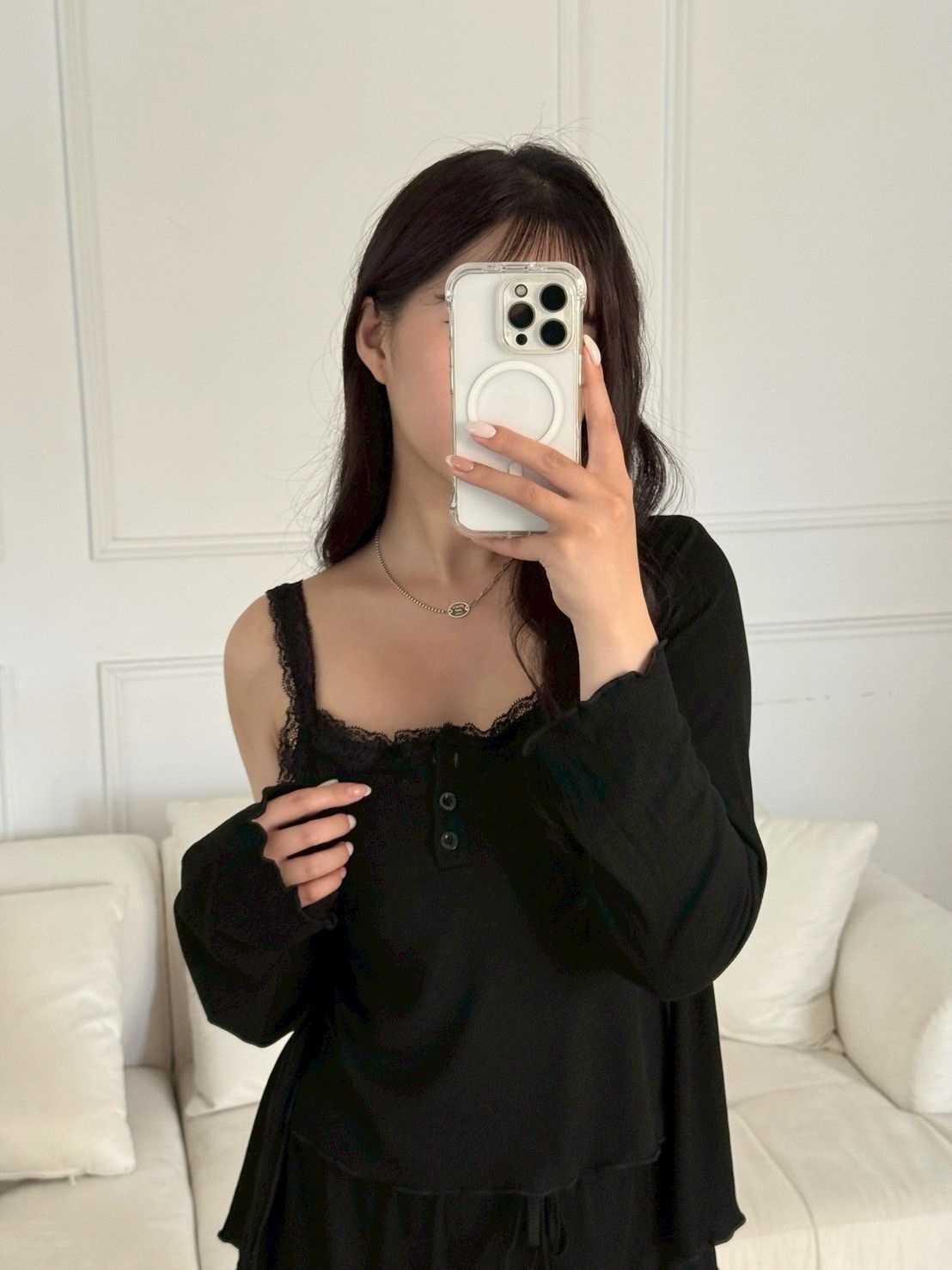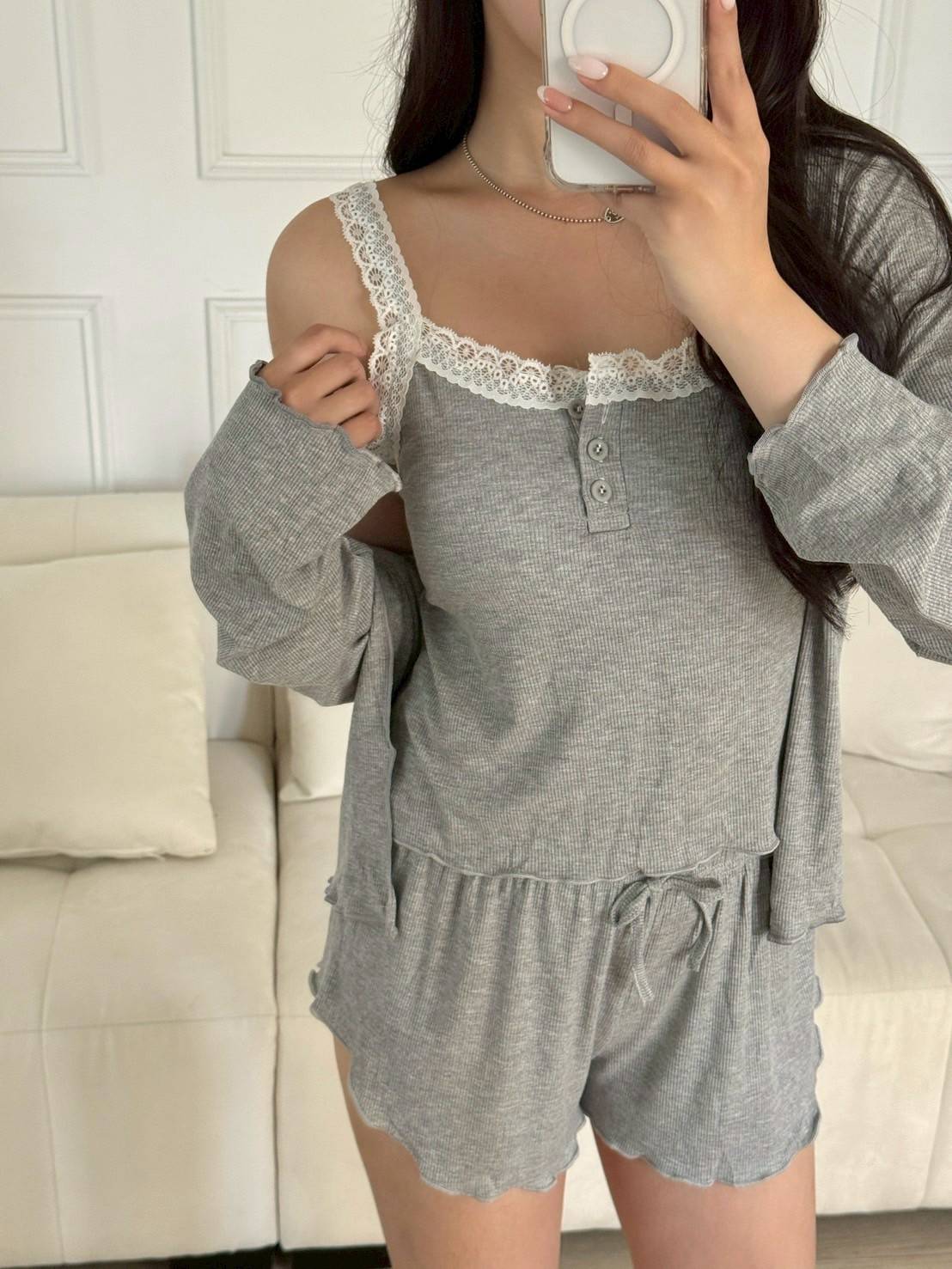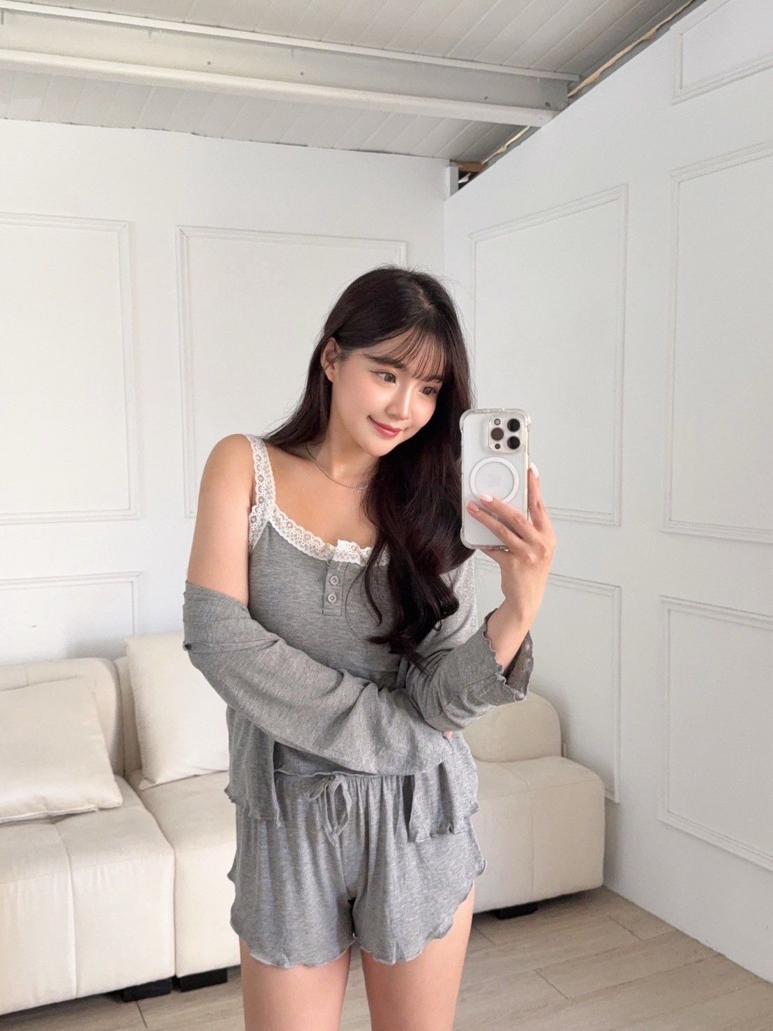 睡衣派對 可鹽可甜蕾絲滾邊帶Bra舒適睡衣Set (2colors) #Z22