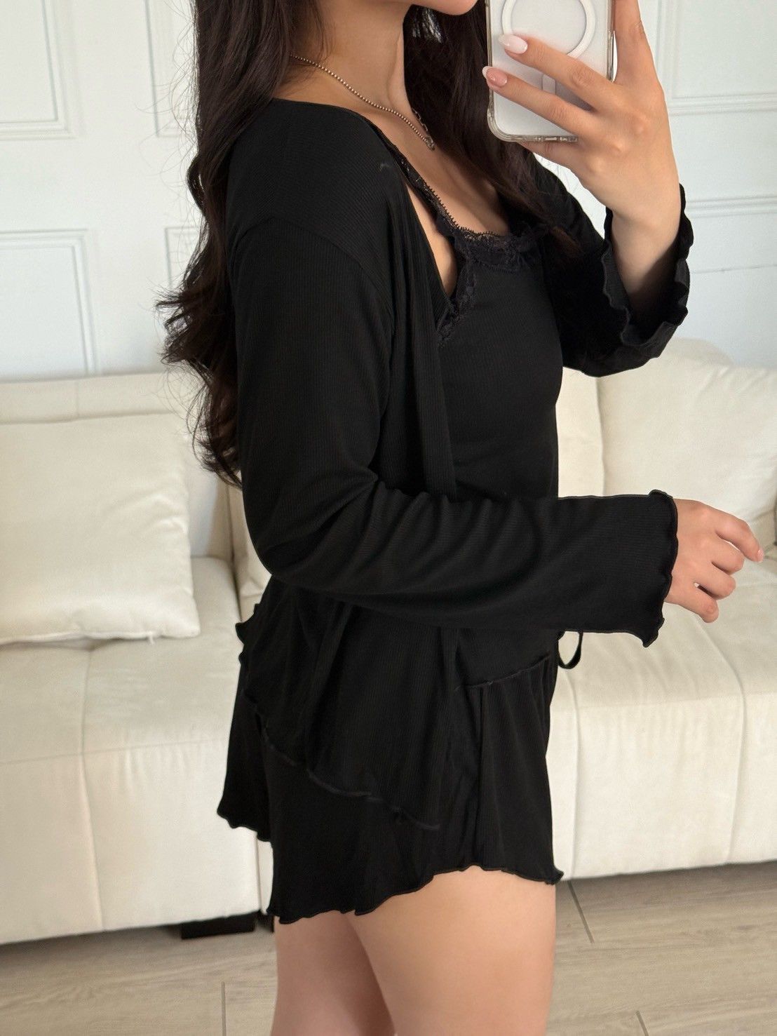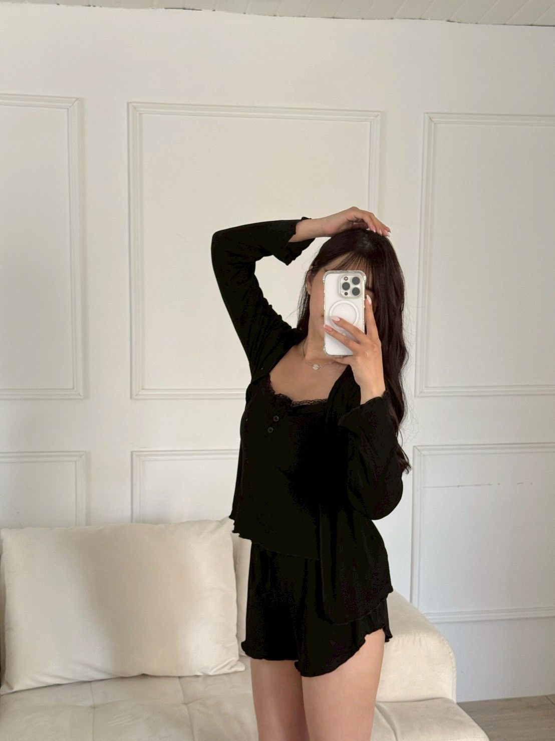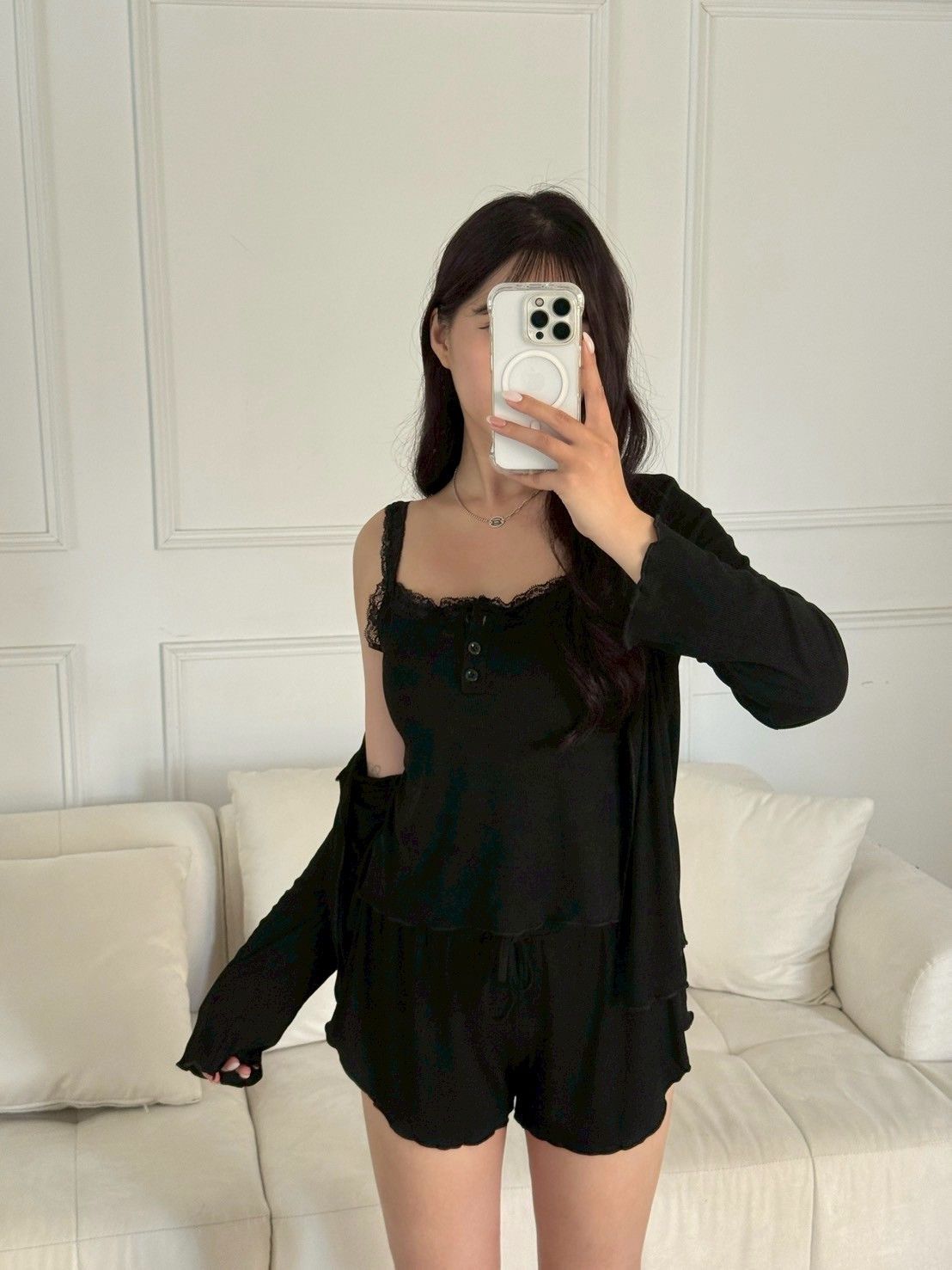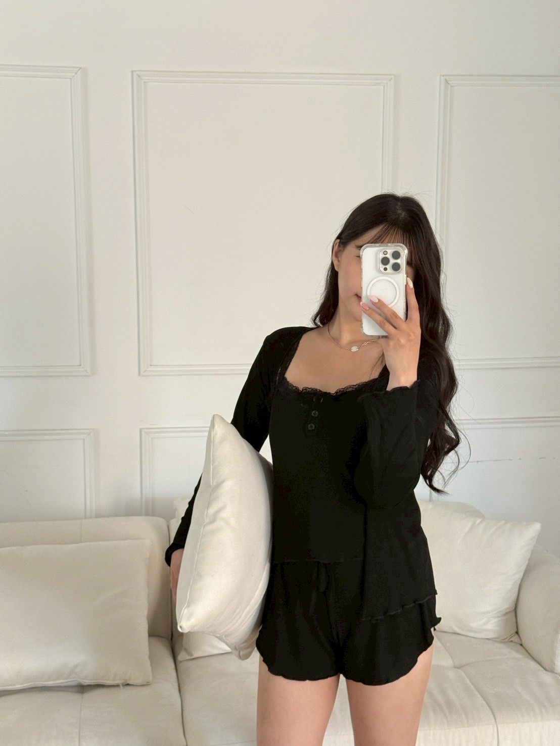 睡衣派對 可鹽可甜蕾絲滾邊帶Bra舒適睡衣Set (2colors) #Z22