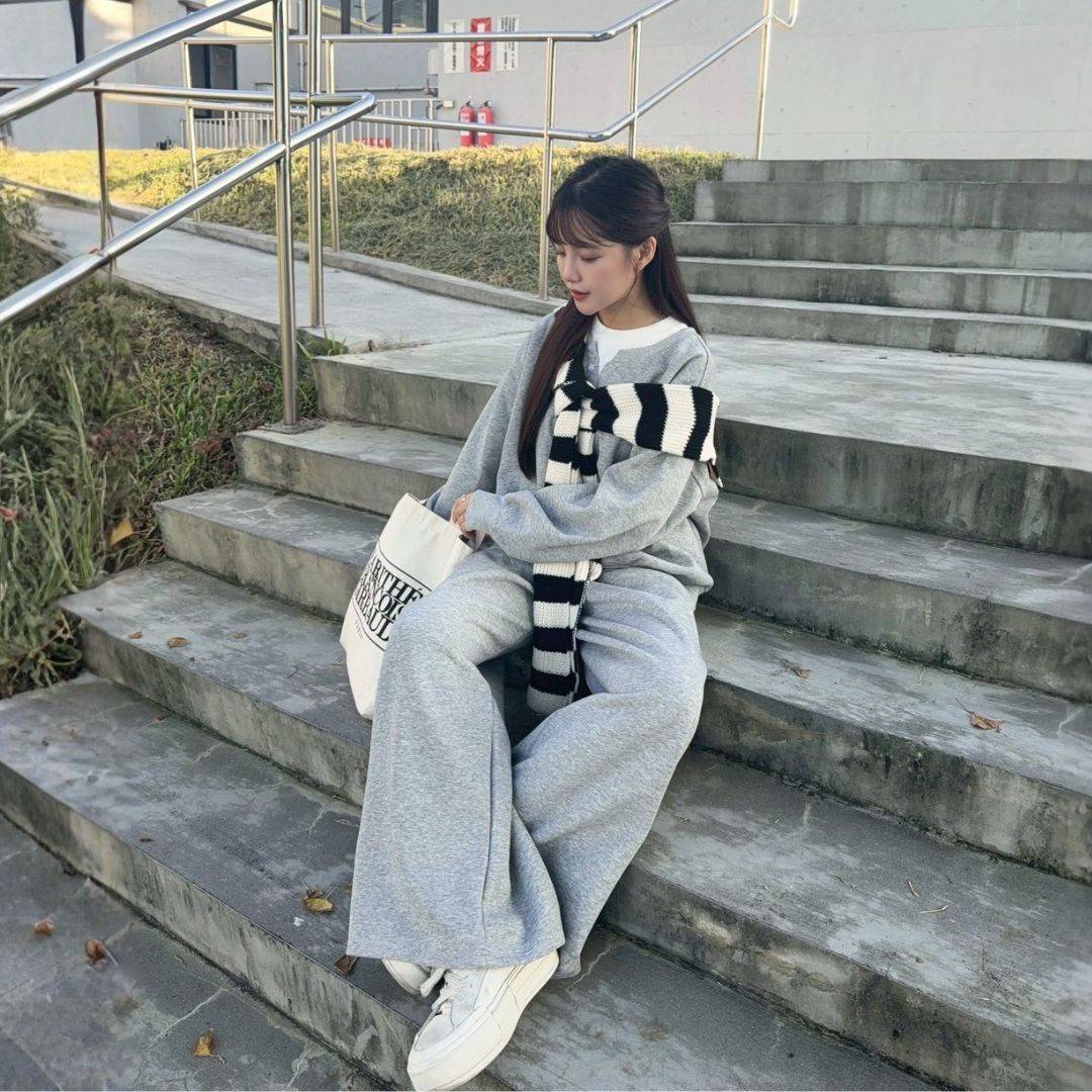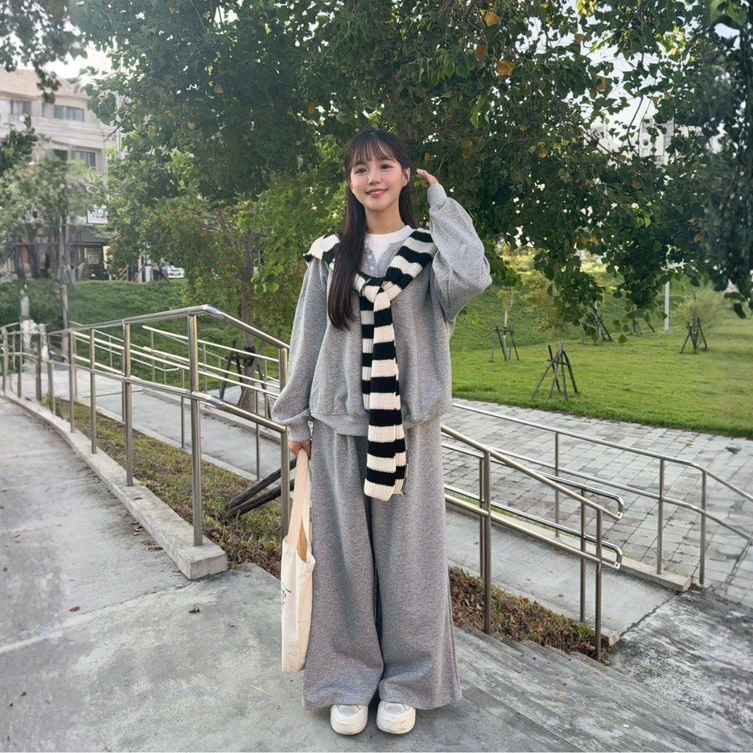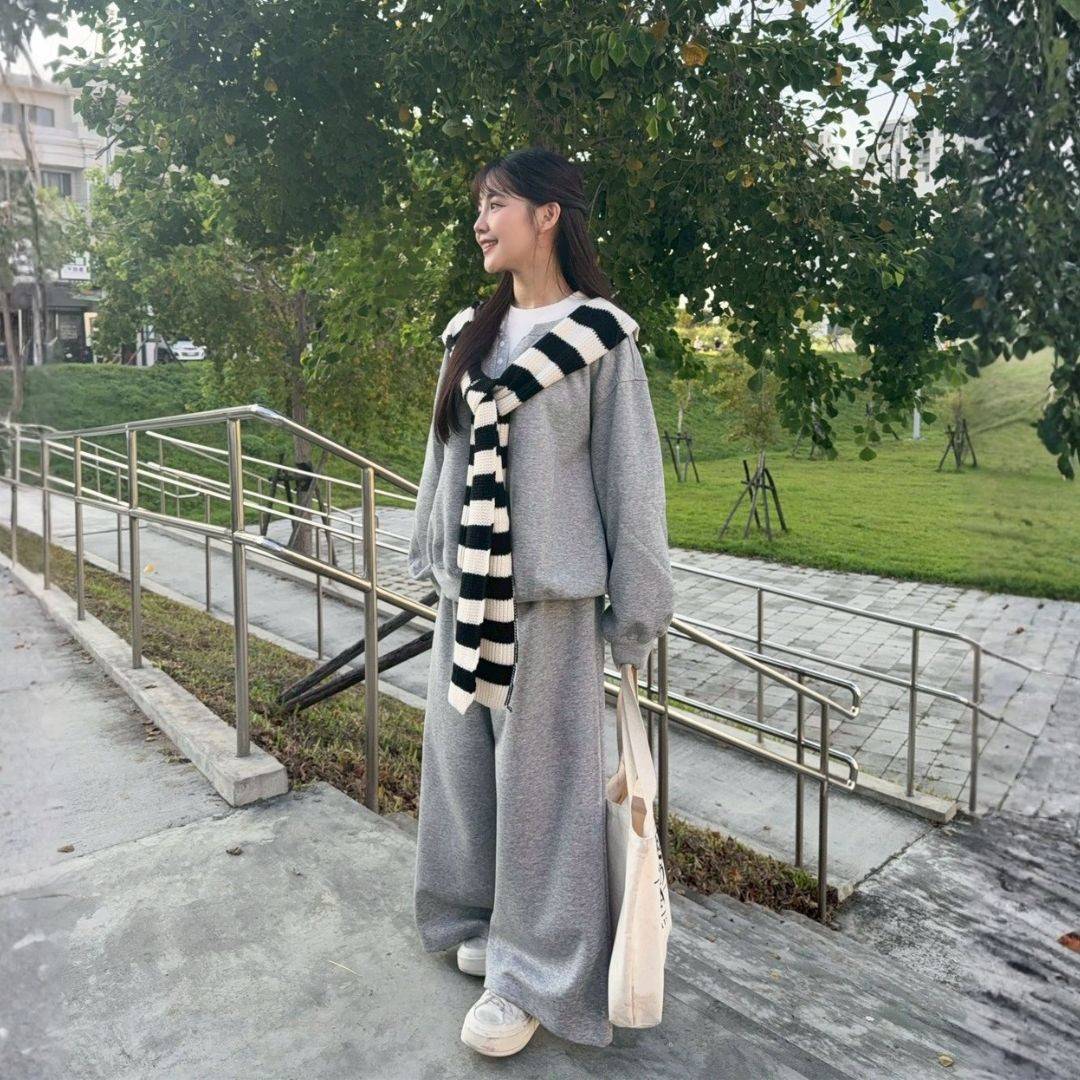 飛機場穿搭首選 鬆弛拉滿oversize棉套裝set (1colors) #ZA12