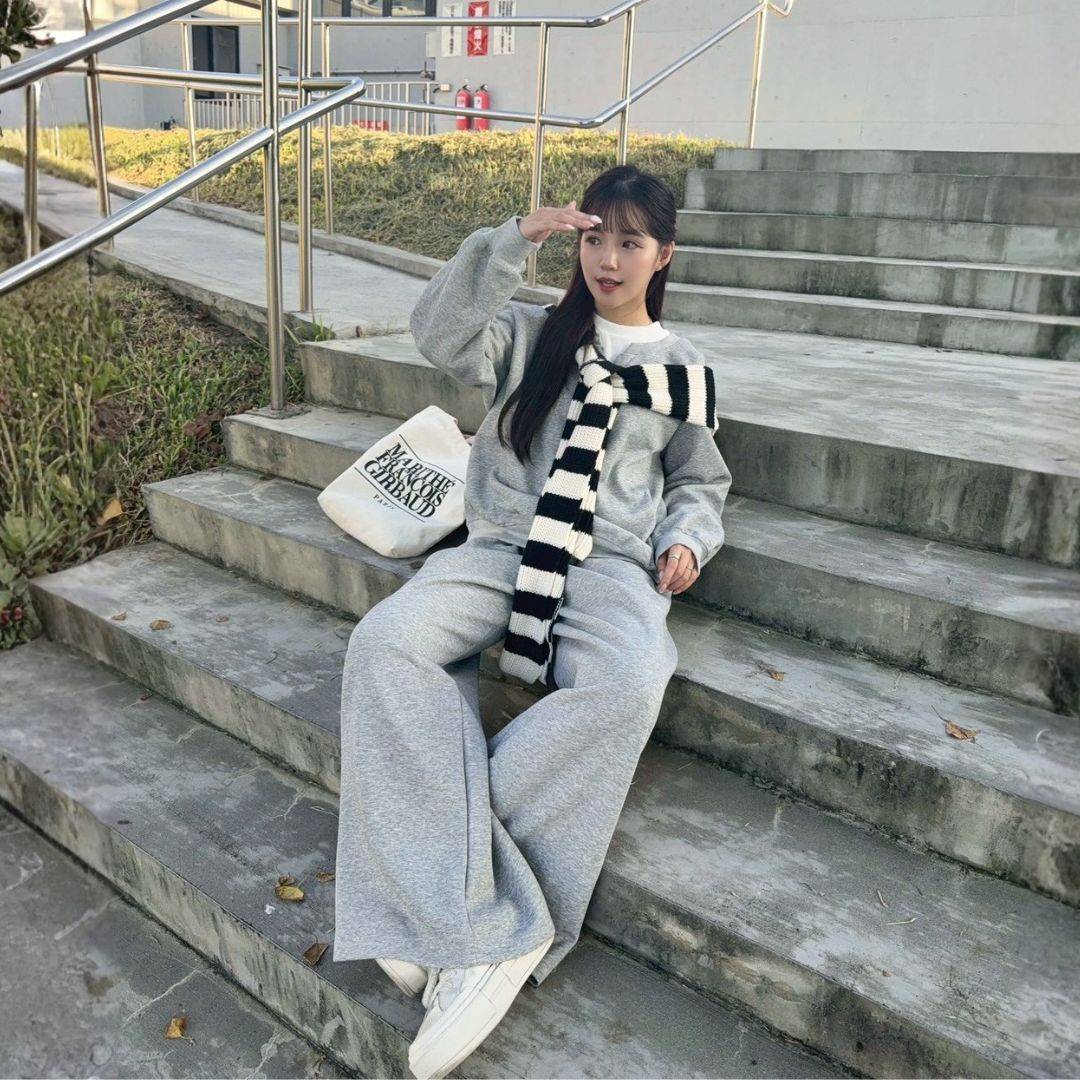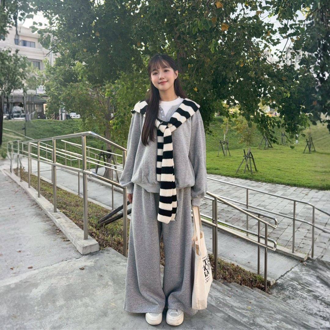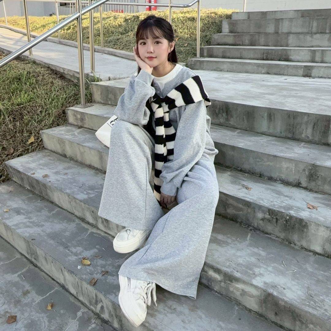 飛機場穿搭首選 鬆弛拉滿oversize棉套裝set (1colors) #ZA12
