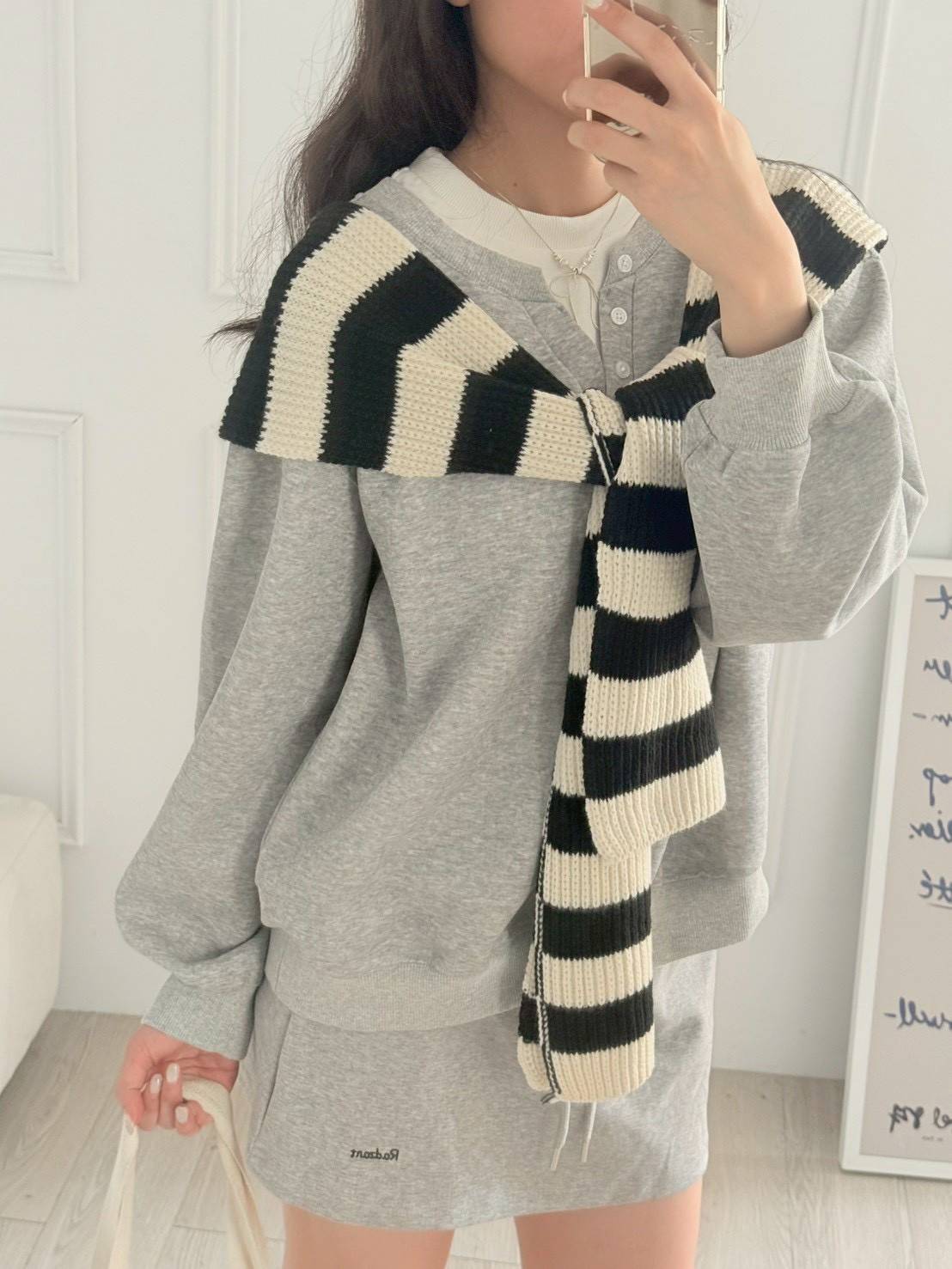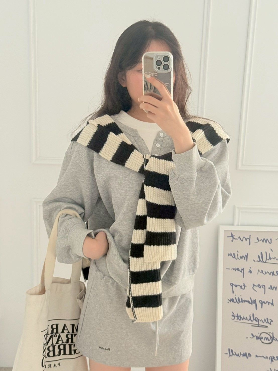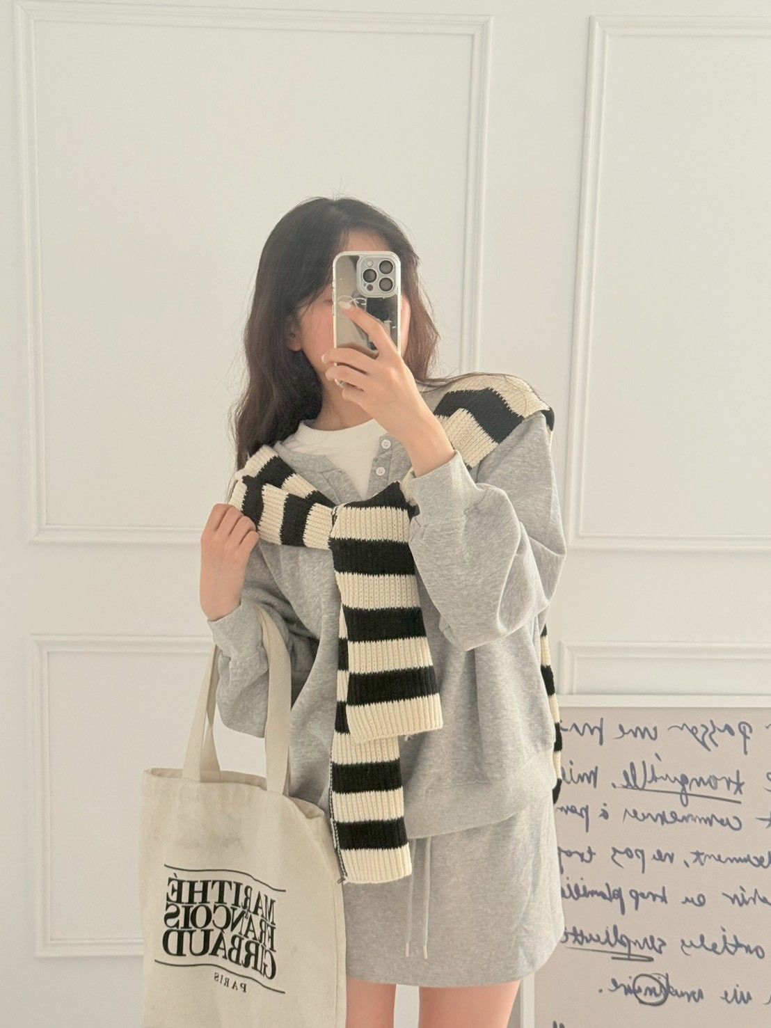 條紋奶霜 甜美女孩衣櫃裡的Daily Look三件套 (1colors) #ZA13