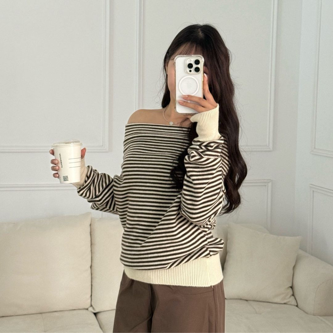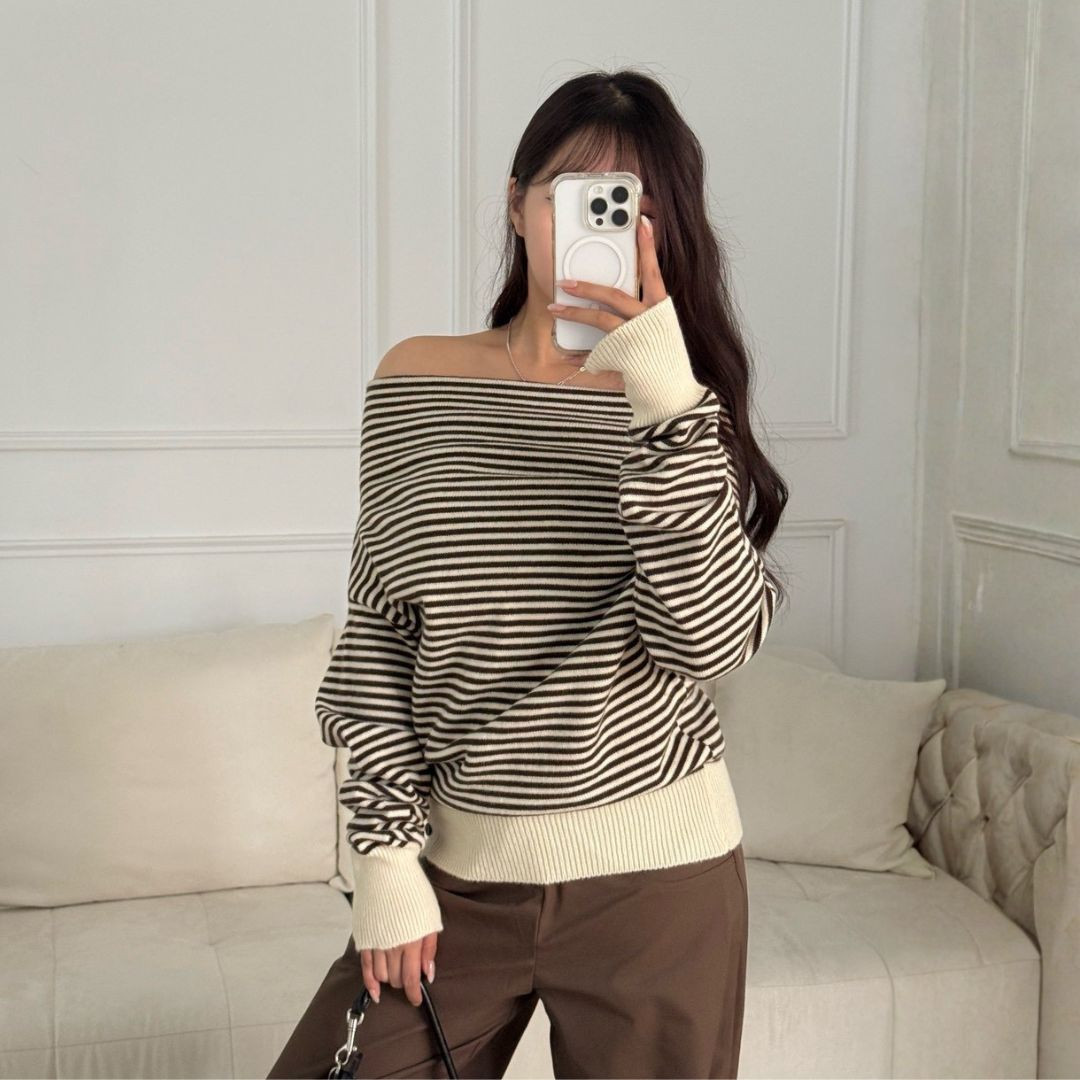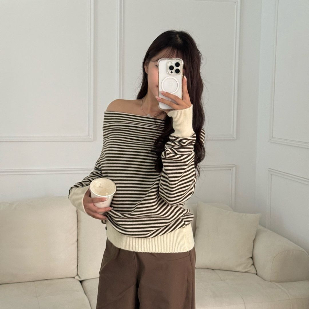 商品詳情 尺寸 : F (可穿至S-L)平量尺寸表(cm) : 衣長64/肩寬37/袖長74※商品皆為手工測量 誤差1-3cm皆屬正常範圍【出貨說明】現貨商品:於3天內(不含假日)寄出預購商品:追加天數為7-21左右(不含假日)寄出 摩卡特調 慵懶感條紋一字領針織上衣 (1colors) #ZB08 TWD $699 TWD $699