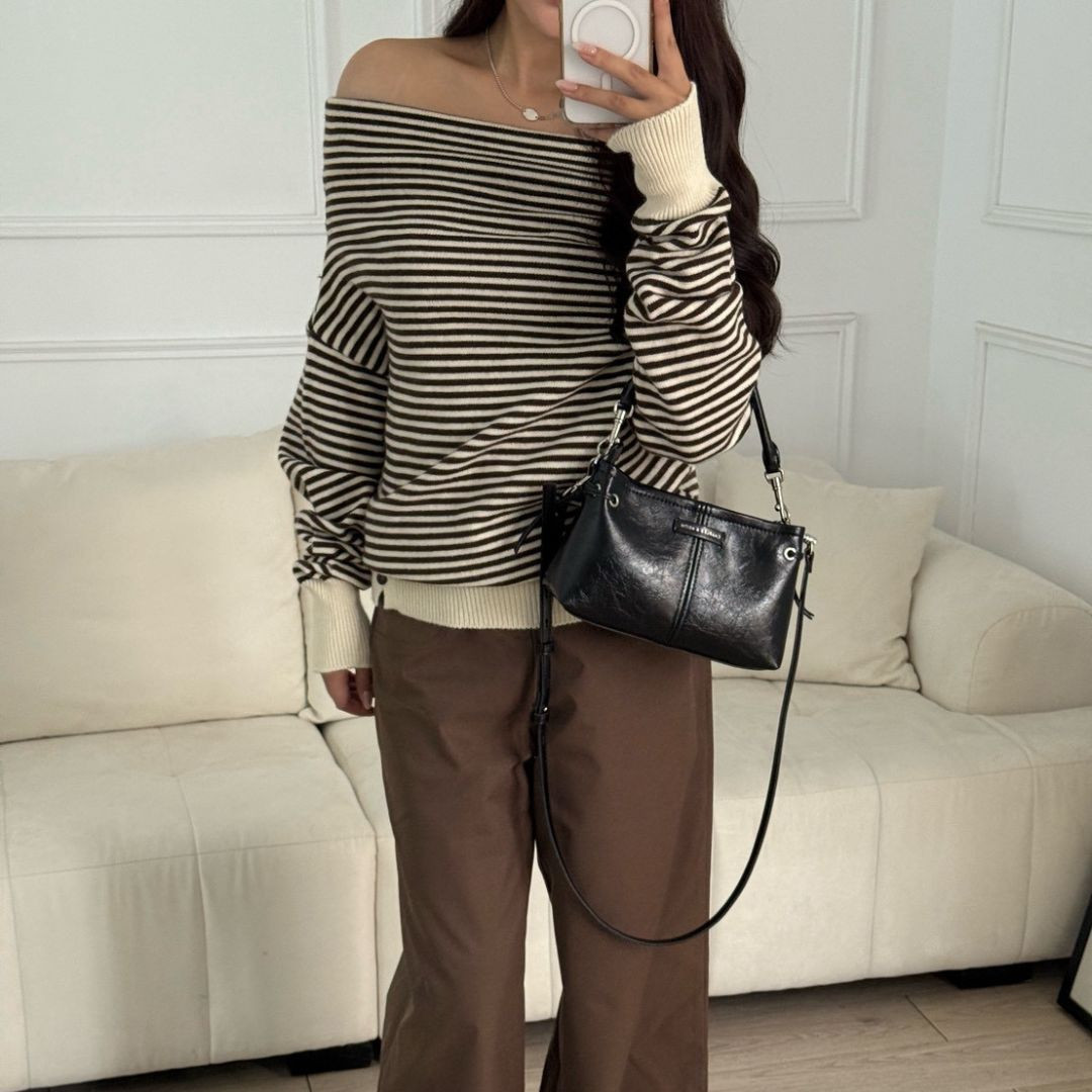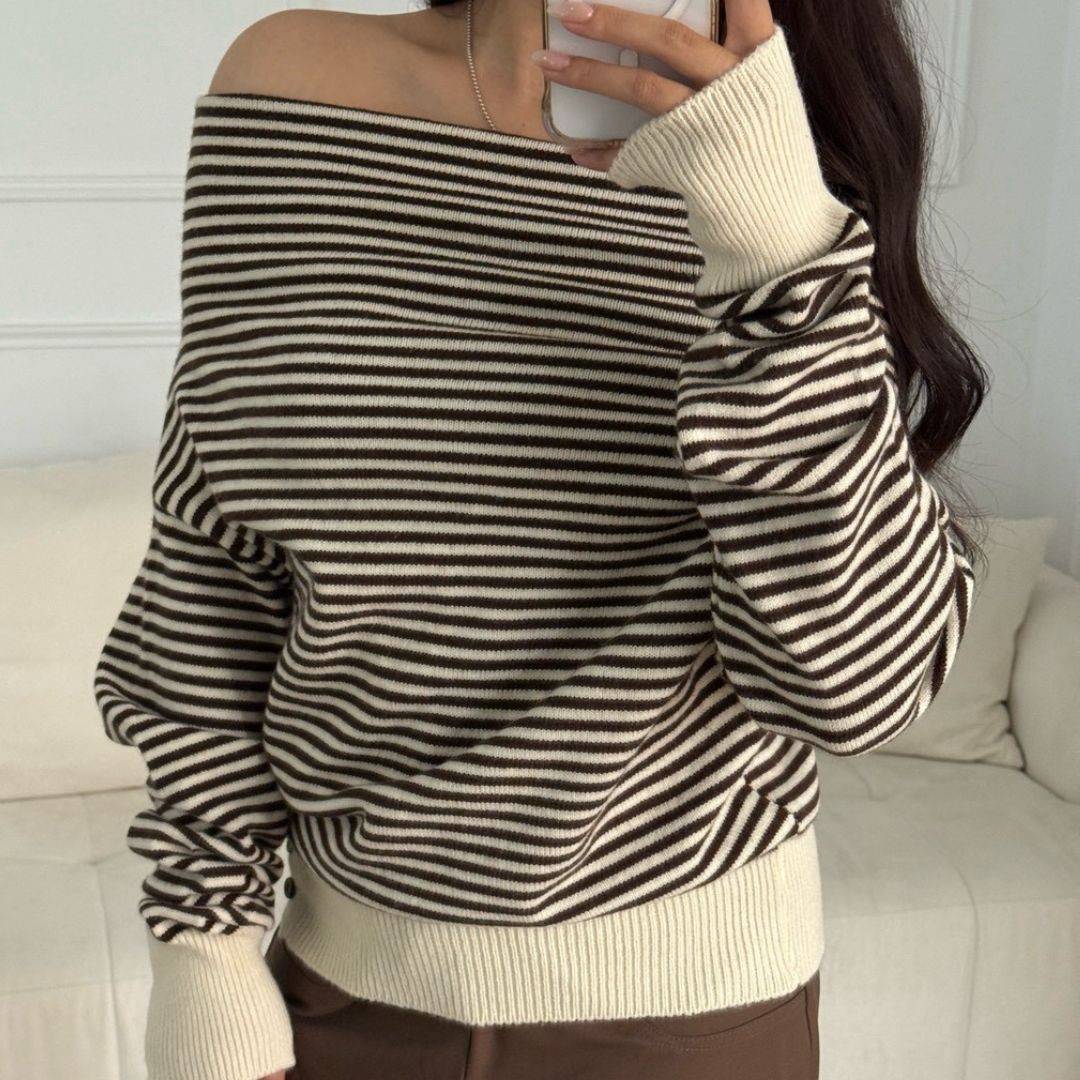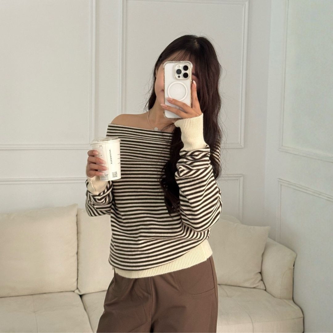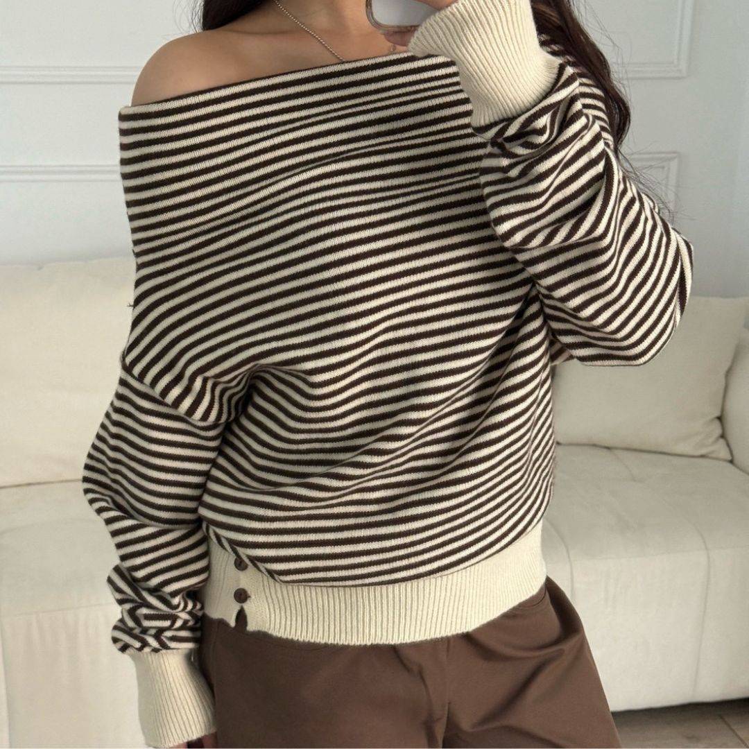 商品詳情 尺寸 : F (可穿至S-L)平量尺寸表(cm) : 衣長64/肩寬37/袖長74※商品皆為手工測量 誤差1-3cm皆屬正常範圍【出貨說明】現貨商品:於3天內(不含假日)寄出預購商品:追加天數為7-21左右(不含假日)寄出 摩卡特調 慵懶感條紋一字領針織上衣 (1colors) #ZB08 TWD $699 TWD $699