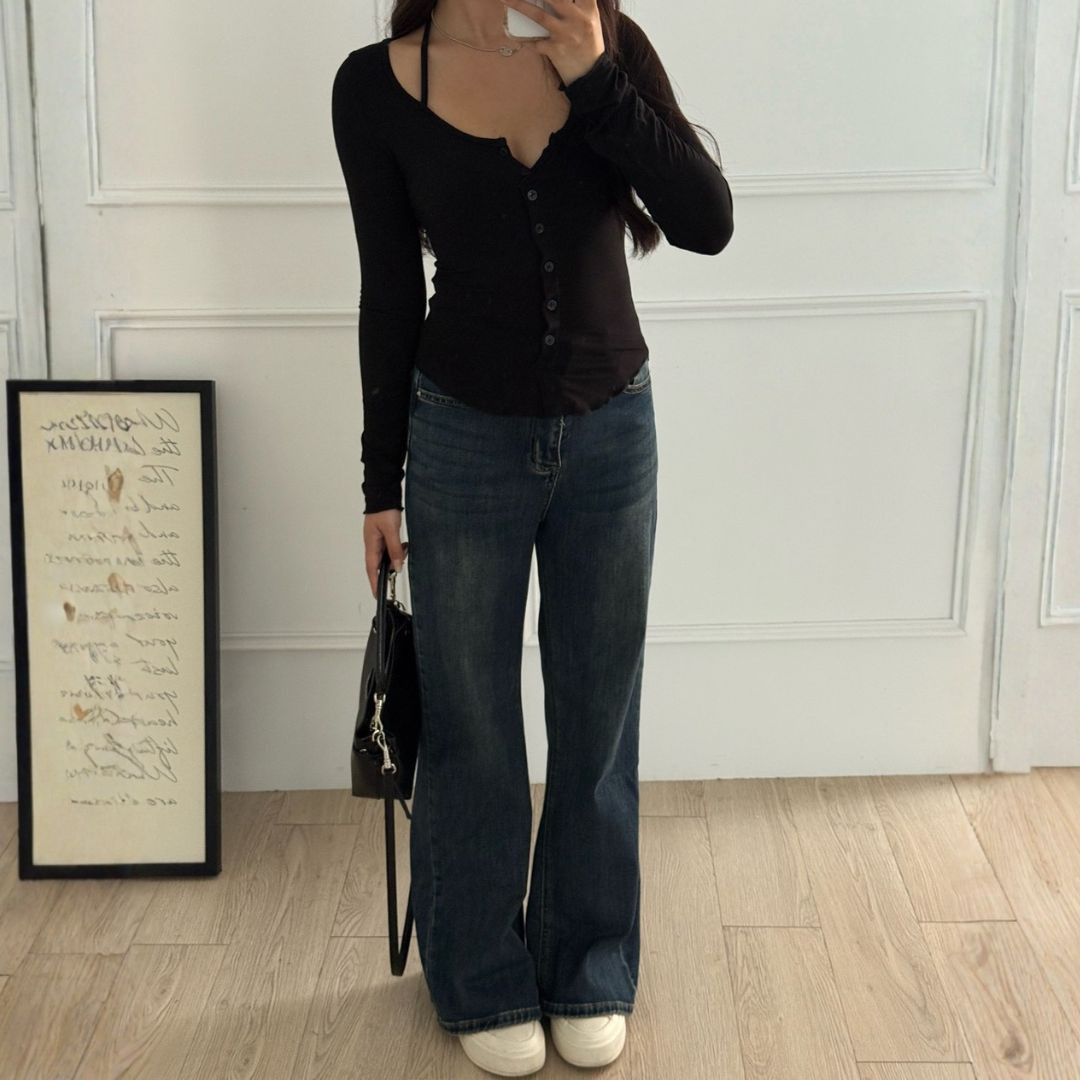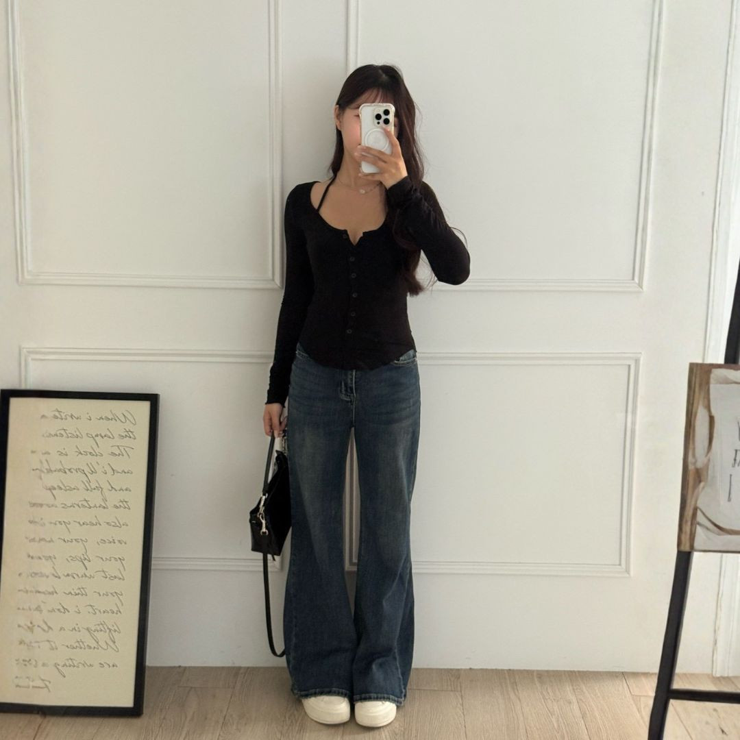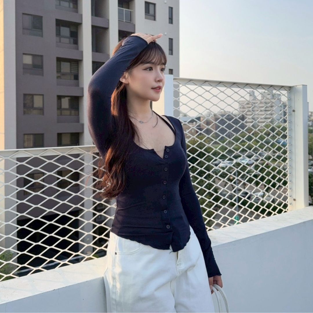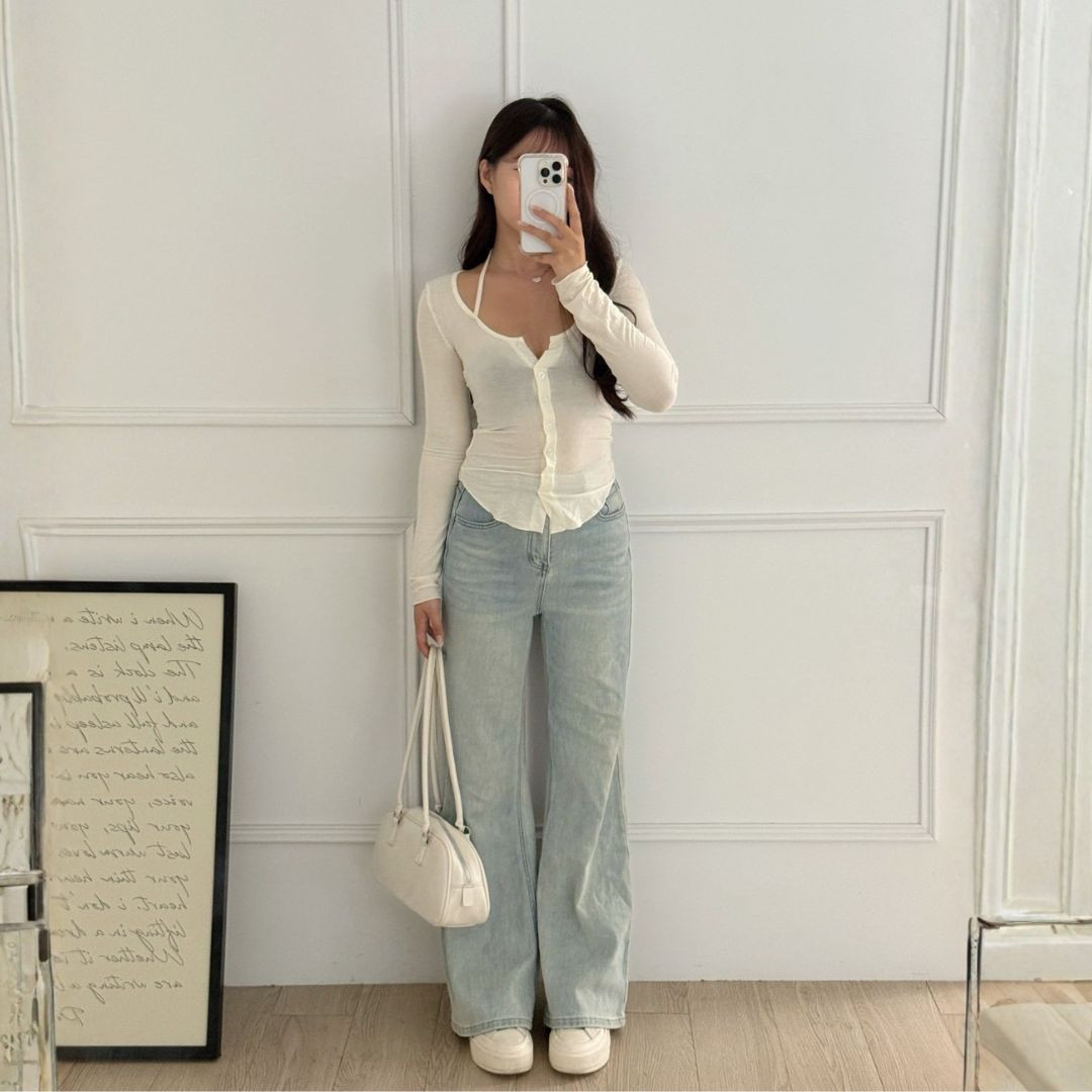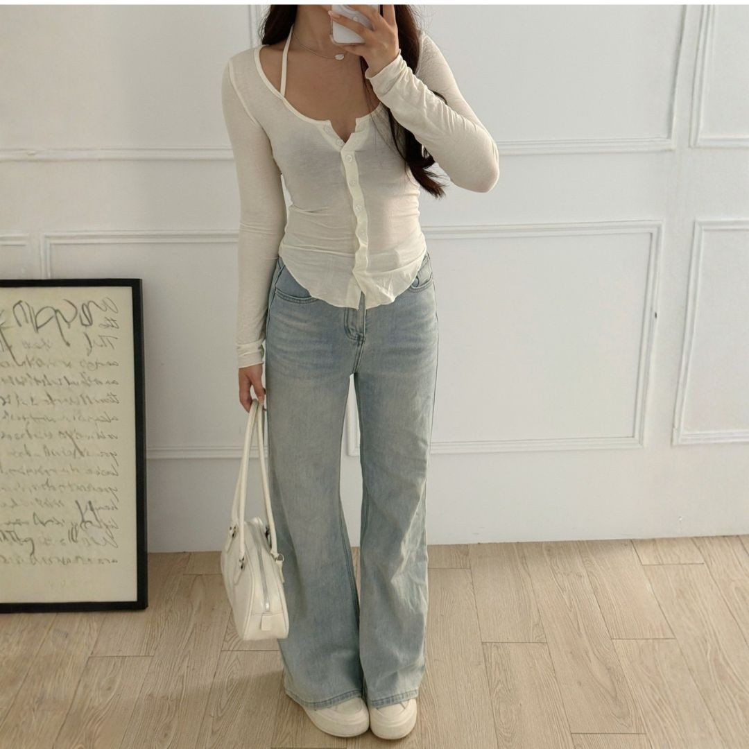 魅力吸引 心機掛脖綁帶排釦薄長袖上衣 (3colors) #ZB06
