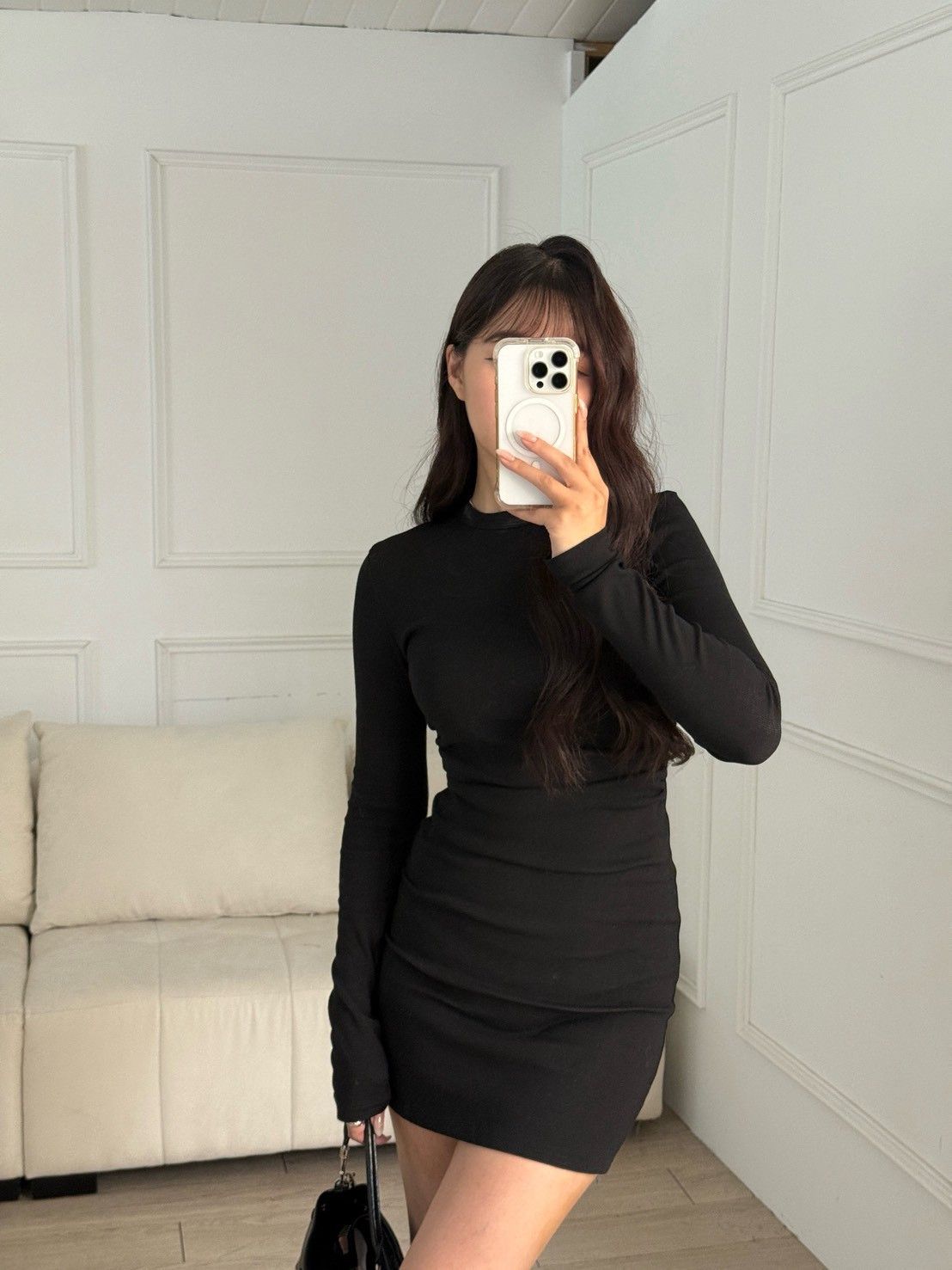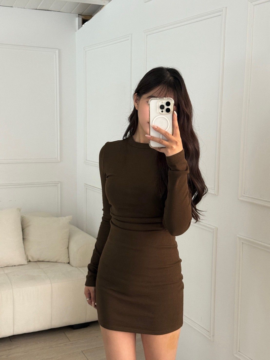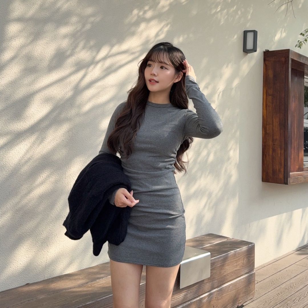 【現貨】性感曲線 腰間抓皺顯瘦長袖連身短裙 (3colors) #ZC02