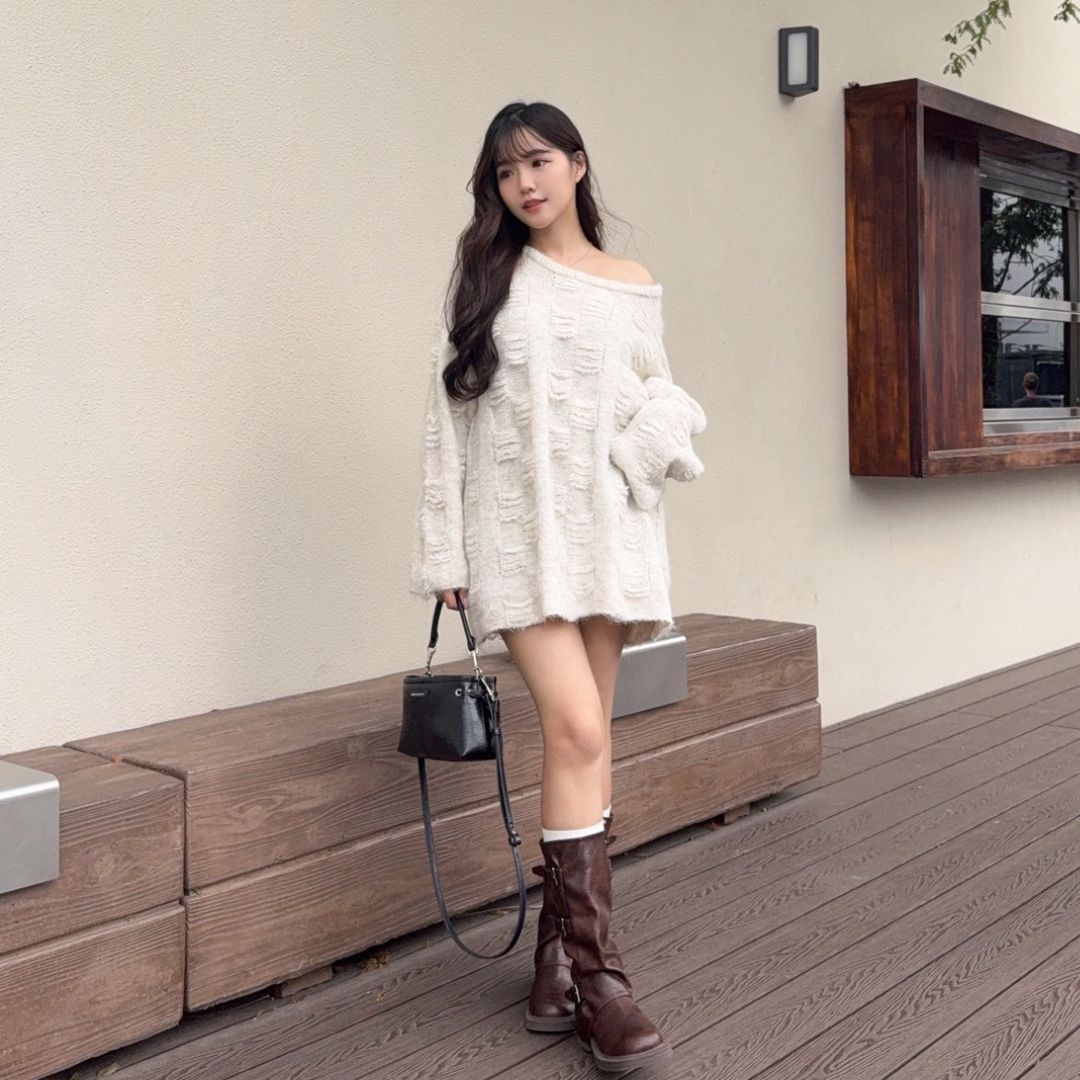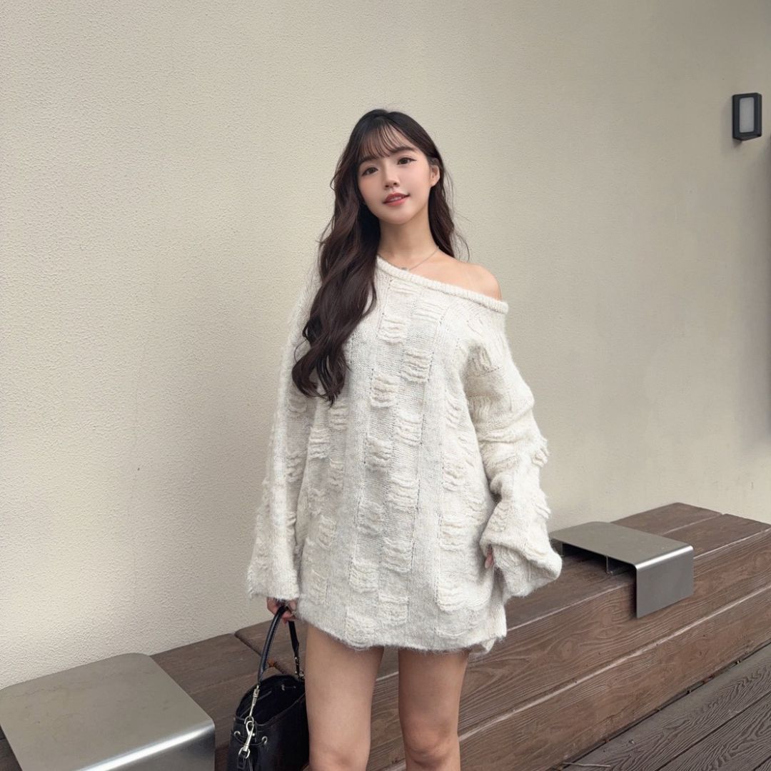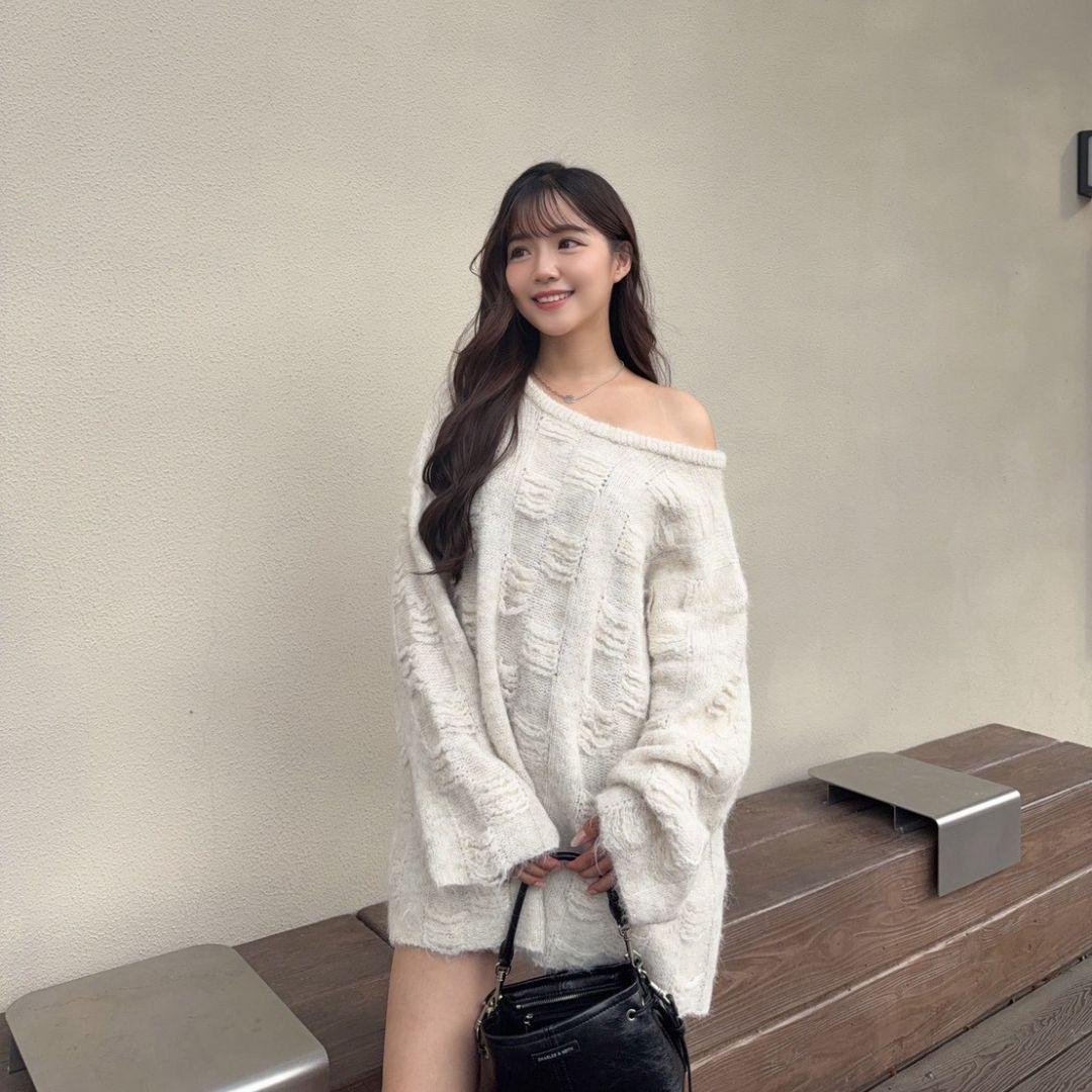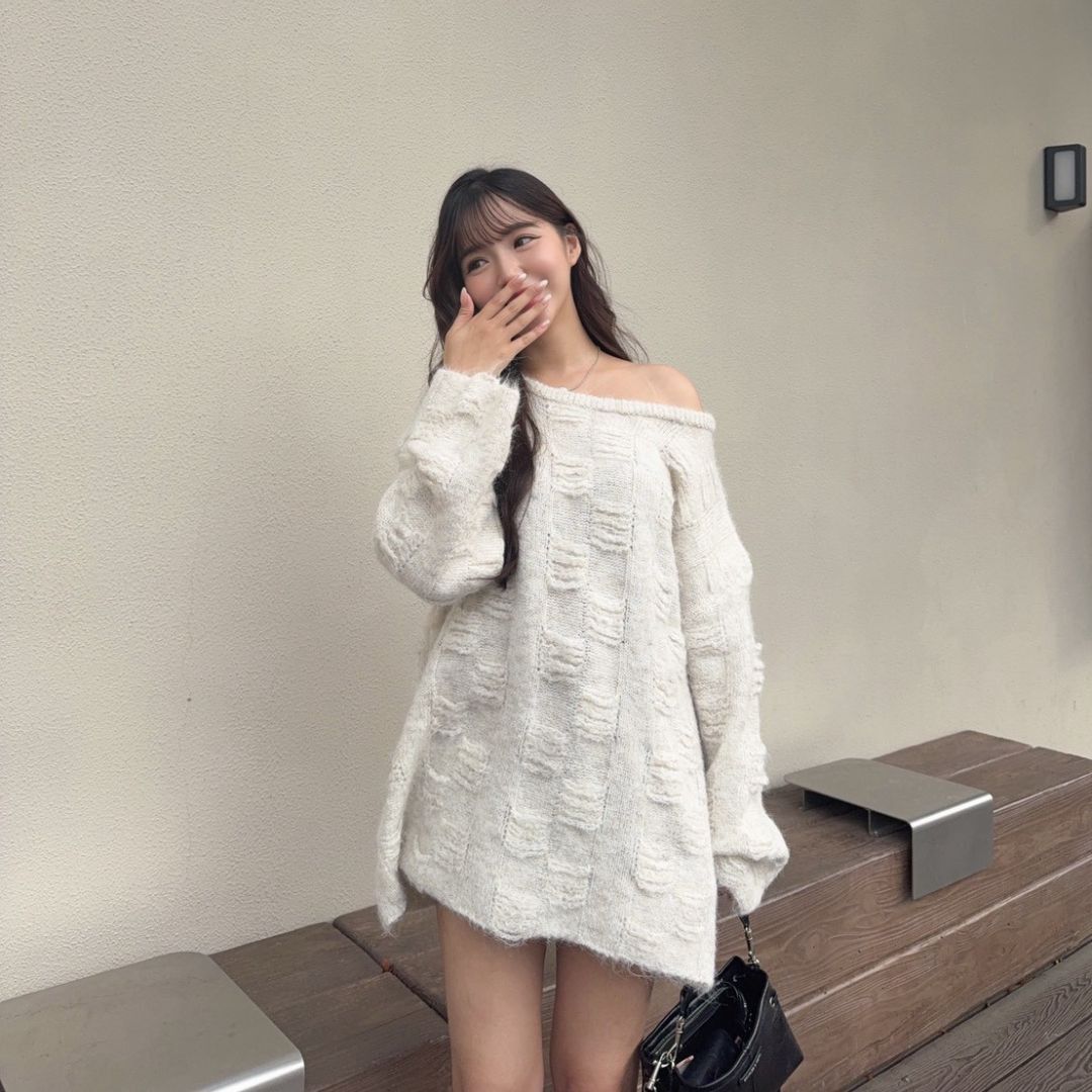 本期王炸.ᐟ.ᐟ 人見人愛溫柔軟糯刷破造型斜肩毛衣 (1colors) #ZC01