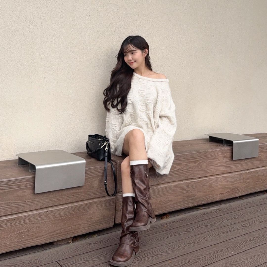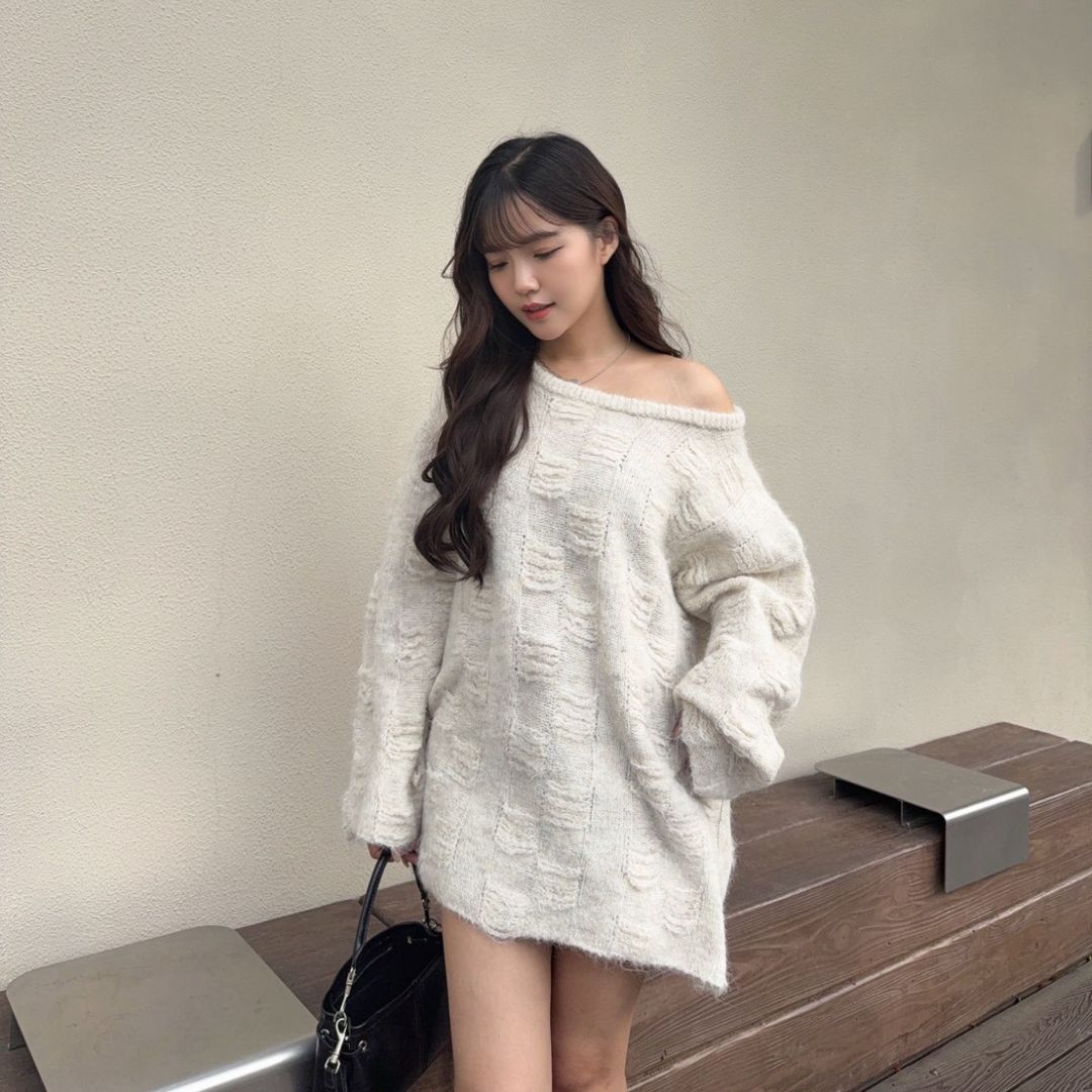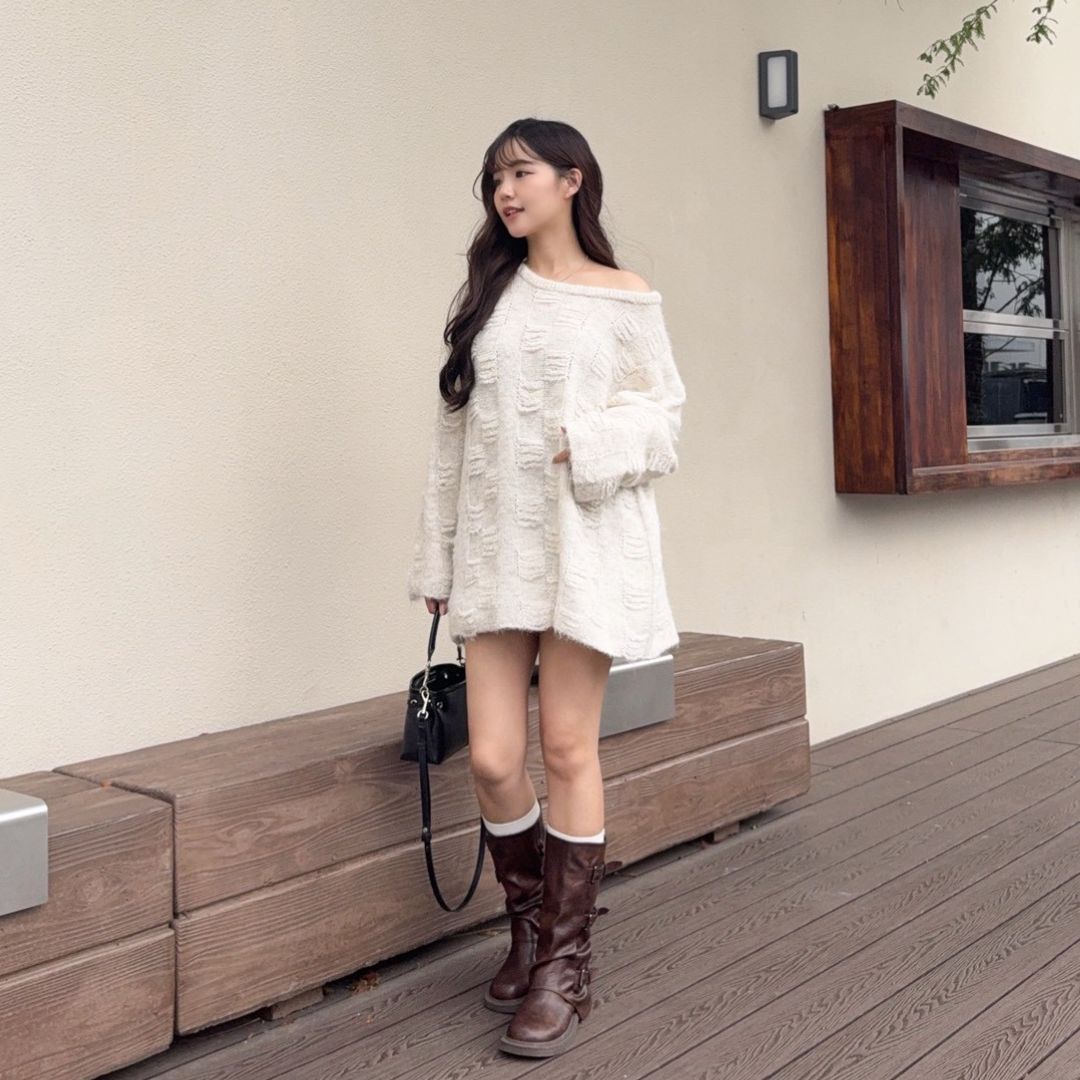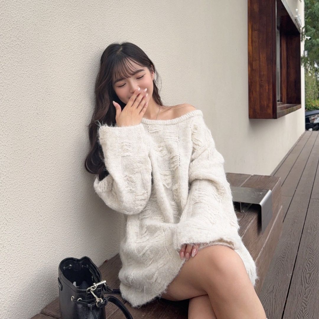 本期王炸.ᐟ.ᐟ 人見人愛溫柔軟糯刷破造型斜肩毛衣 (1colors) #ZC01