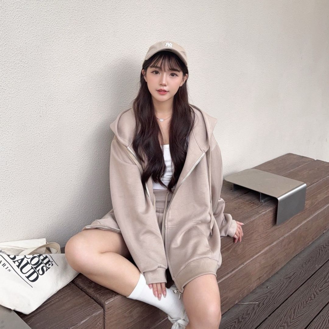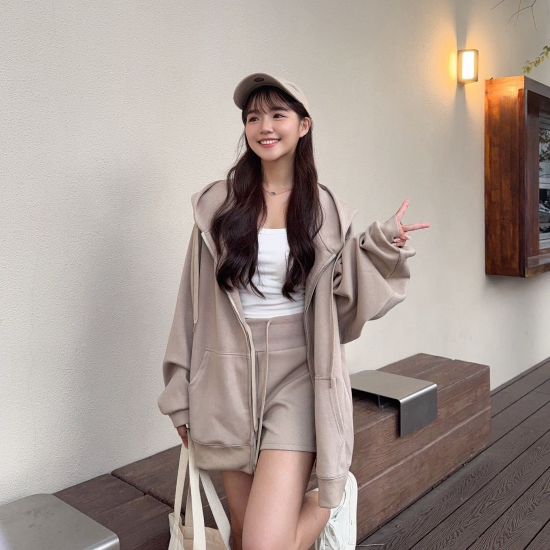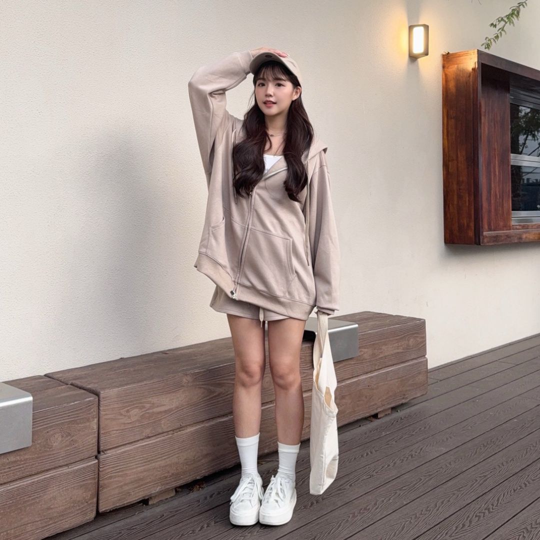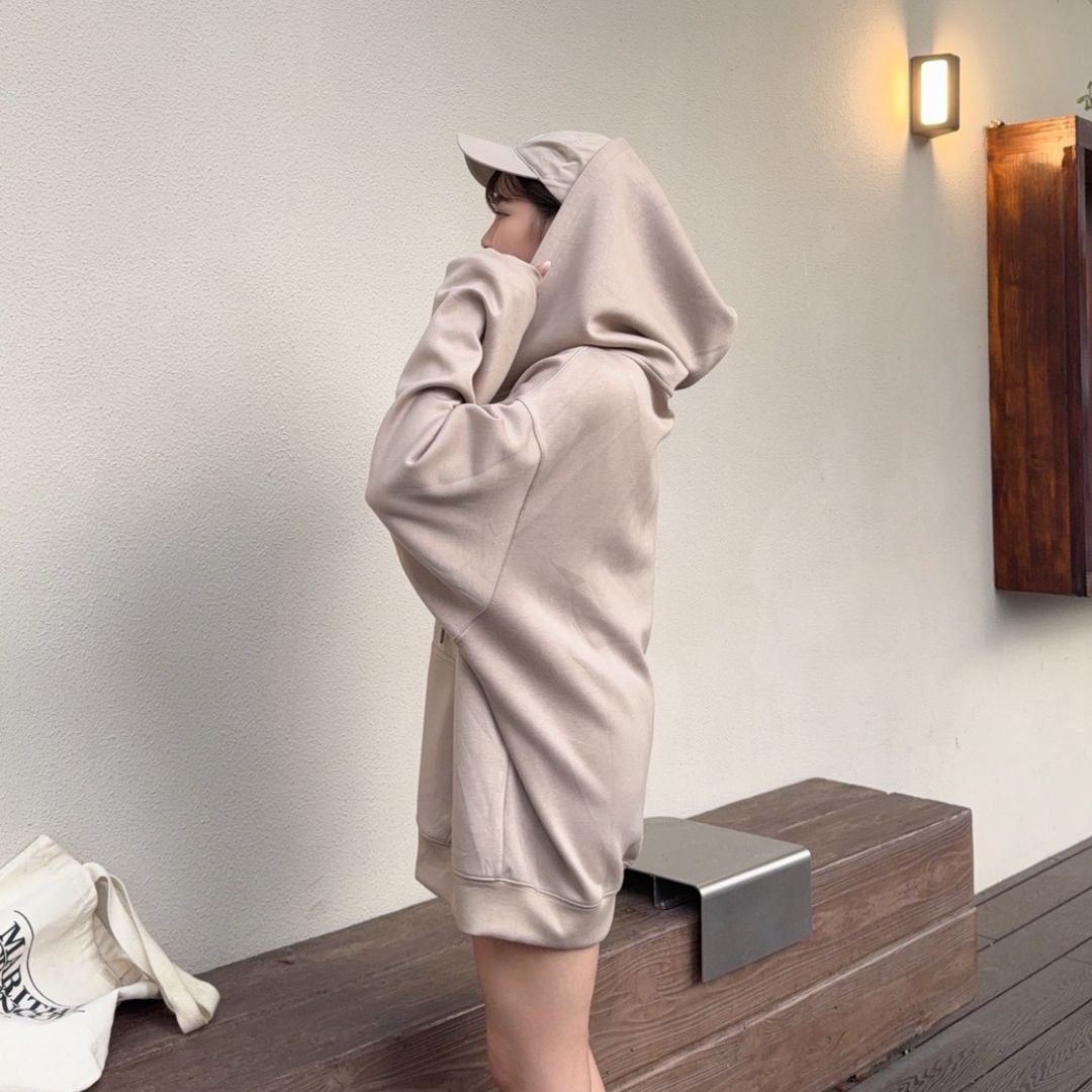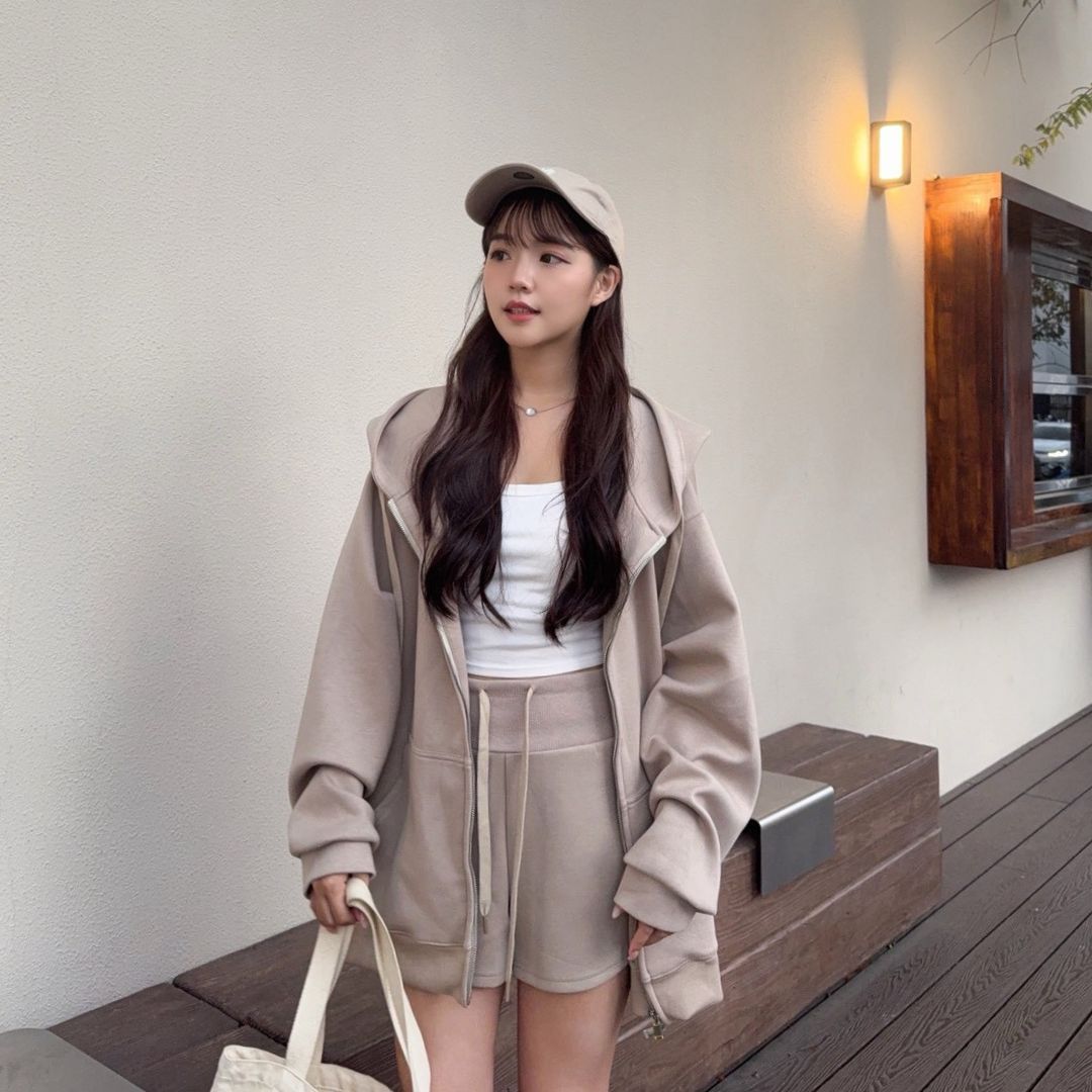 珍珠拿鐵 oversize懶人舒適連帽套裝set (1colors) #ZC07