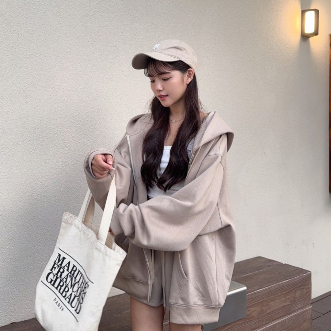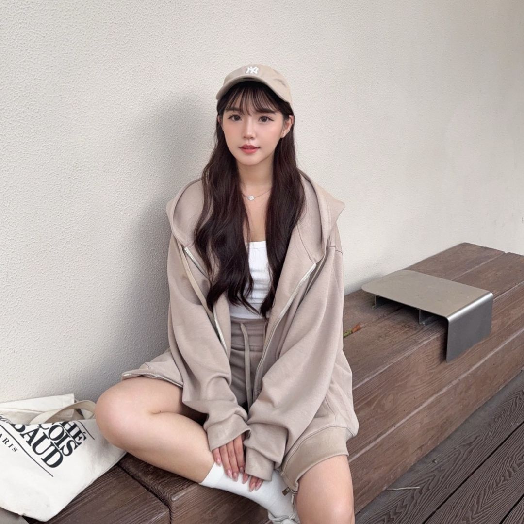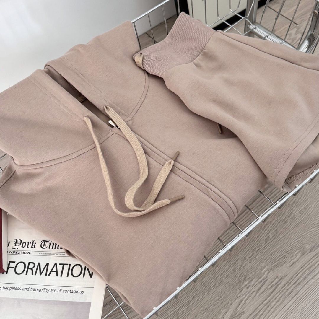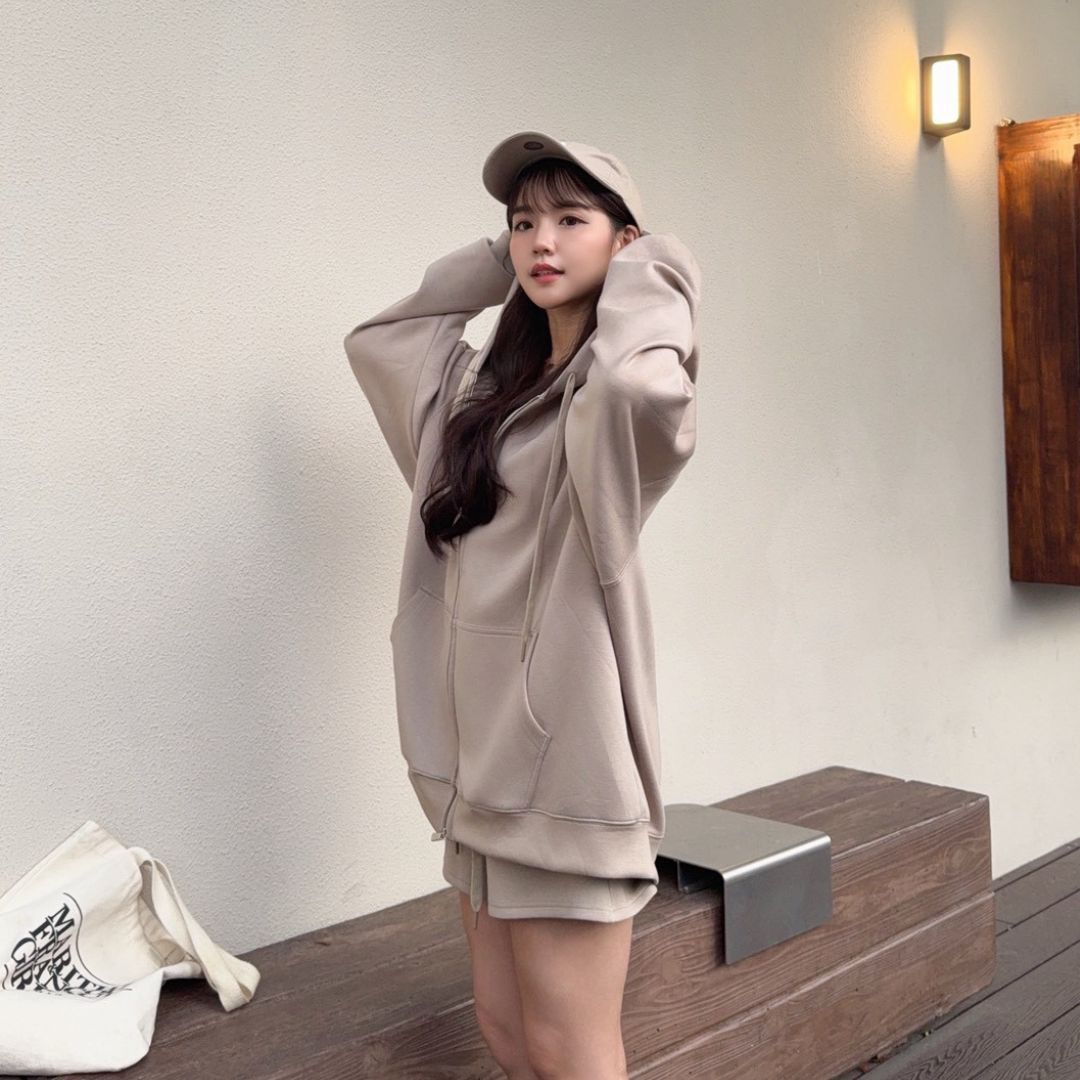 珍珠拿鐵 oversize懶人舒適連帽套裝set (1colors) #ZC07