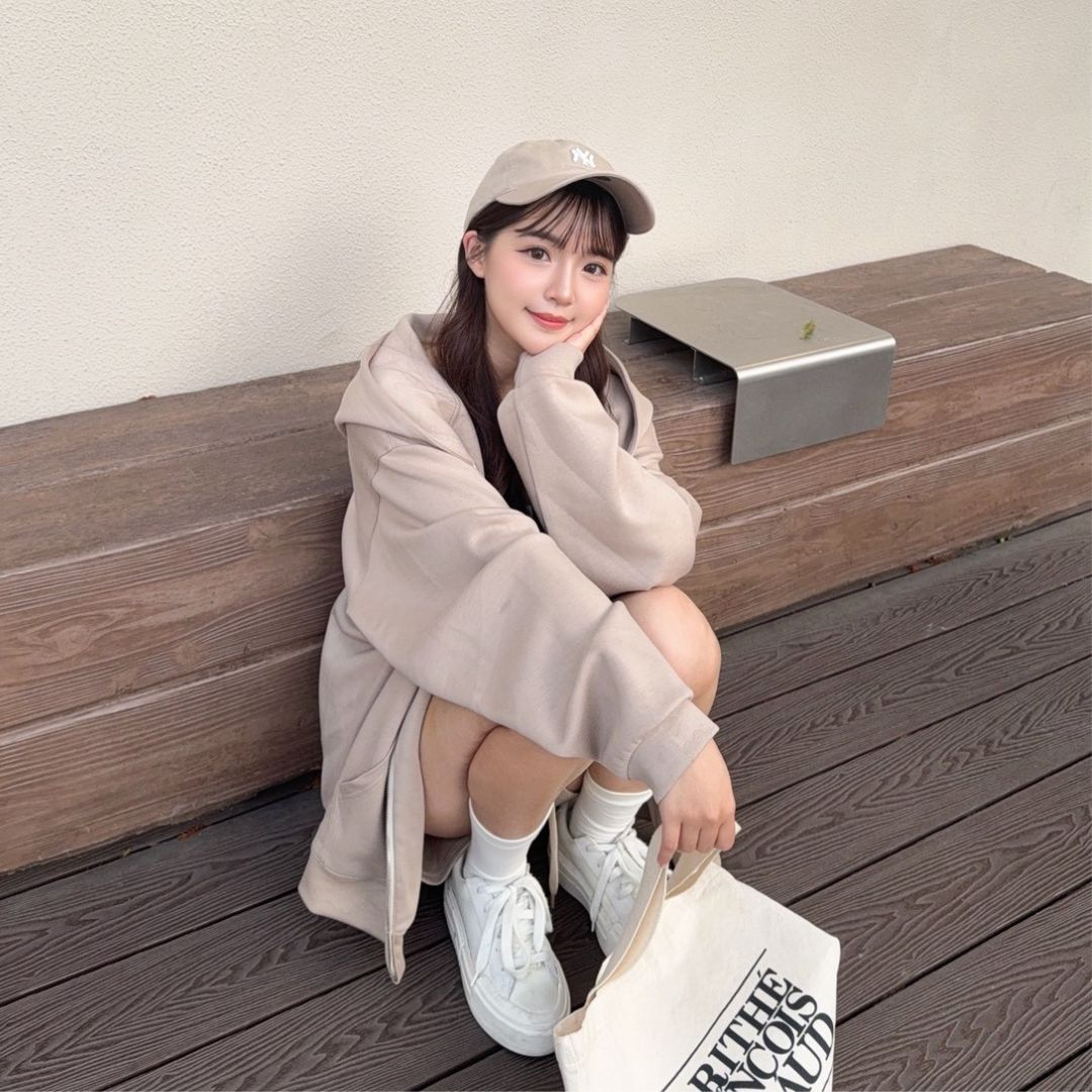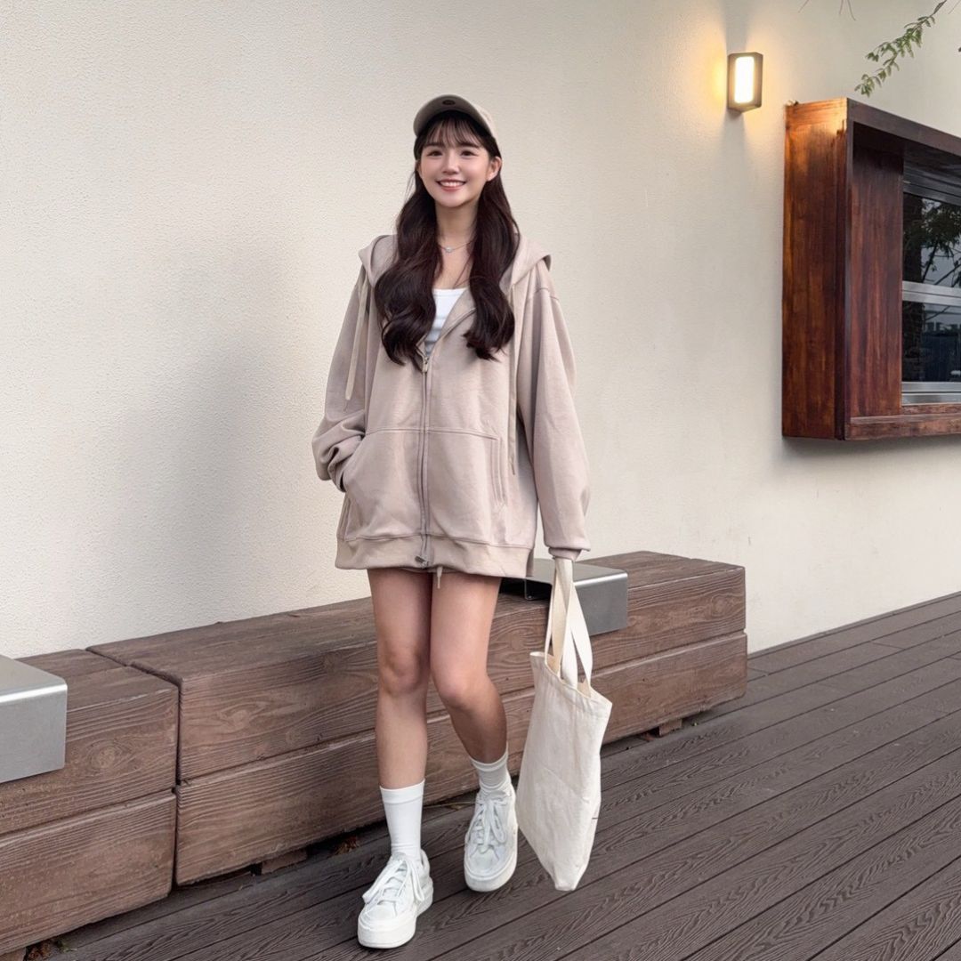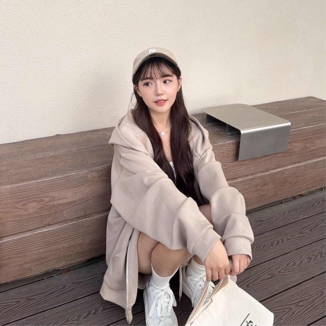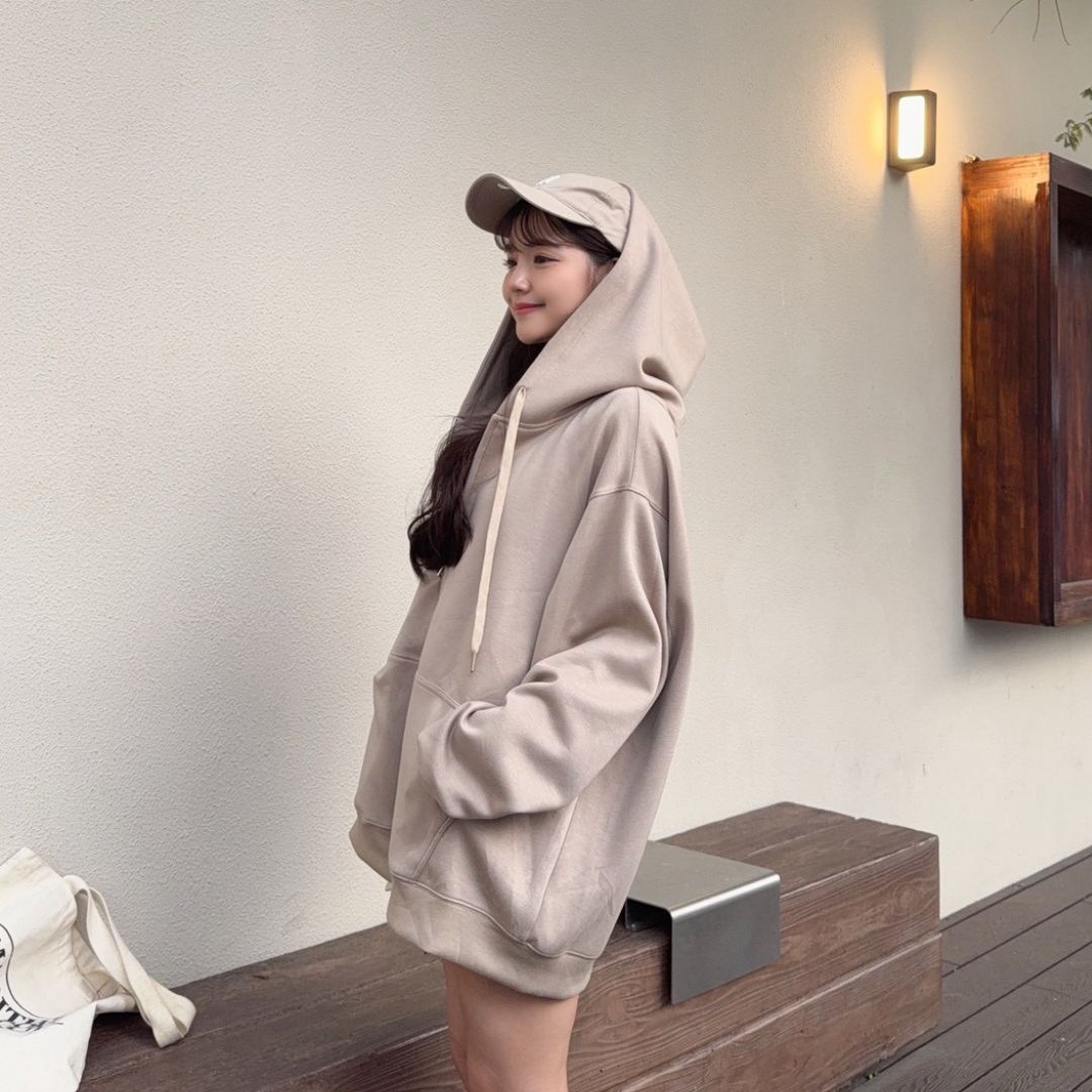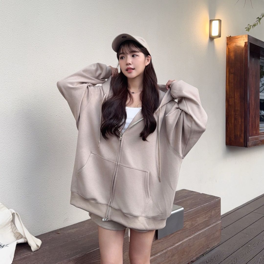 珍珠拿鐵 oversize懶人舒適連帽套裝set (1colors) #ZC07