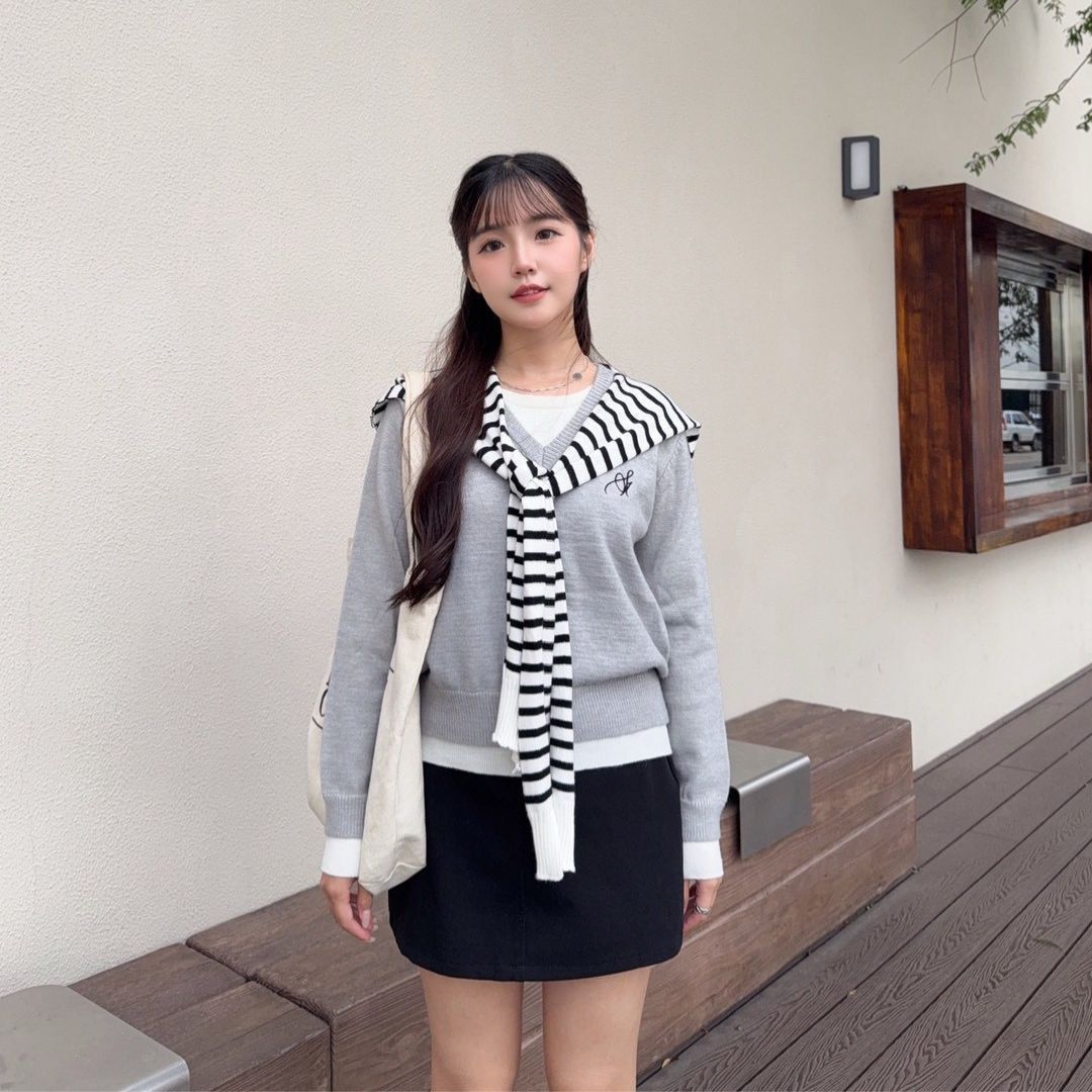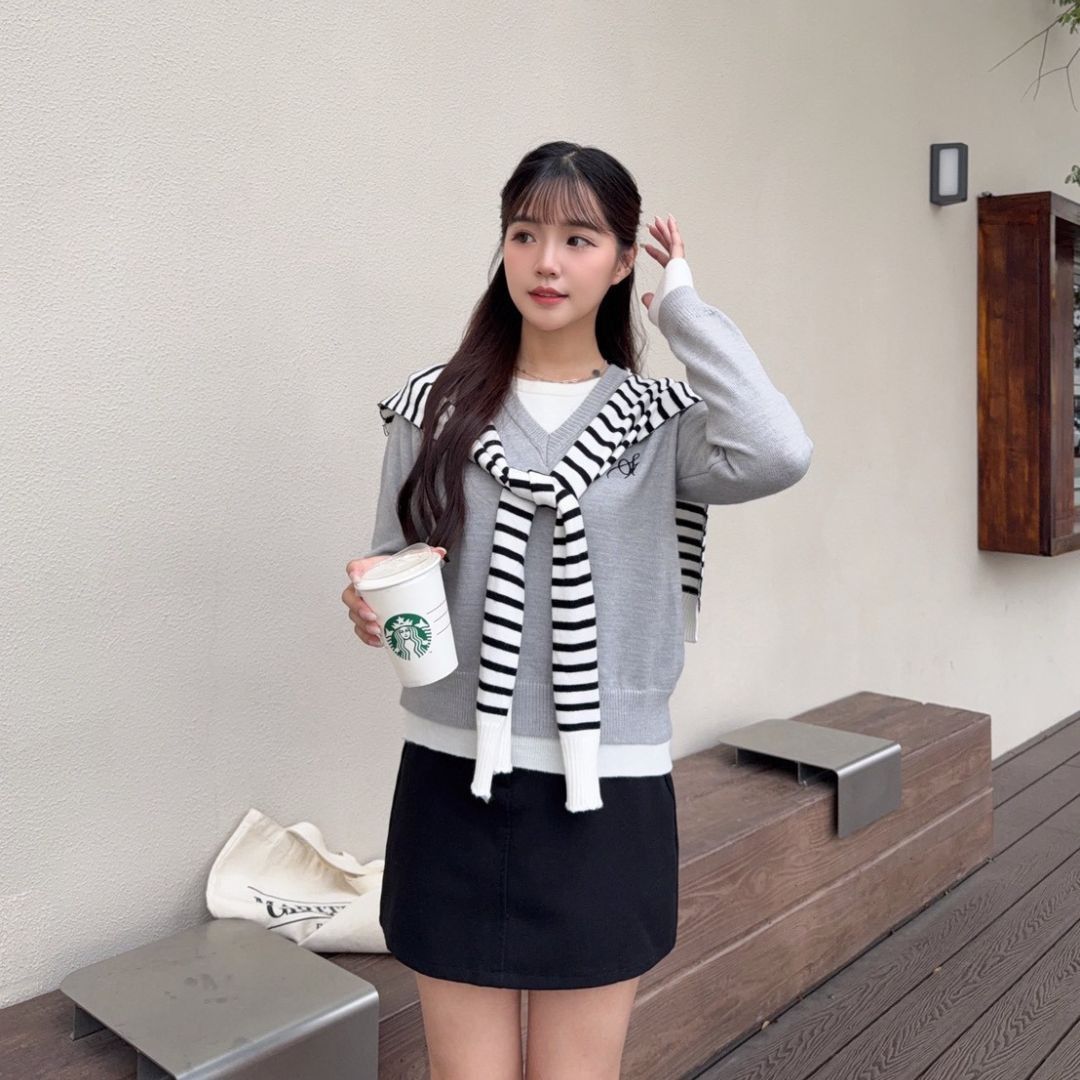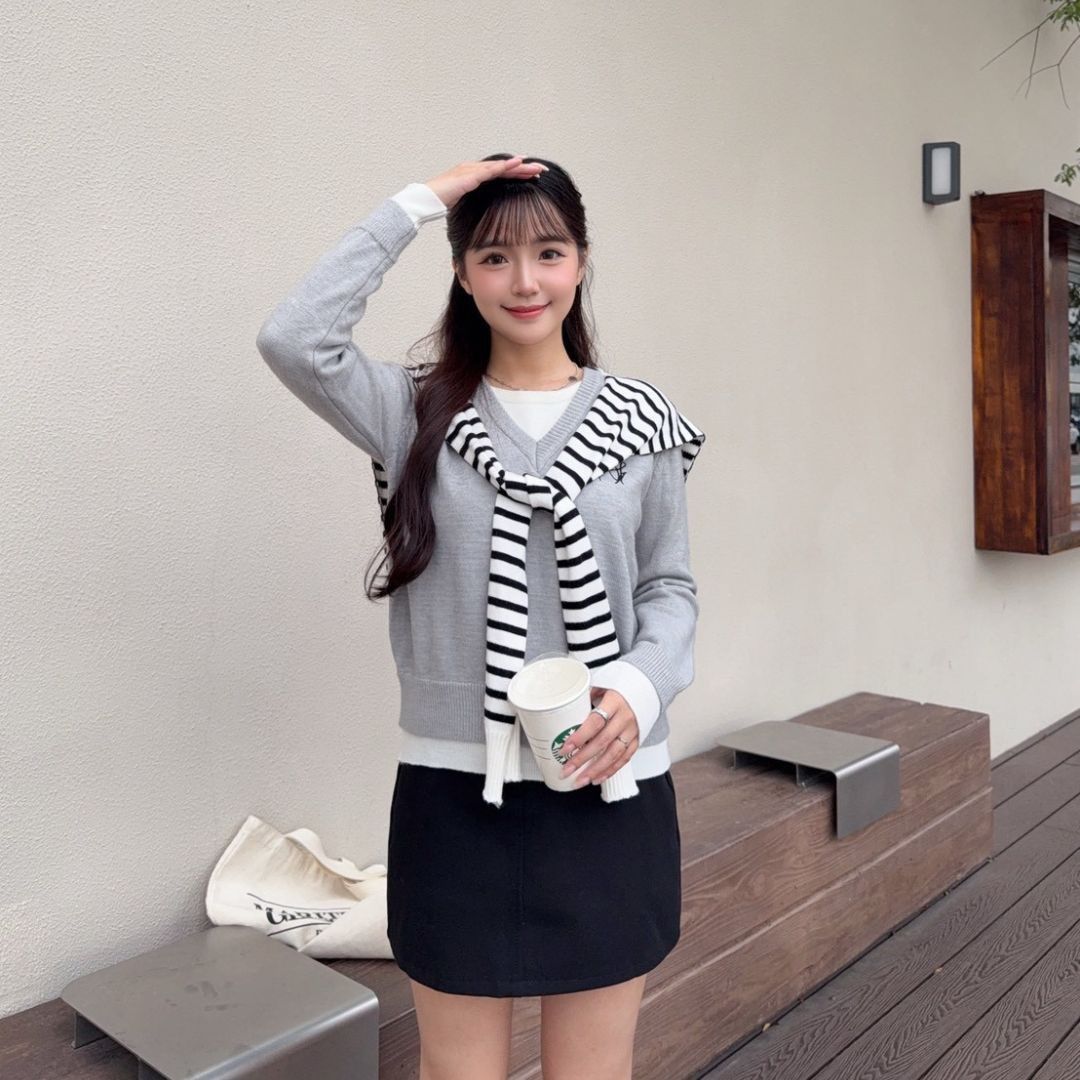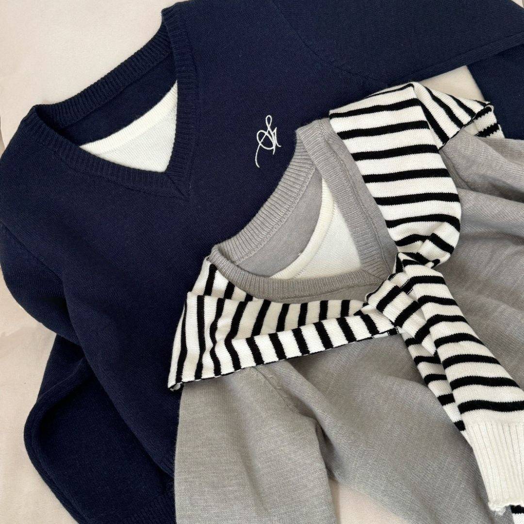 首爾學報 學院風百搭假兩件針織上衣 (2colors) #ZD03