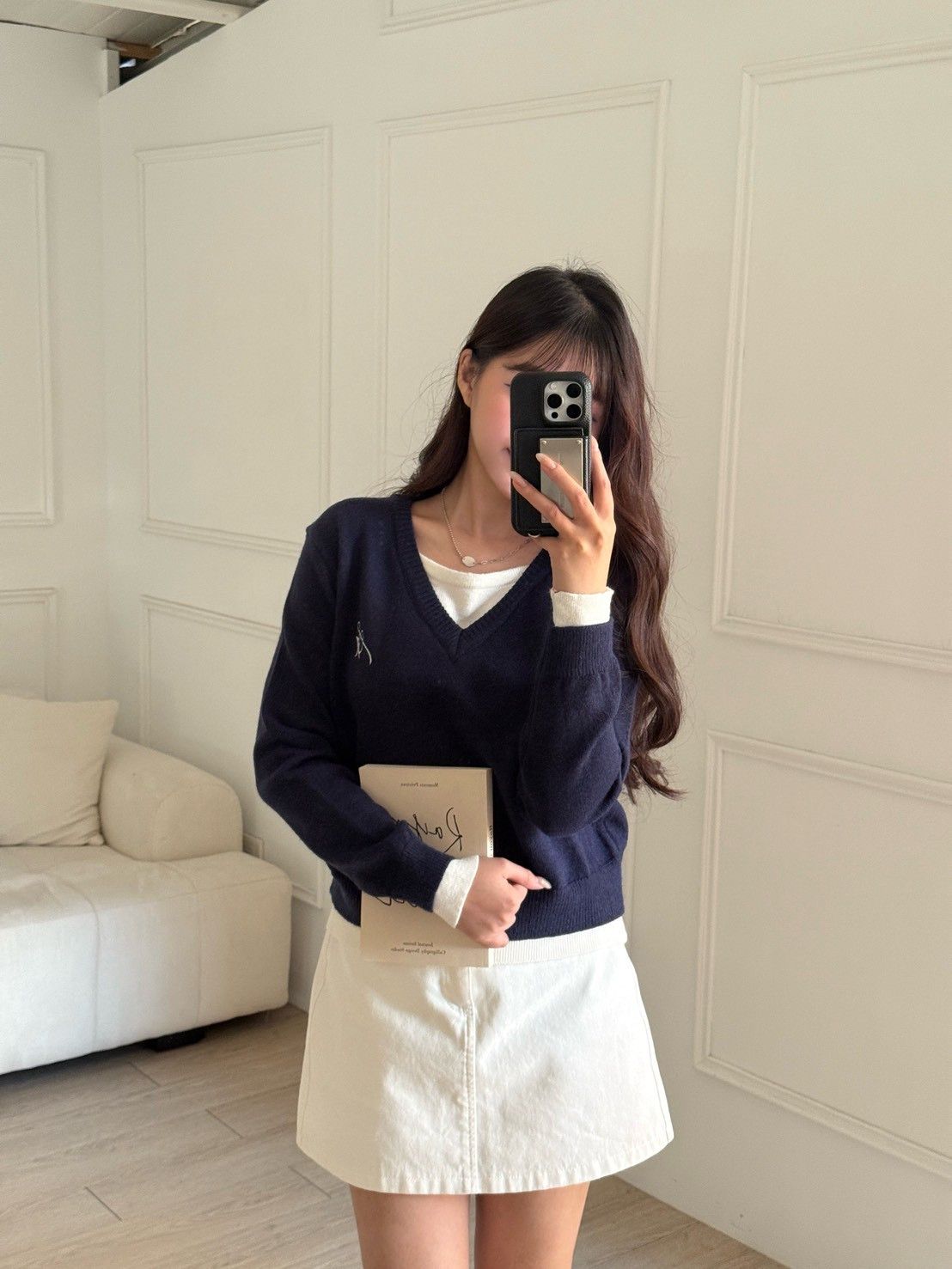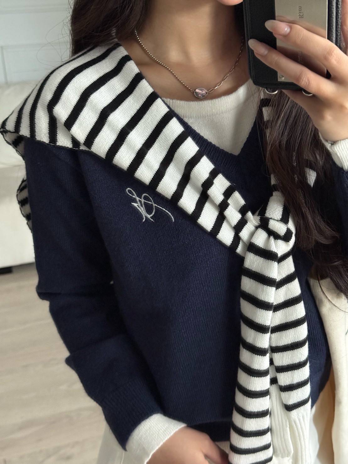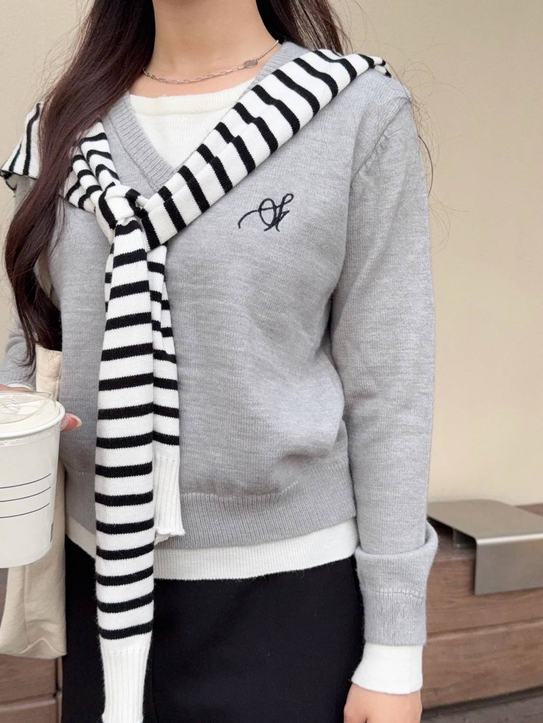 首爾學報 學院風百搭假兩件針織上衣 (2colors) #ZD03