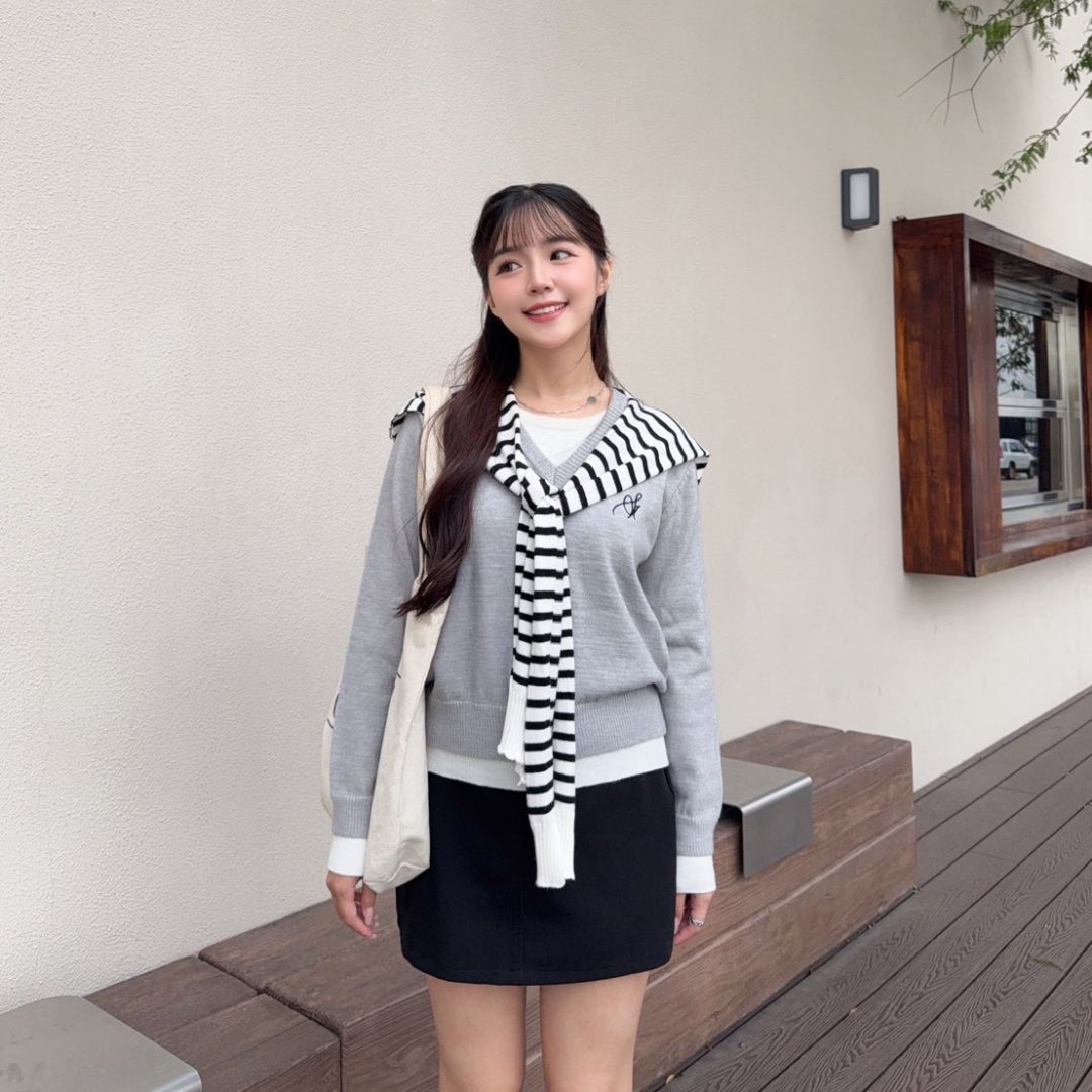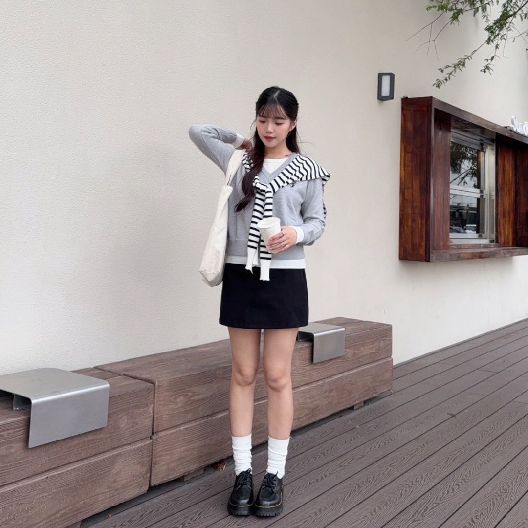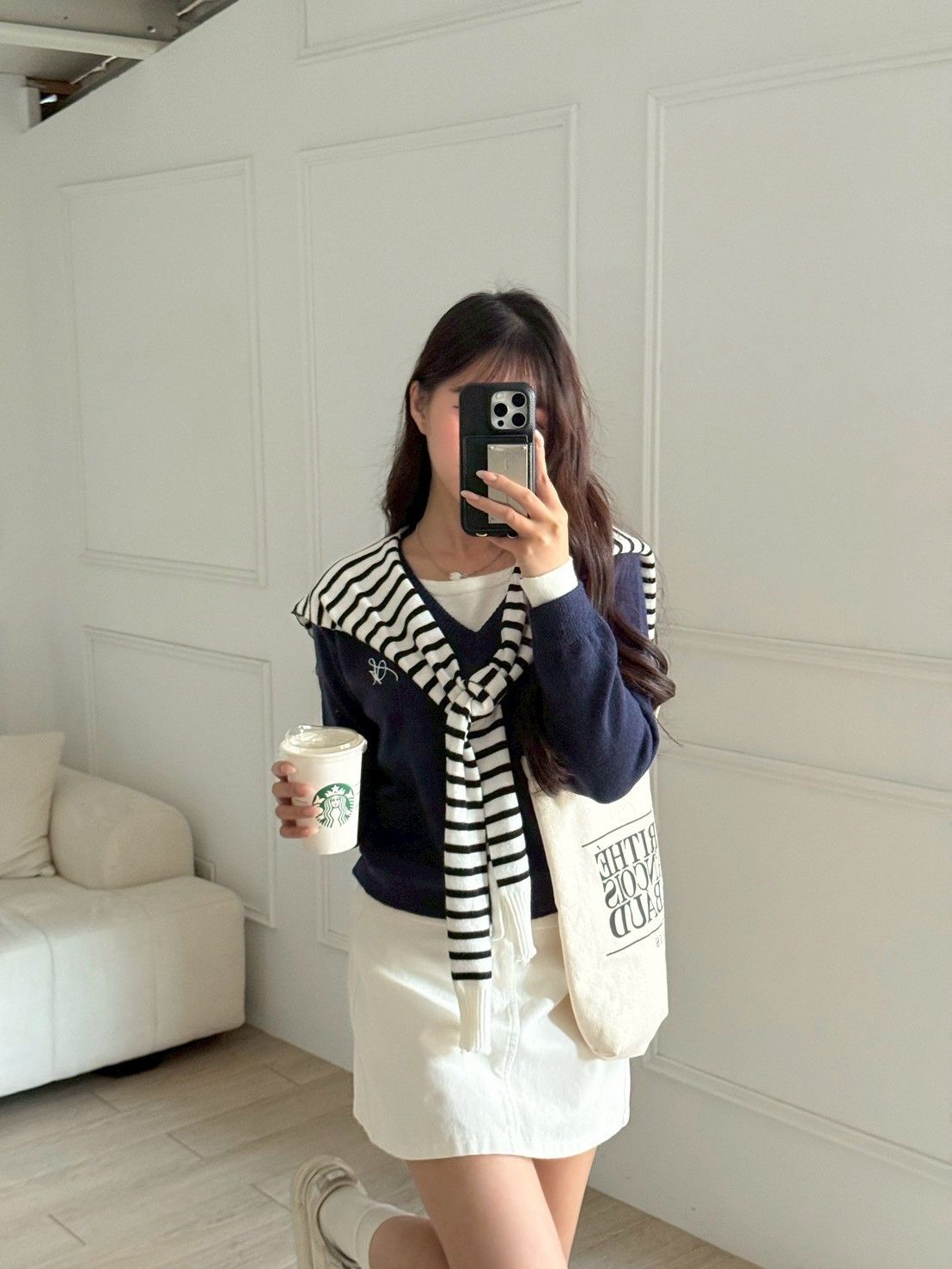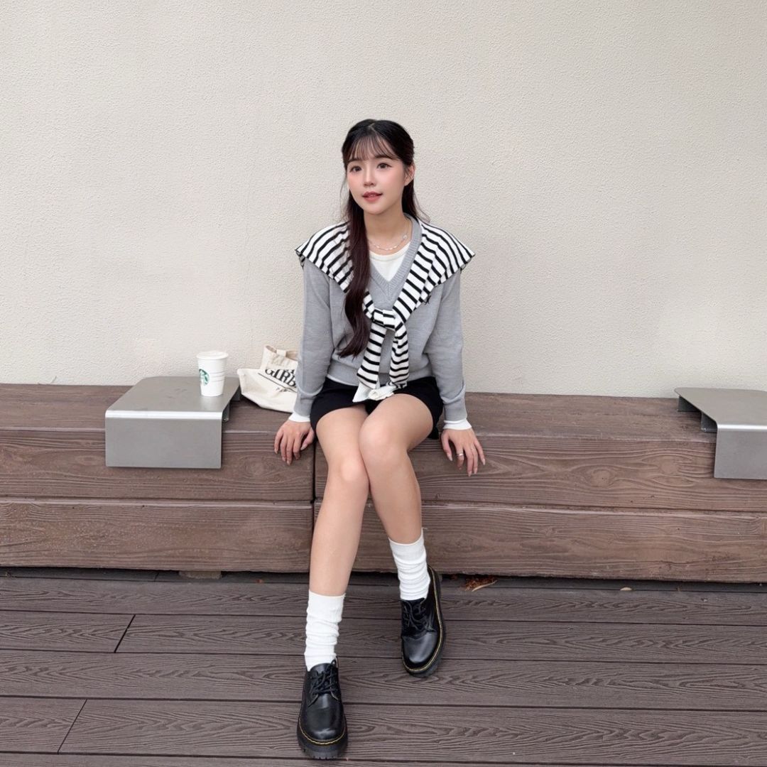 首爾學報 學院風百搭假兩件針織上衣 (2colors) #ZD03