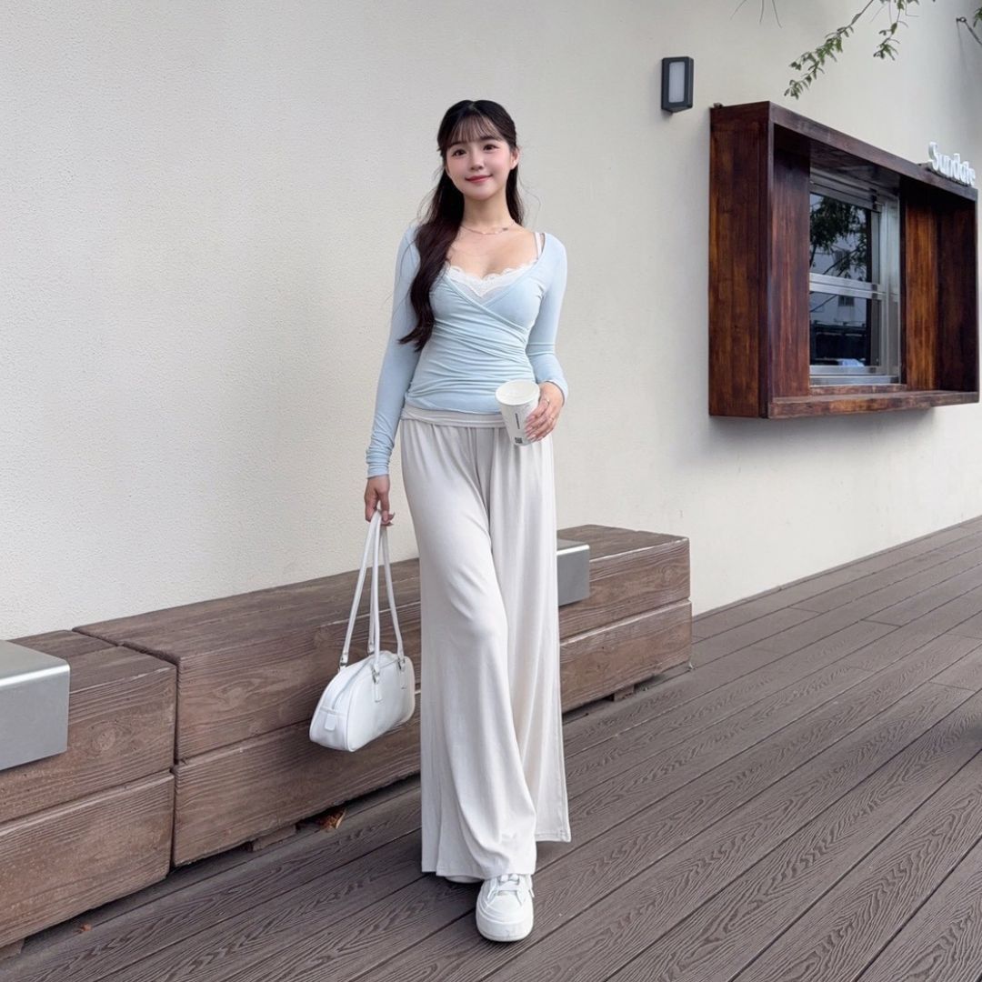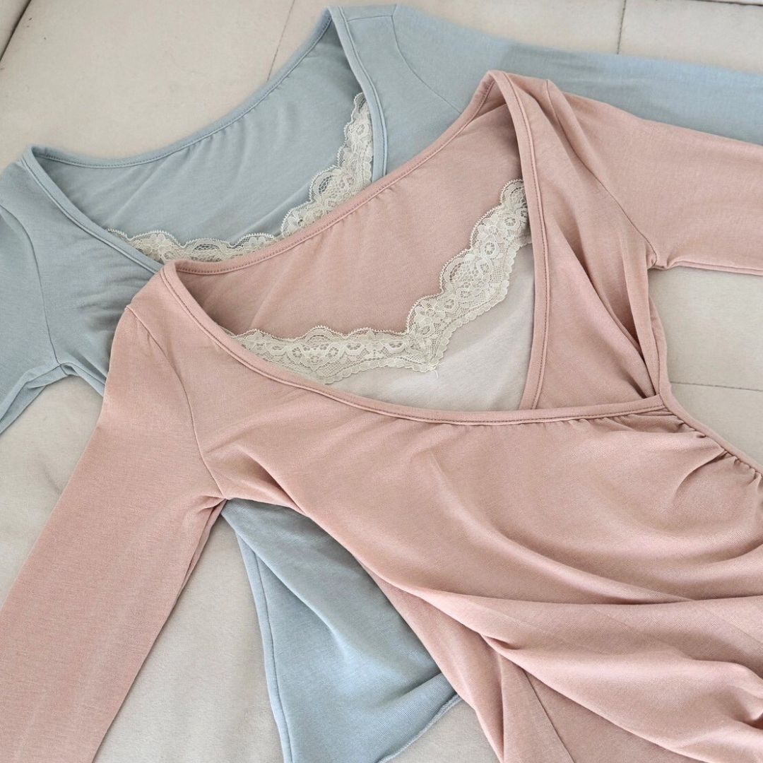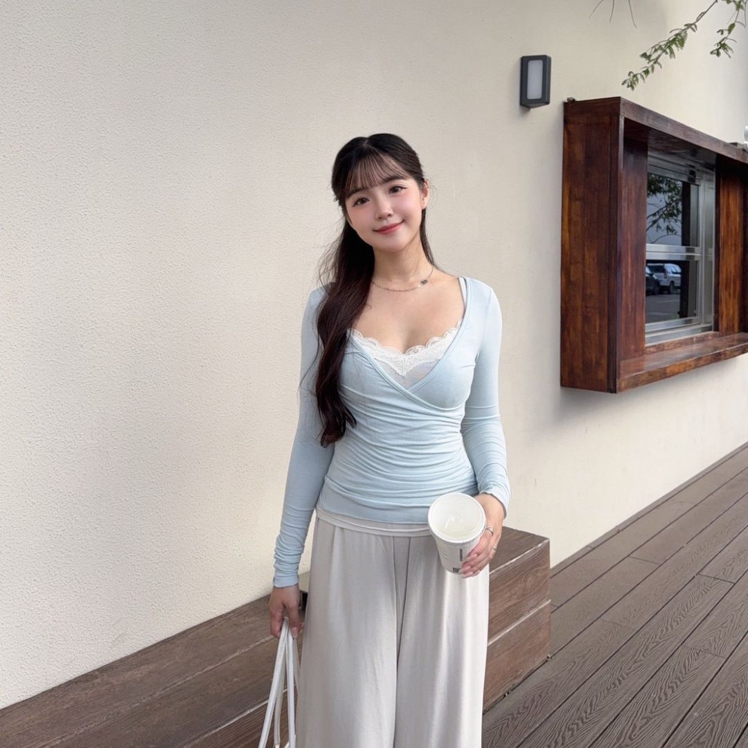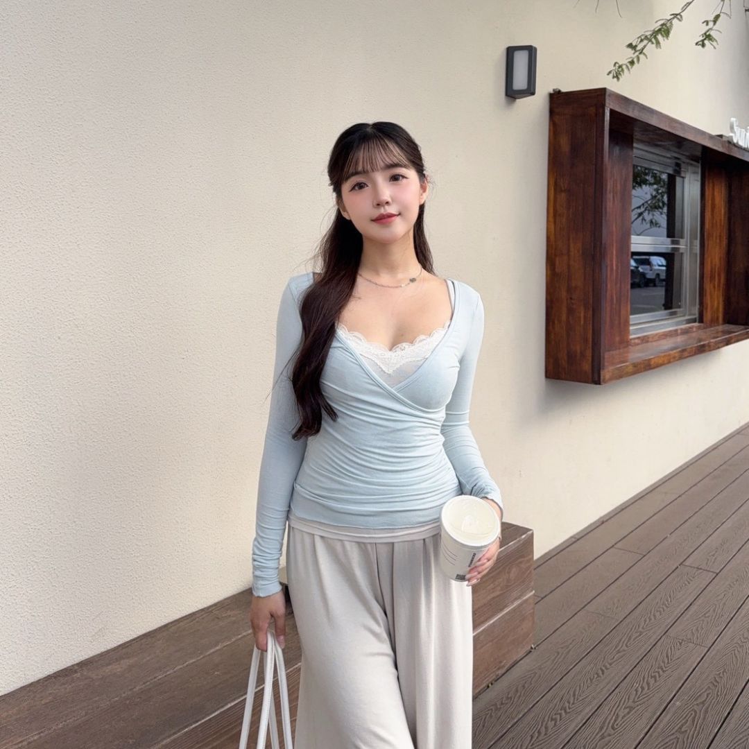 奶油蜜桃 氣質蕾絲真兩件上衣仙女set (2colors) #ZD09