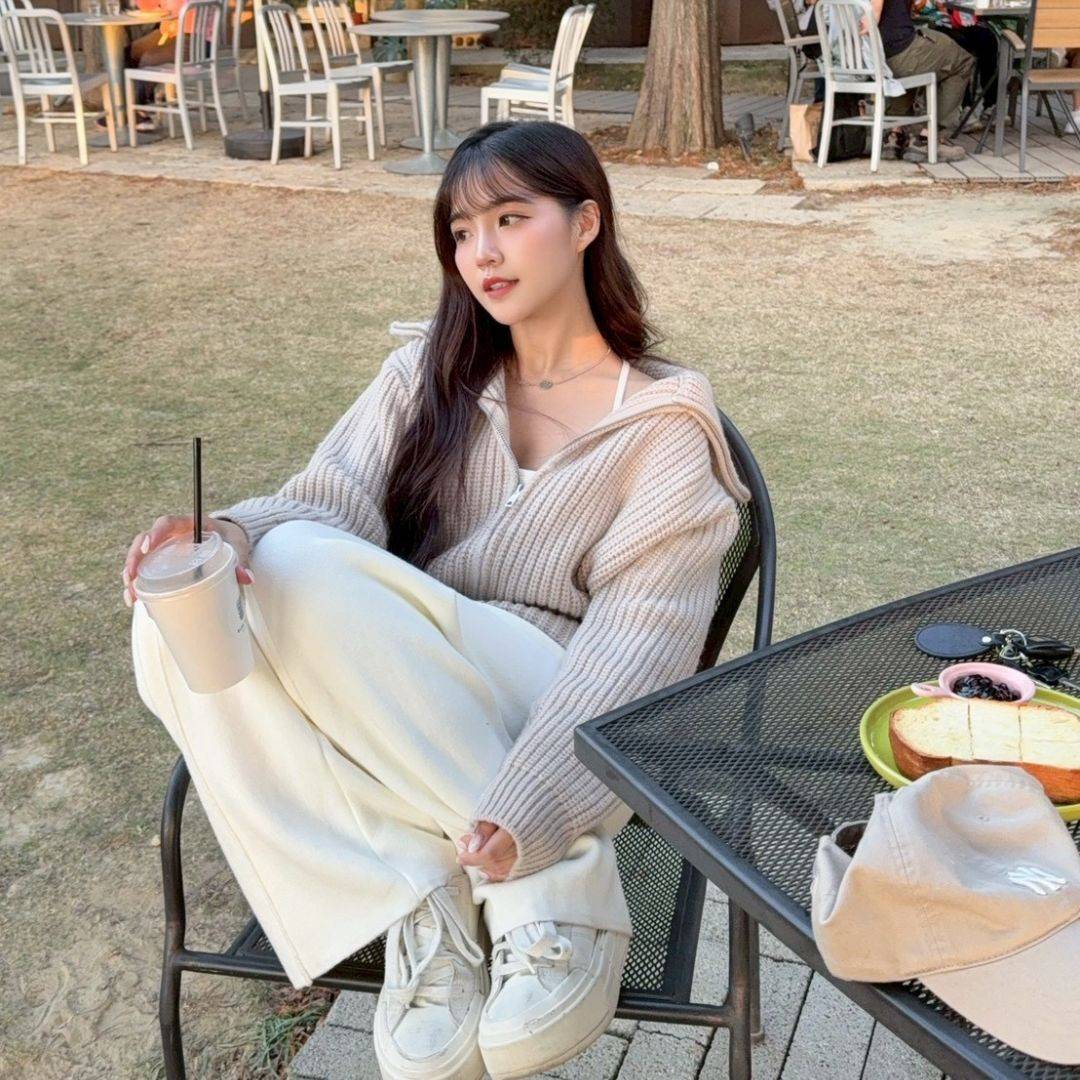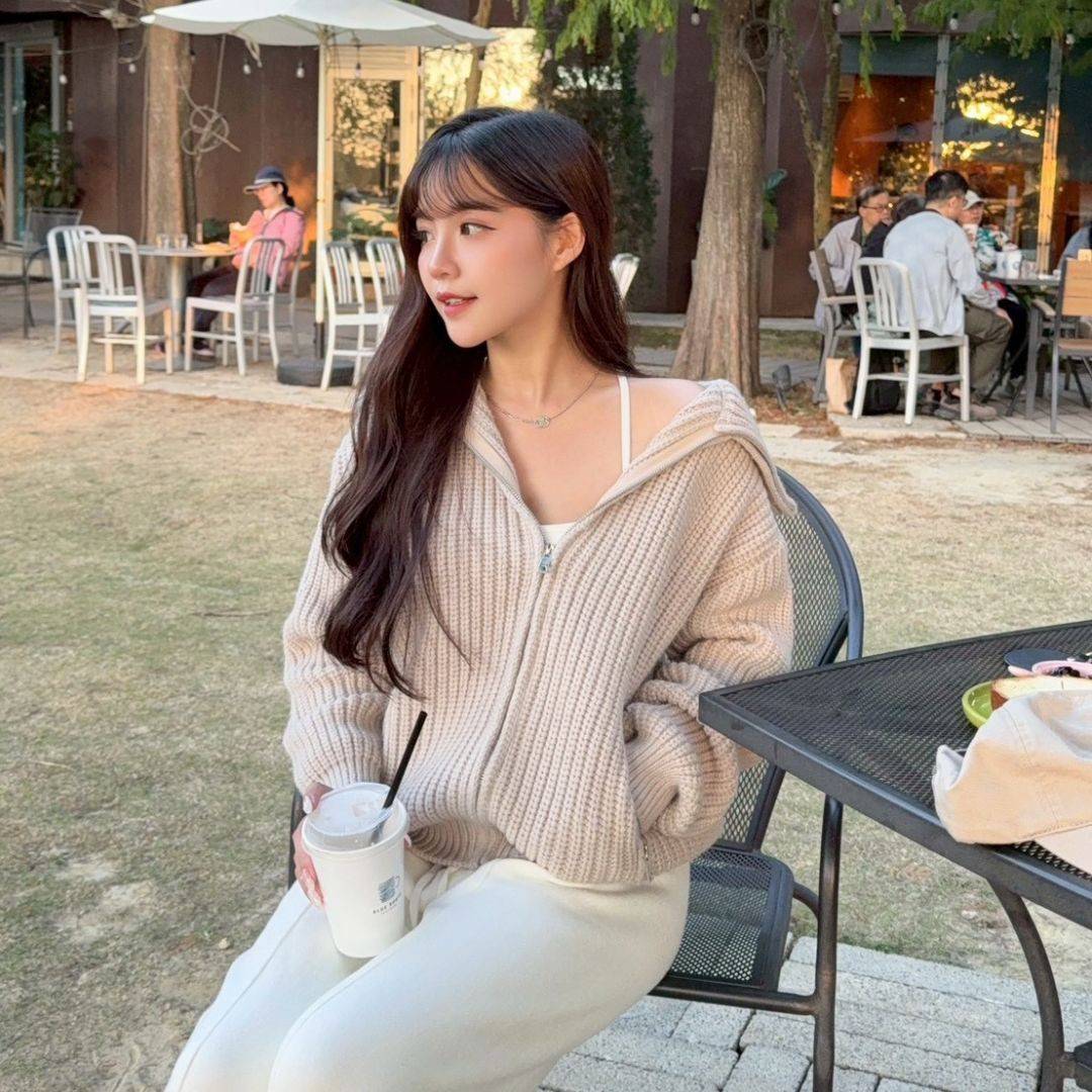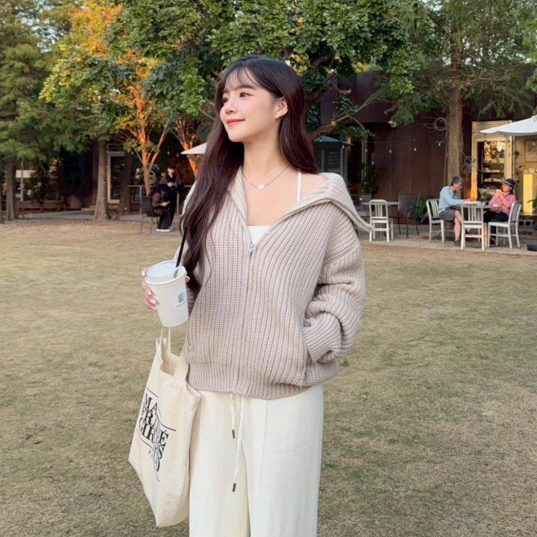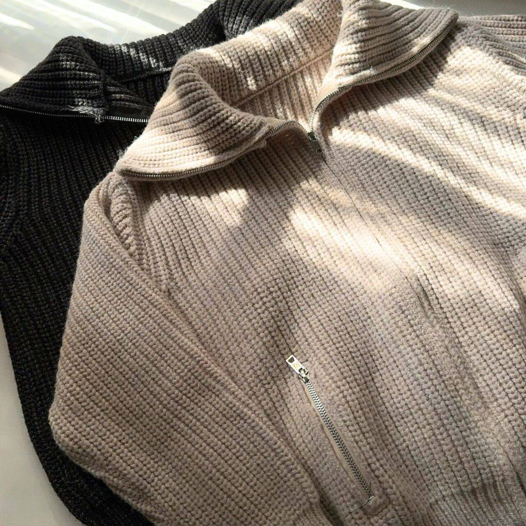 韓女輪廓 厚磅翻領拉鏈口袋毛衣 (2colors) #ZE05