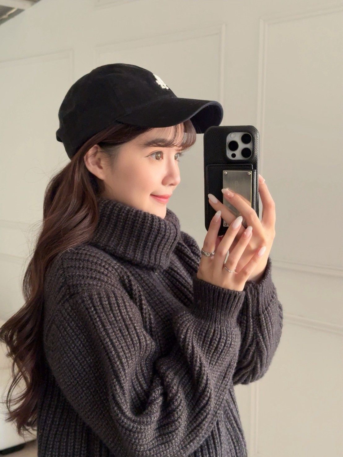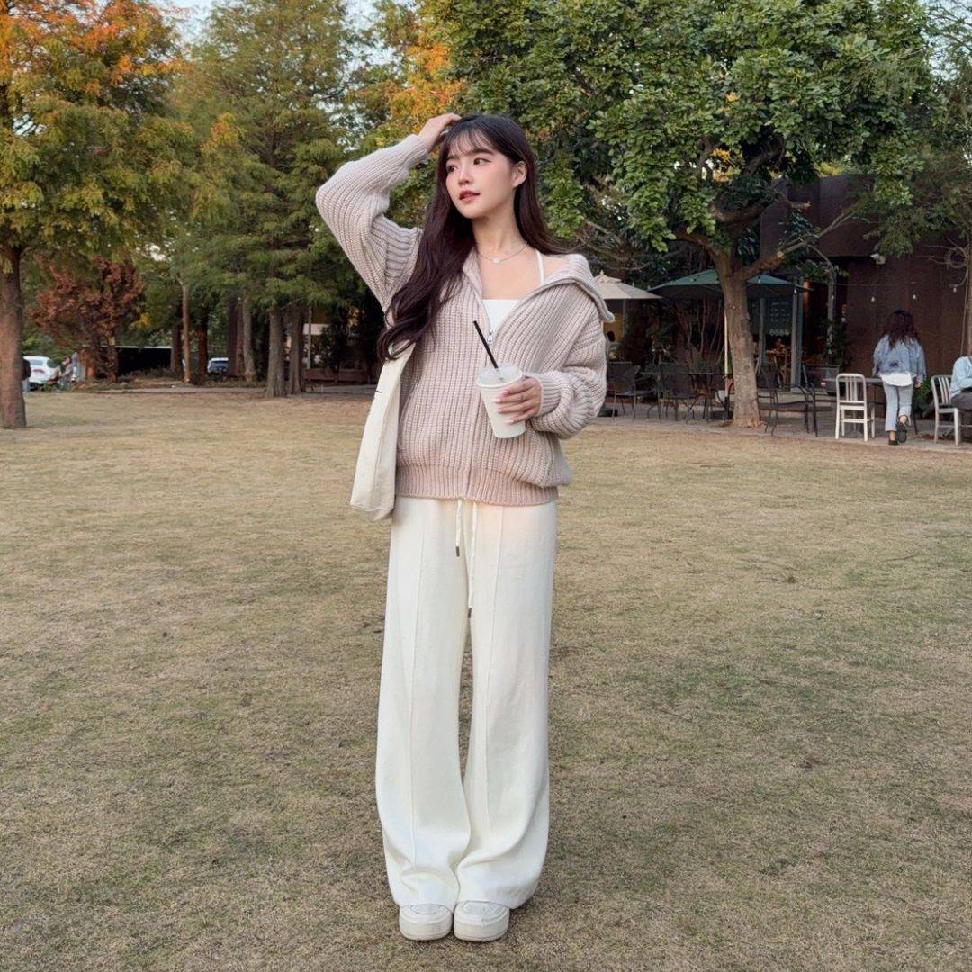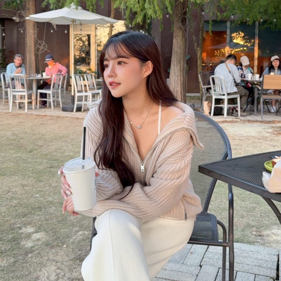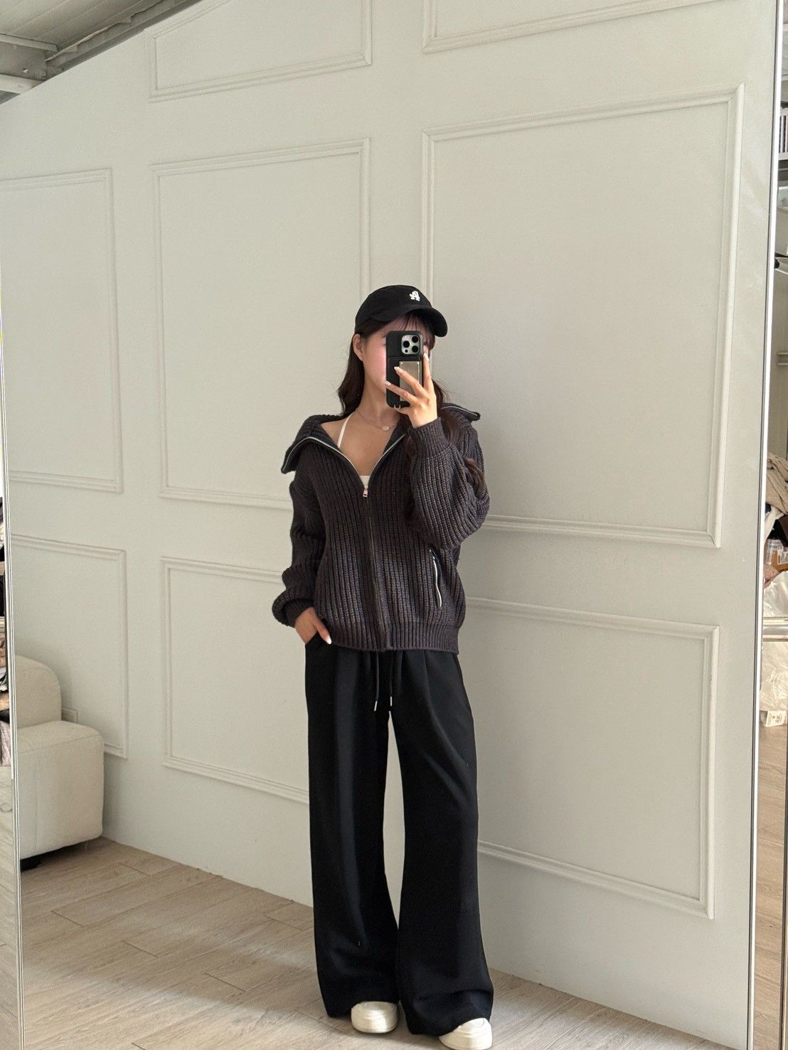 韓女輪廓 厚磅翻領拉鏈口袋毛衣 (2colors) #ZE05